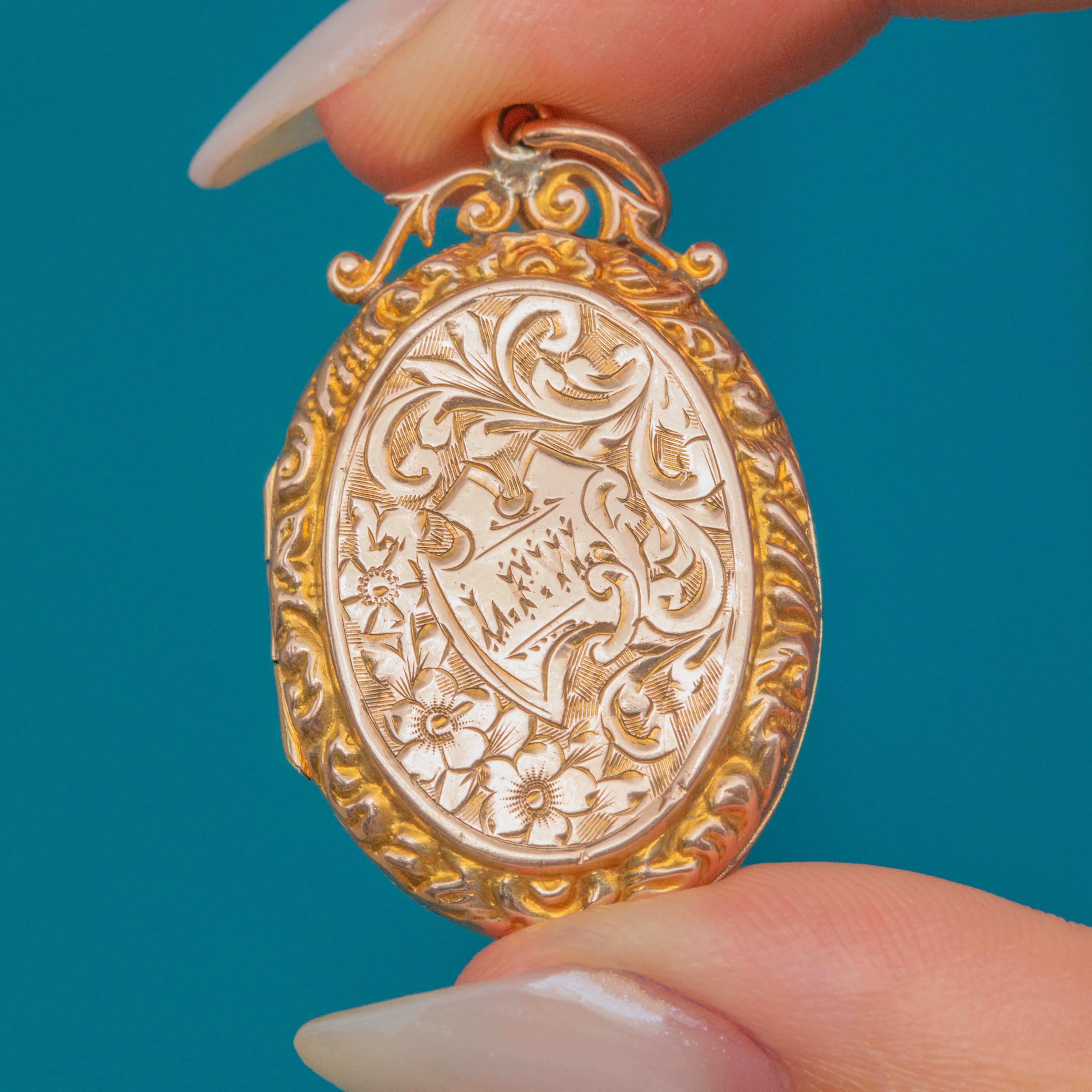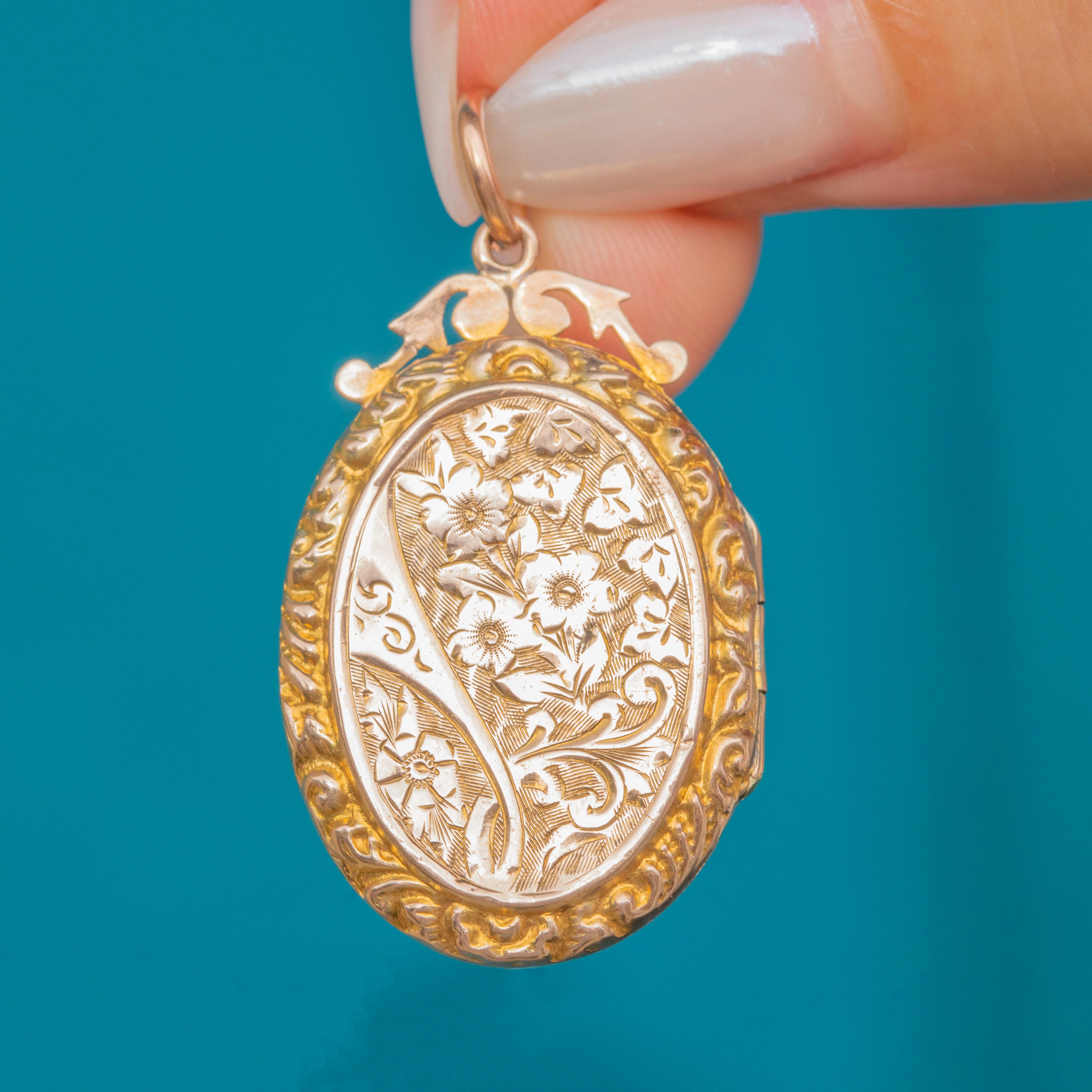 Edwardian 9ct Gold Floral Engraved Oval Locket