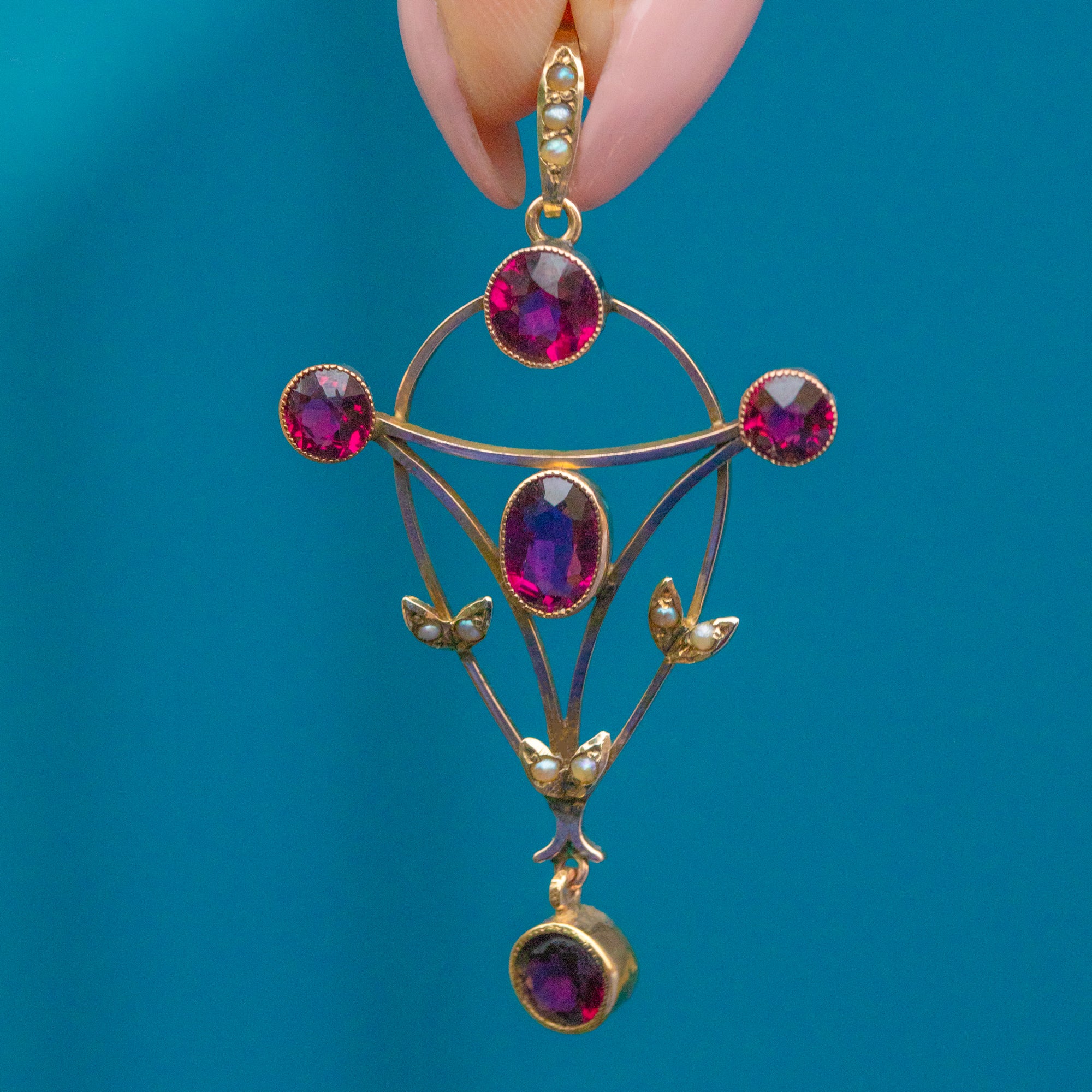 Add a hint of sophistication to your collection with this gorgeous Edwardian 9ct Gold Garnet Pearl drop pendant!