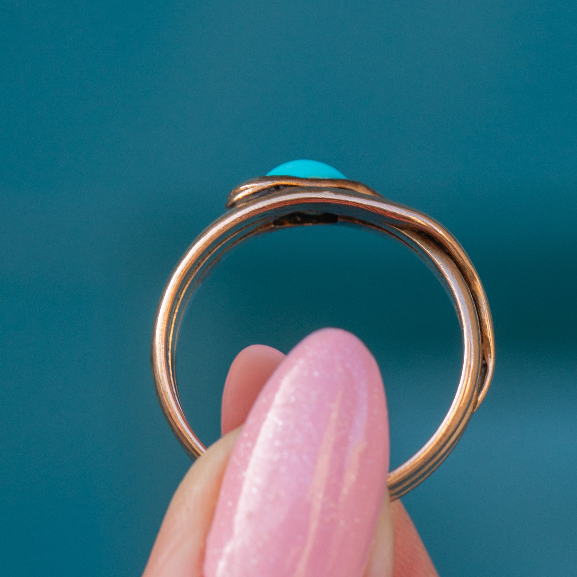 Edwardian 9ct Gold Turquoise Snake Ring, c.1902