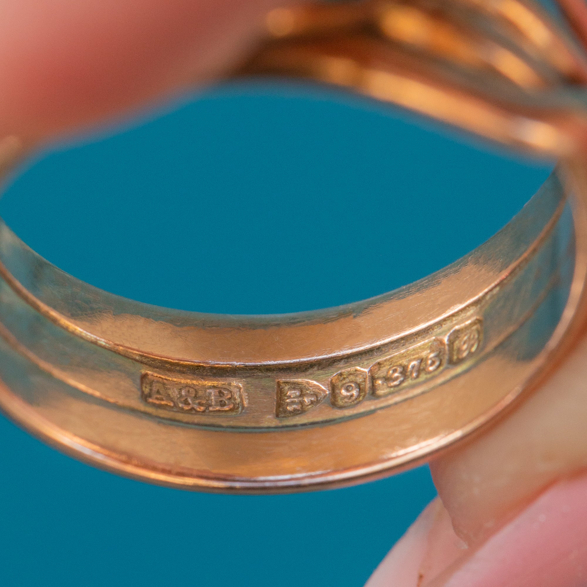 The warm rosy hue of the 9ct Gold perfectly complements the vibrant sky-blue Turquoise embedded into the snake head. The inside of the band is fully hallmarked, including the rare Chester Assay, dating this Edwardian ring to 1902 and making it a highly desirable piece.