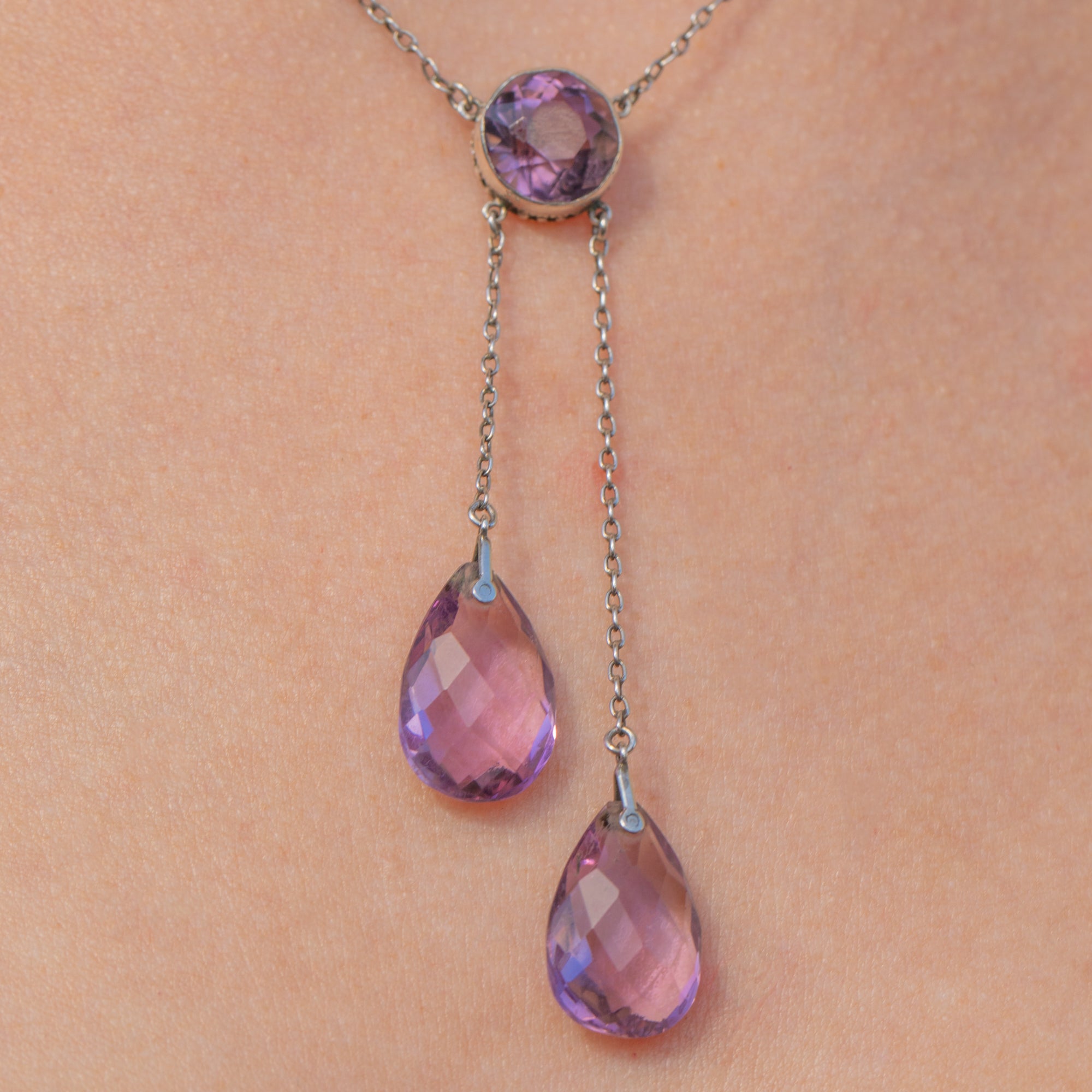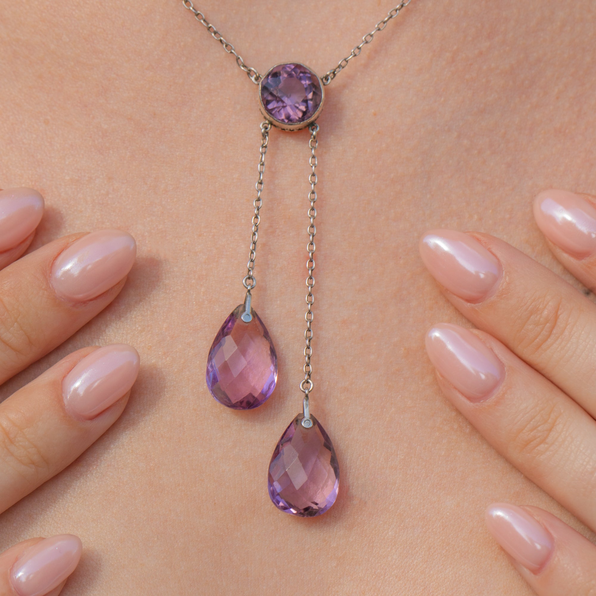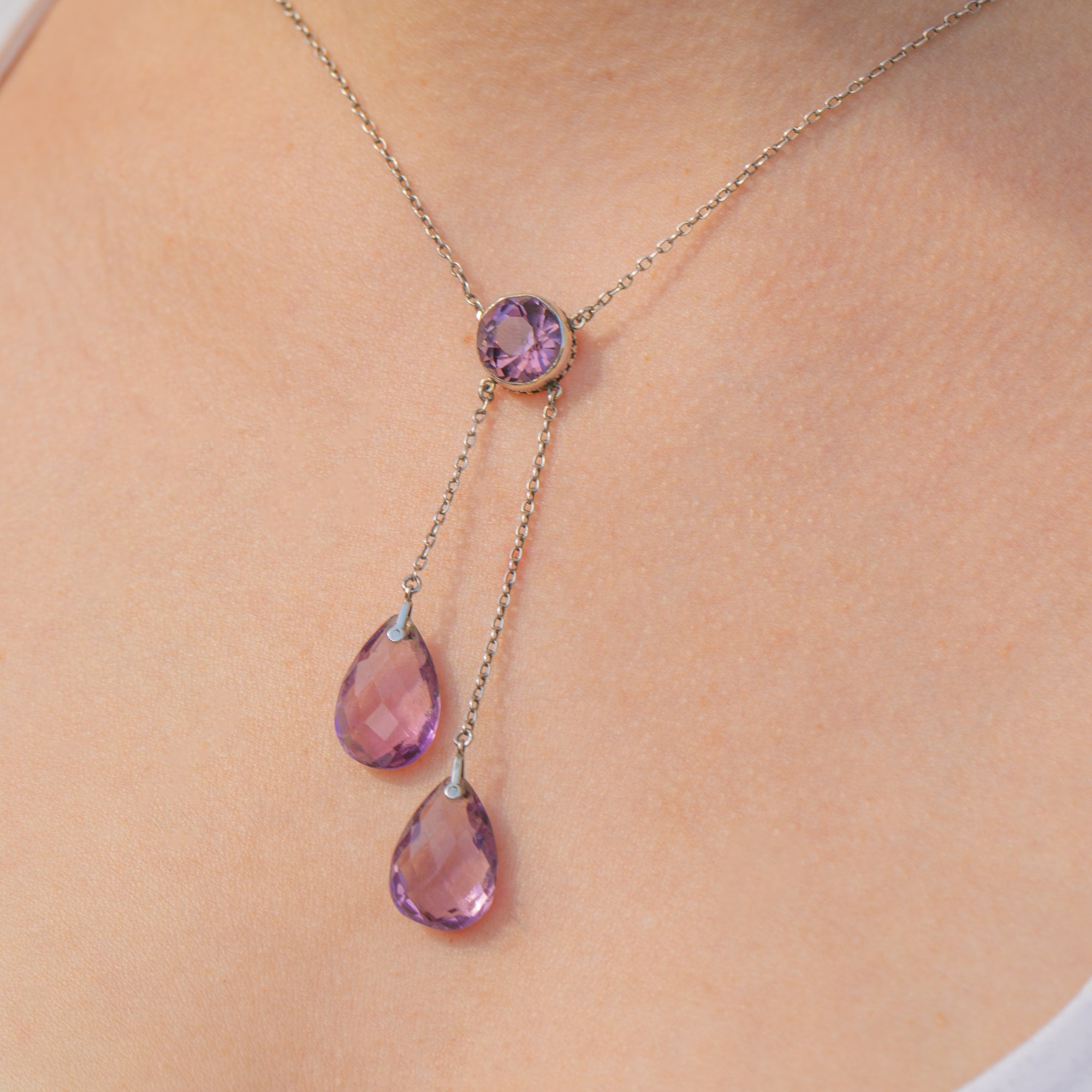 Edwardian Silver Amethyst Negligee Necklace, 16.85ct