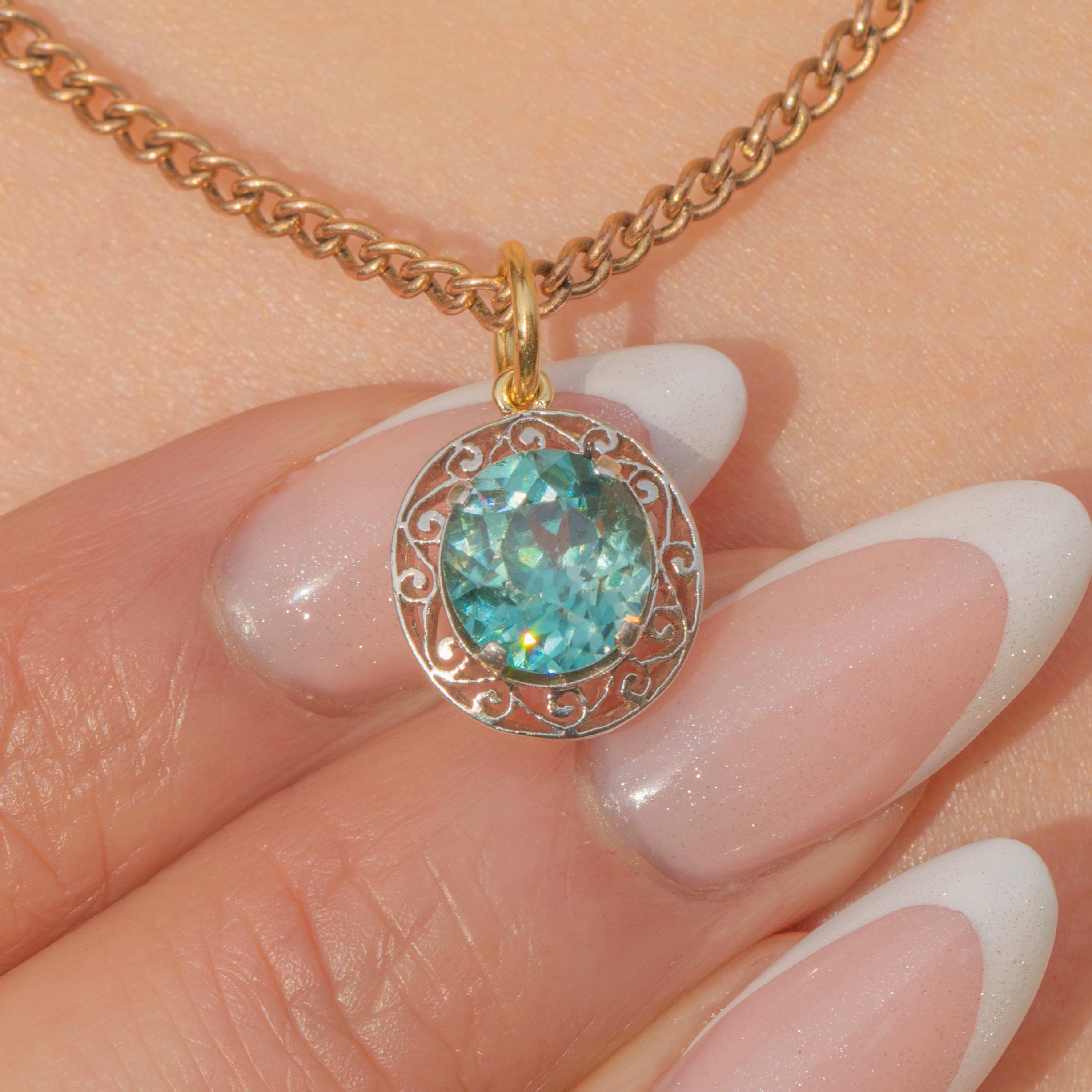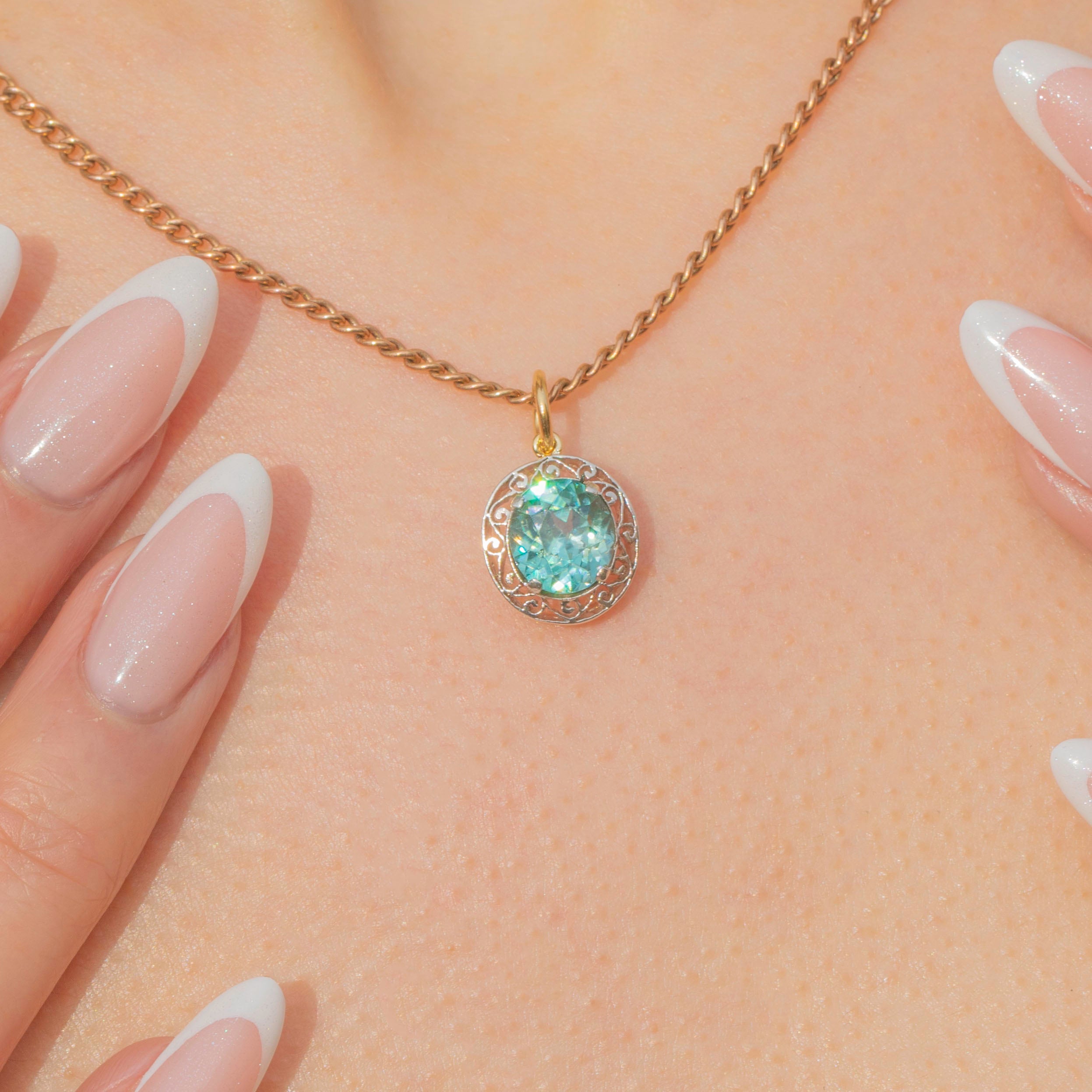 Edwardian Blue Zircon Filigree Charm, 1.30ct Item added