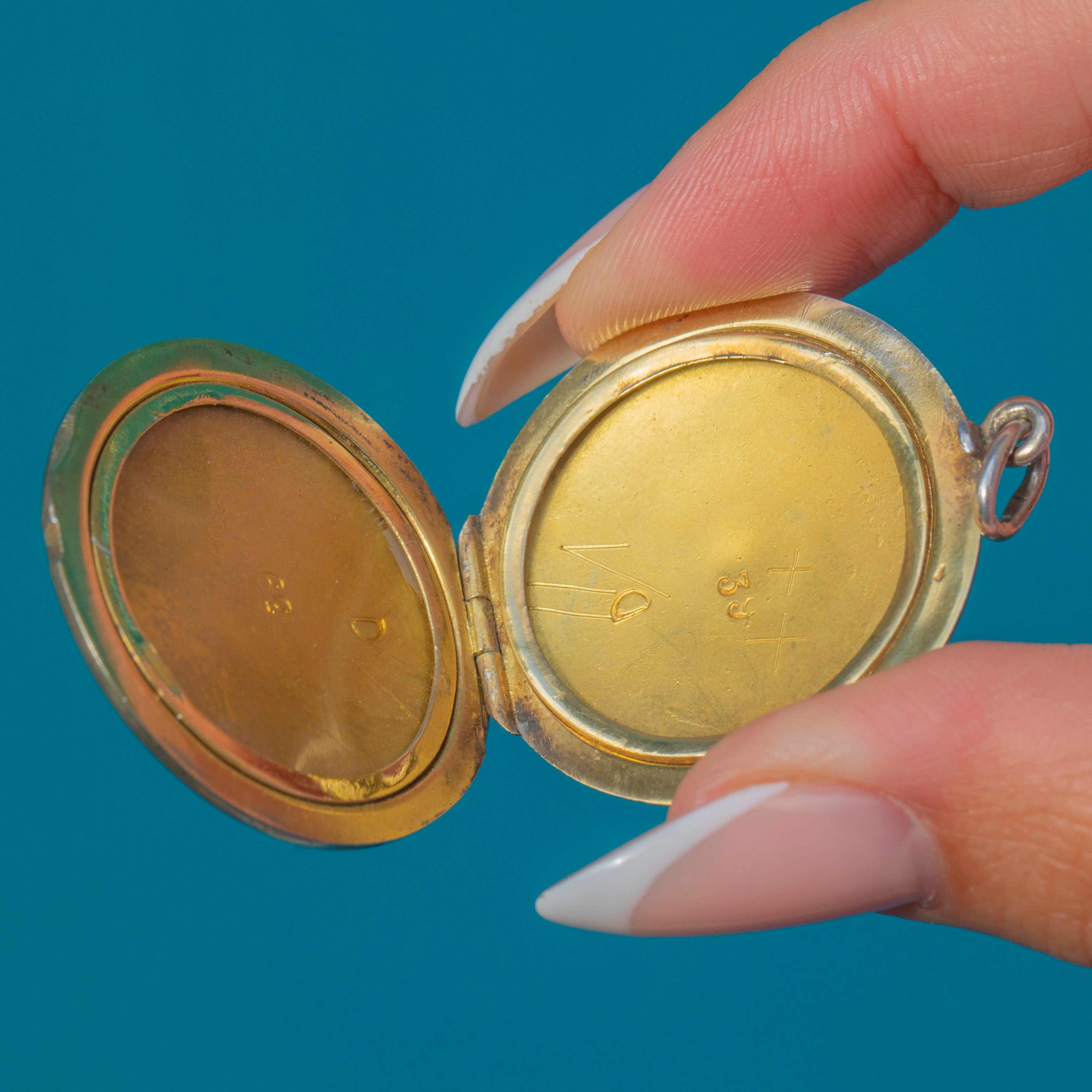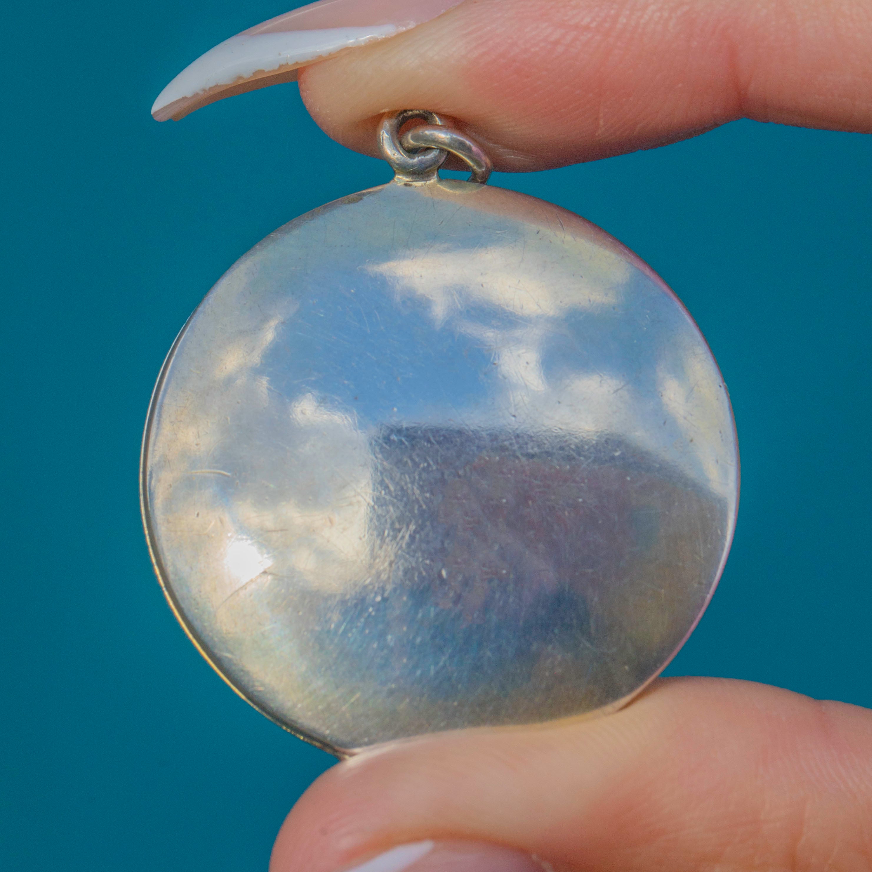 The locket opens to reveal two compartments with Gilt interiors, perfect for holding cherished photographs. The back is left plain in polished Silver, offering a subtle contrast to the richly decorated front. Romantic and feminine, this piece captures the elegance and artistry of Edwardian jewellery design.