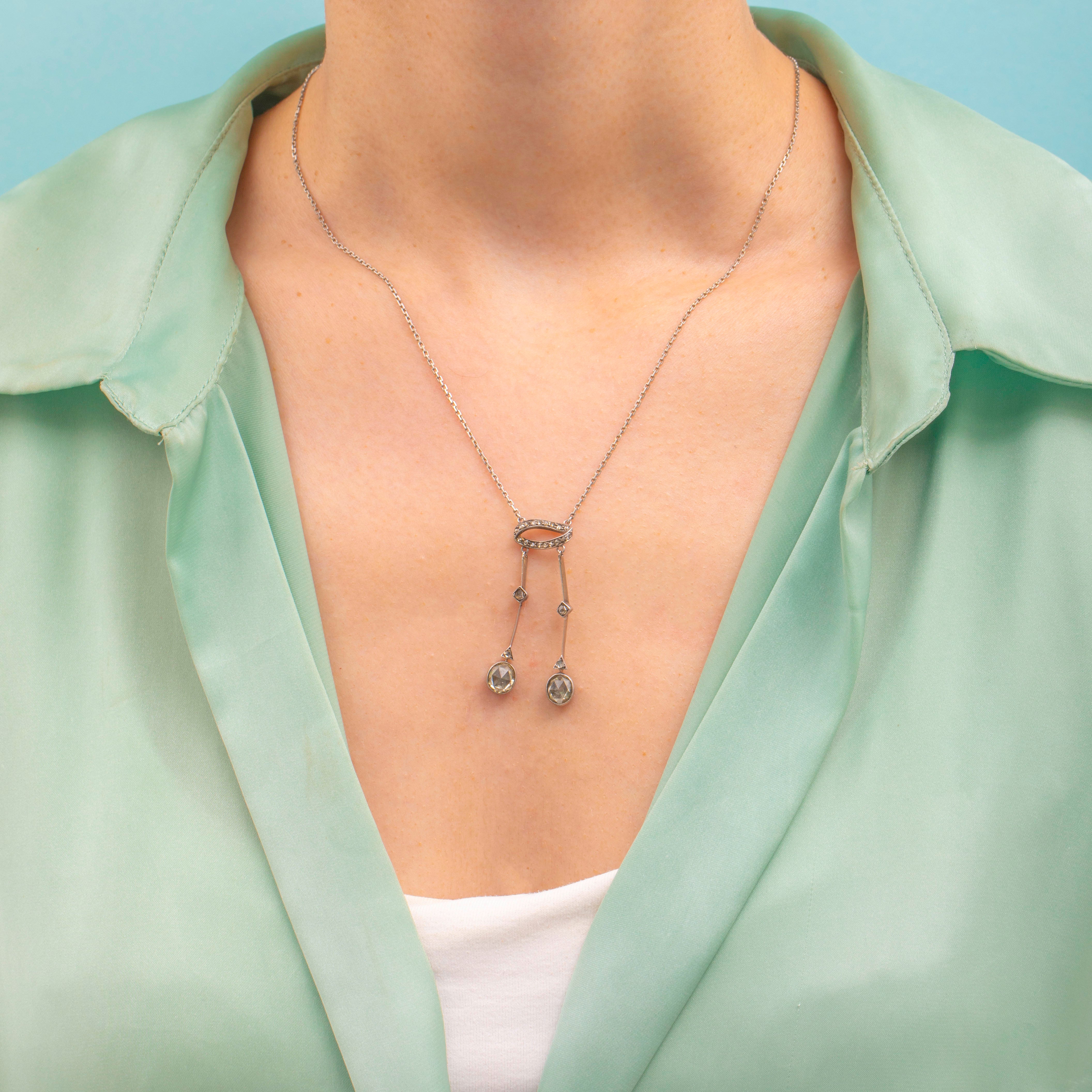 A divine Edwardian Platinum Diamond negligee drop necklace for your décolletage!