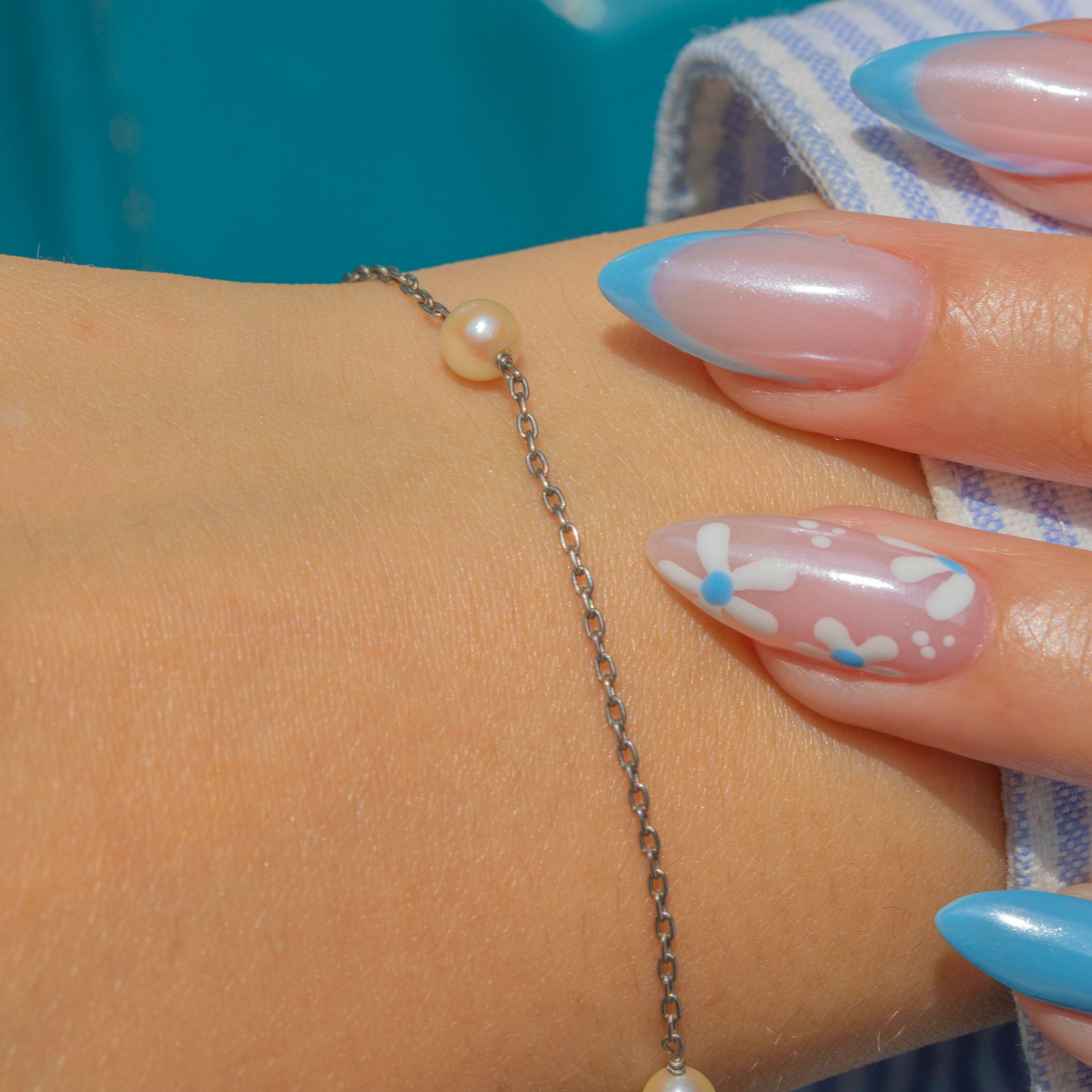 This elegant Edwardian Pearl bracelet is a timeless piece of wrist candy! Delicate Platinum links are interspersed with lustrous Pearls, each glowing with a soft iridescence.