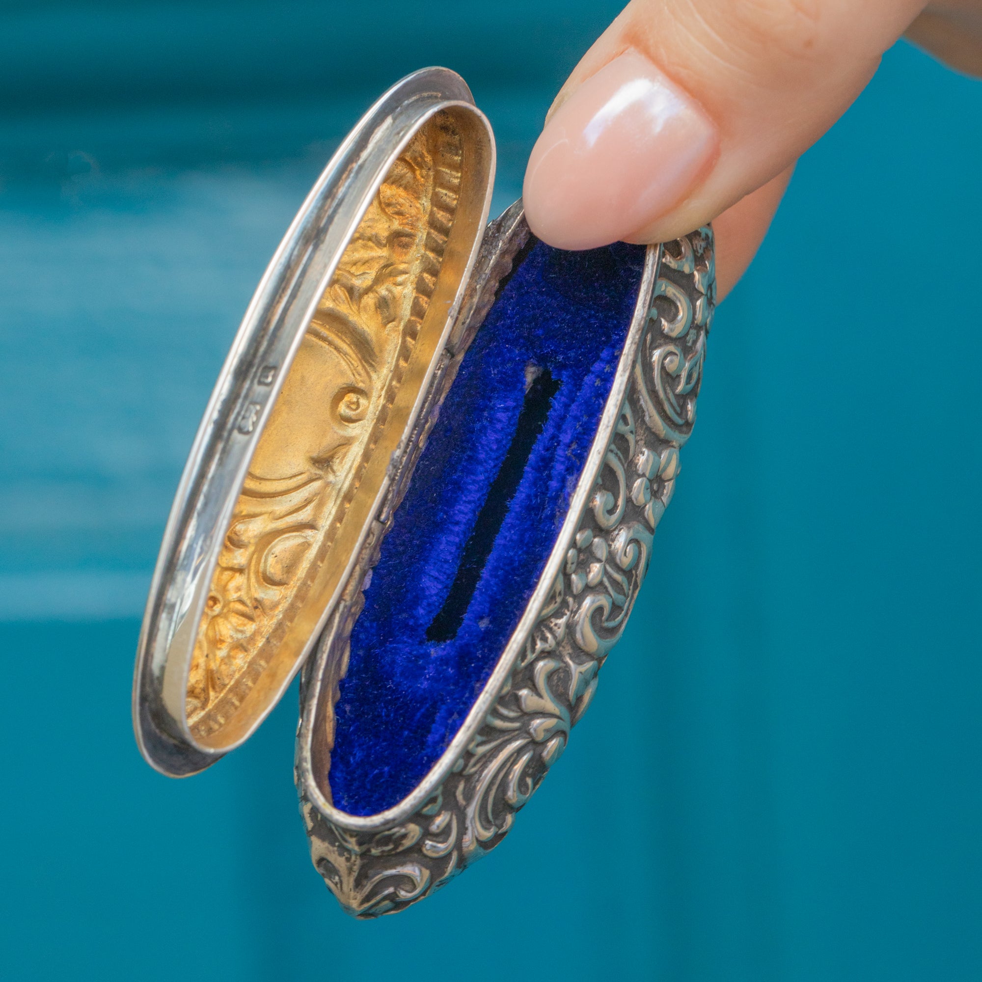 MATERIALS: Tests and hallmarked as Sterling Silver. The inside is gilded with 9ct Gold (to stop the Silver from tarnishing!)
