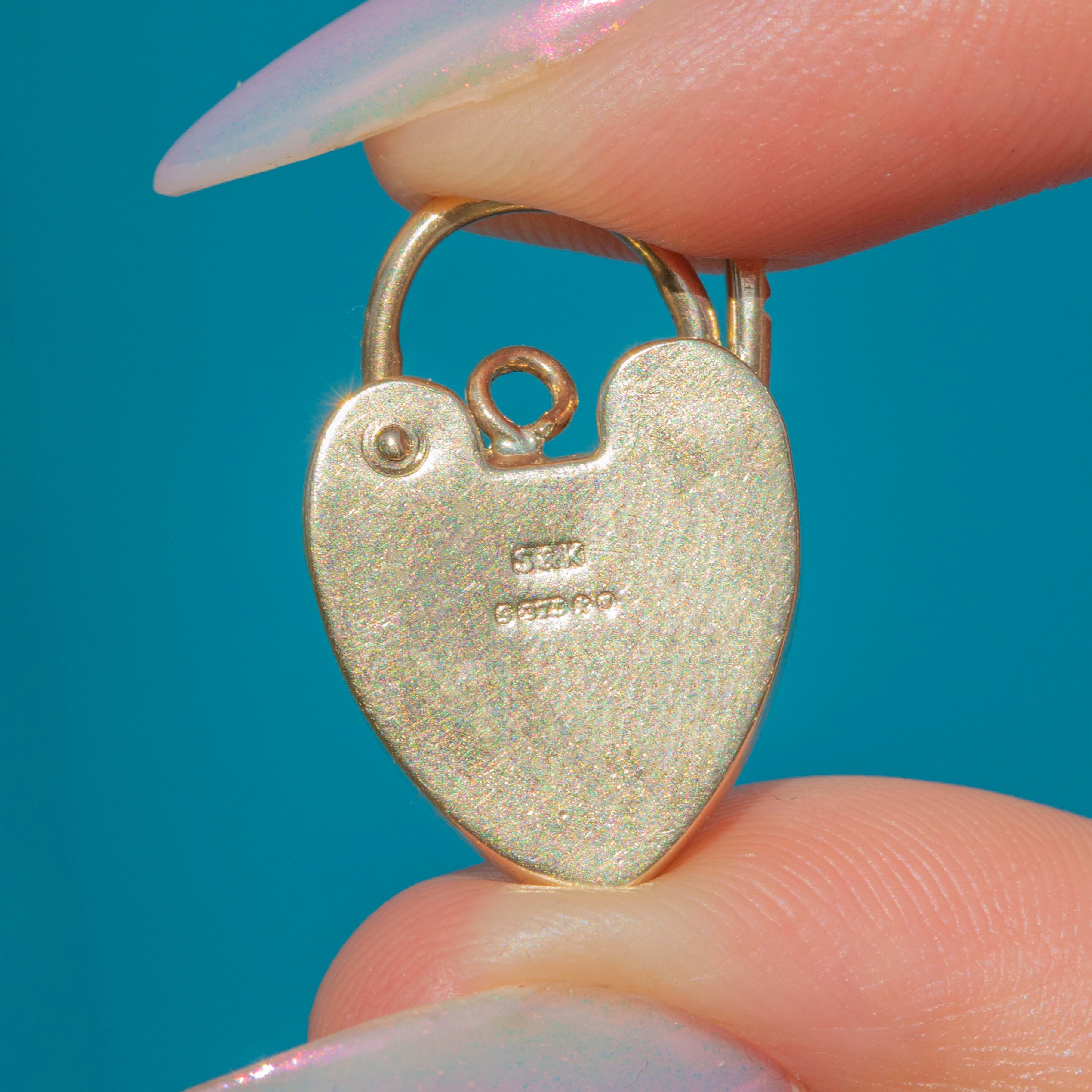 English 9ct Gold Engraved Scallop Heart Padlock Pendant, c.1965