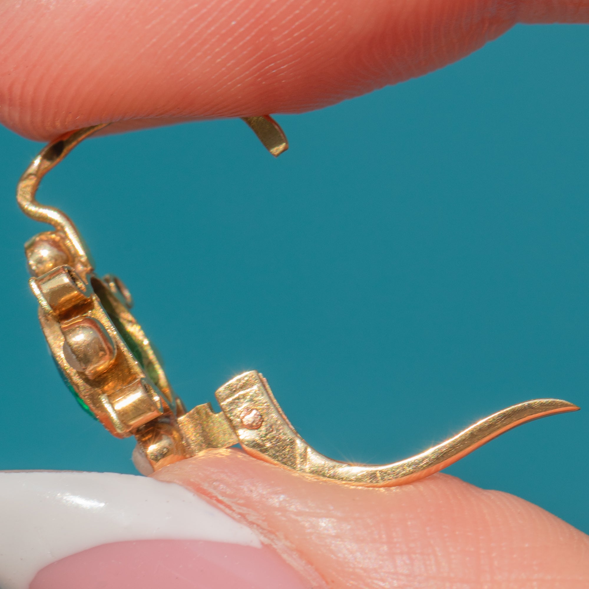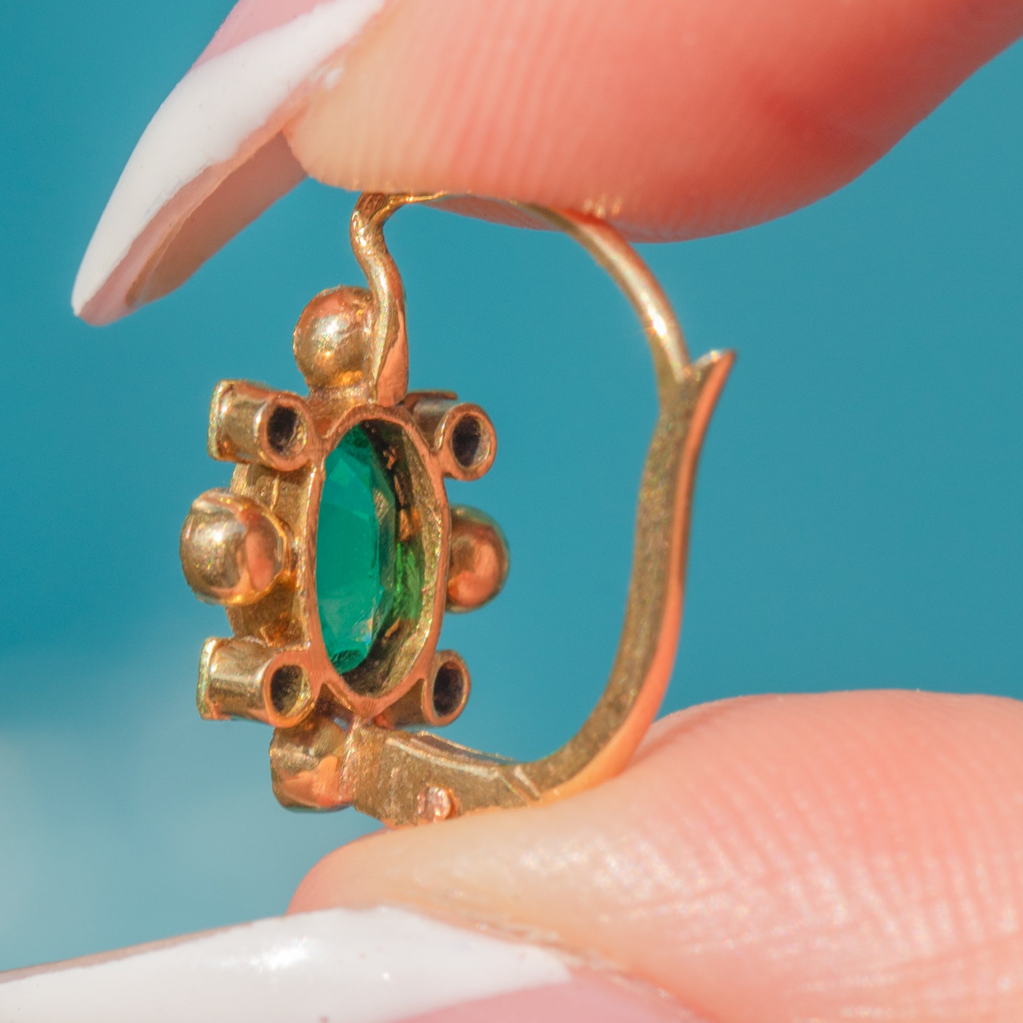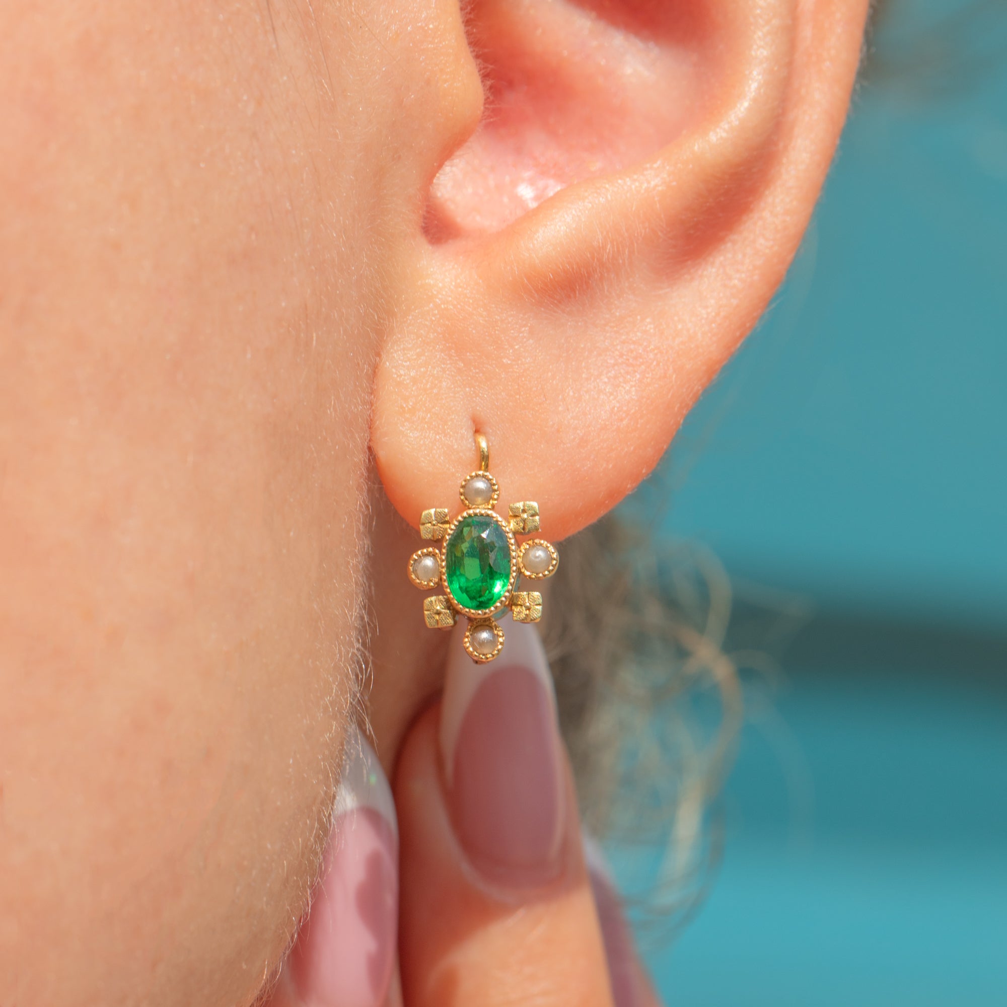 Delicate and versatile, these antique French earrings are a wonderful pair to add refined elegance and a pop of colour to your attire.