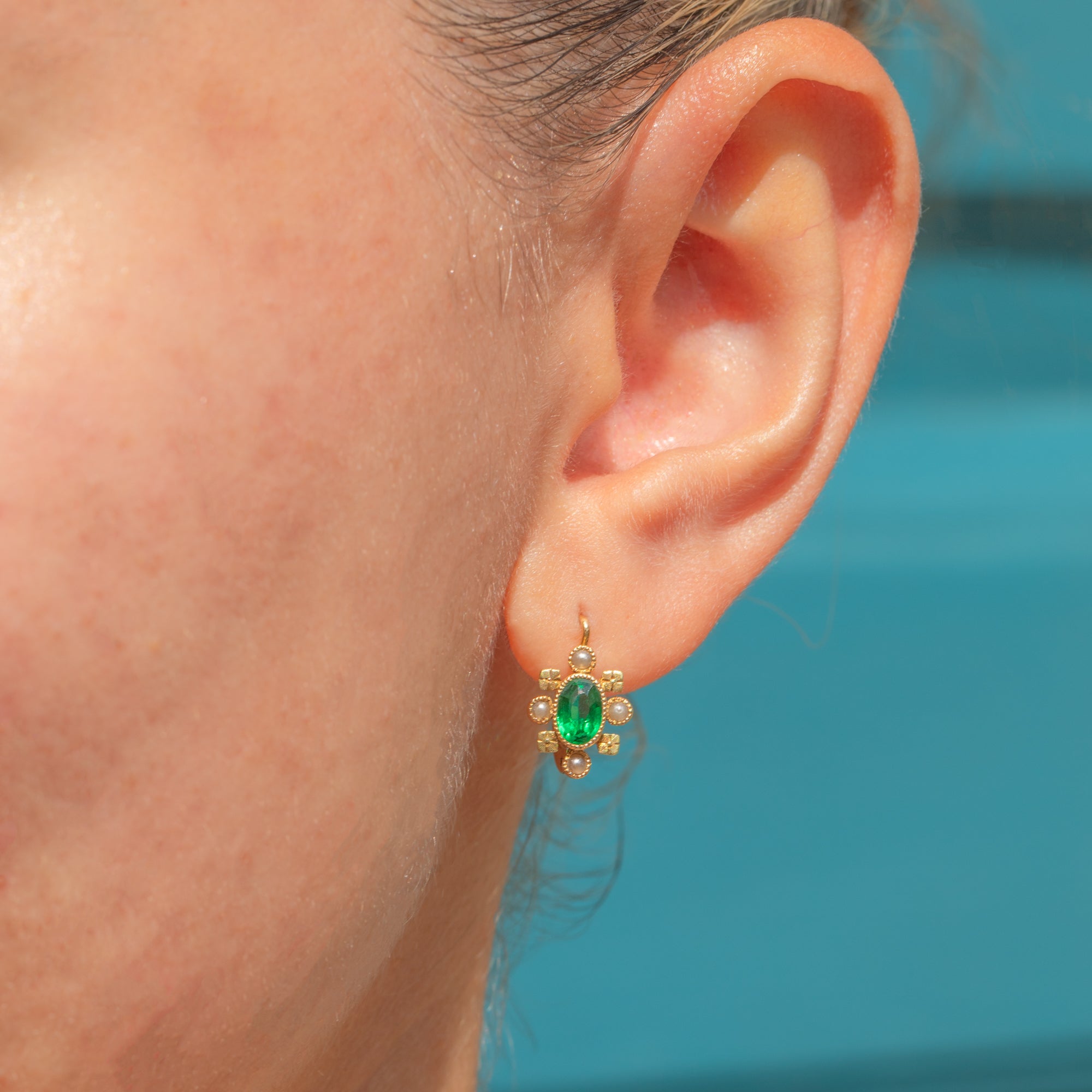 French 18ct Gold Green Paste Pearl Lever-Back Earrings