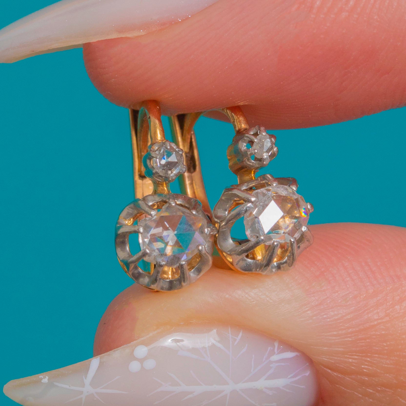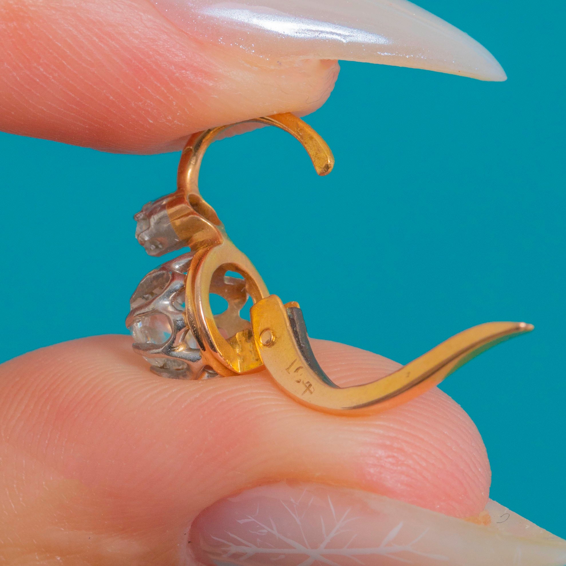 French 18ct Gold Rose-Cut Diamond Dormeuse Earrings, 0.70ct