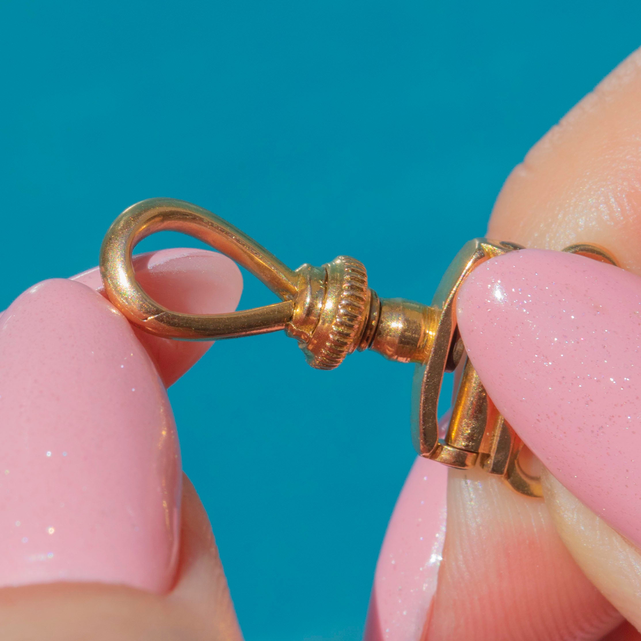 This rare Georgian 18ct Gold dog-clip charm holder will make a unique addition to your collection! Crafted entirely from solid 18ct Gold, this luxurious antique charm holder offers endless styling opportunities, allowing you to swap and change your charms however you please.