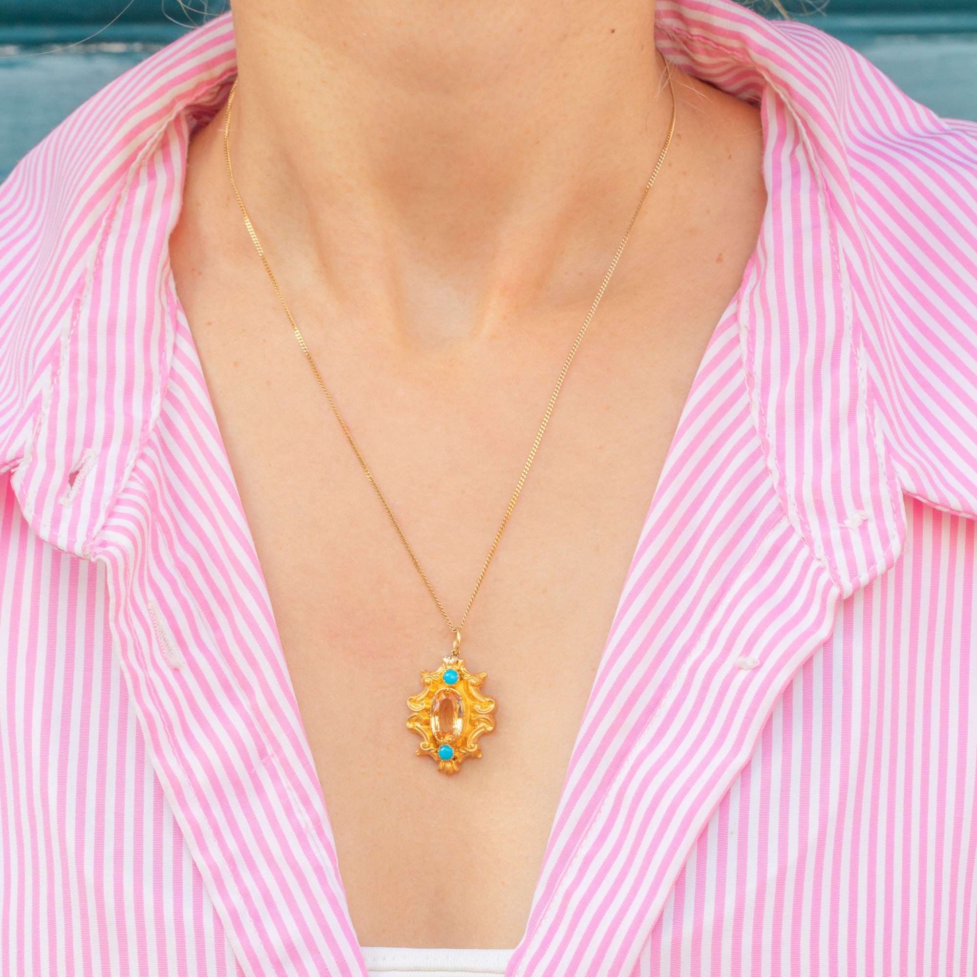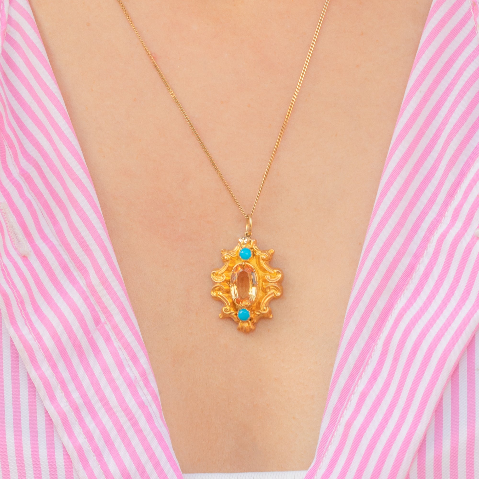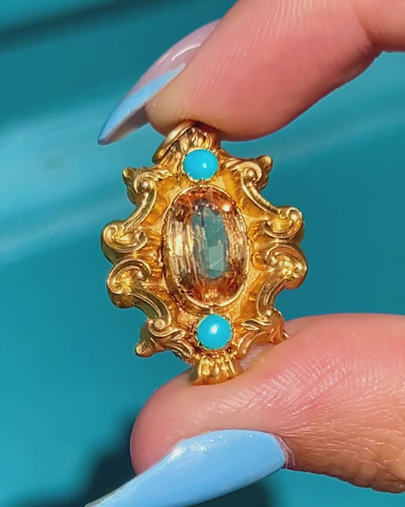Georgian 18ct Gold Imperial Topaz Turquoise Pendant