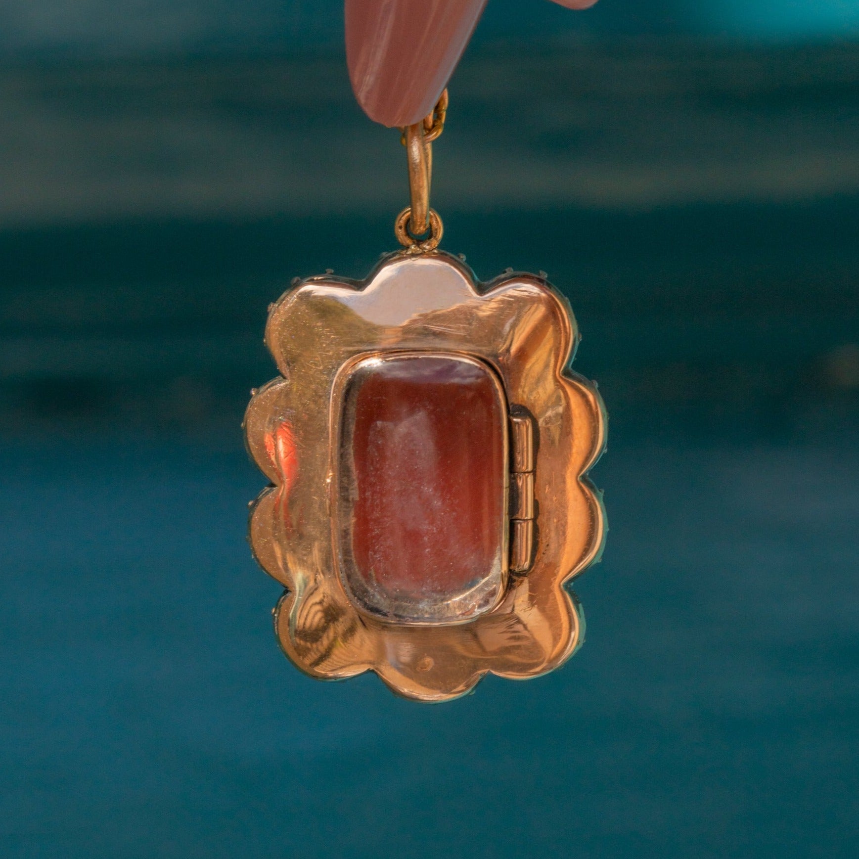 Add a pop of colour to your outfit with this glamorous and ultra-rare Georgian 9ct Gold Coral locket-bacl pendant! We just adore the naturally differing Coral stones in delicious tangerine and jammy marmalade hues.