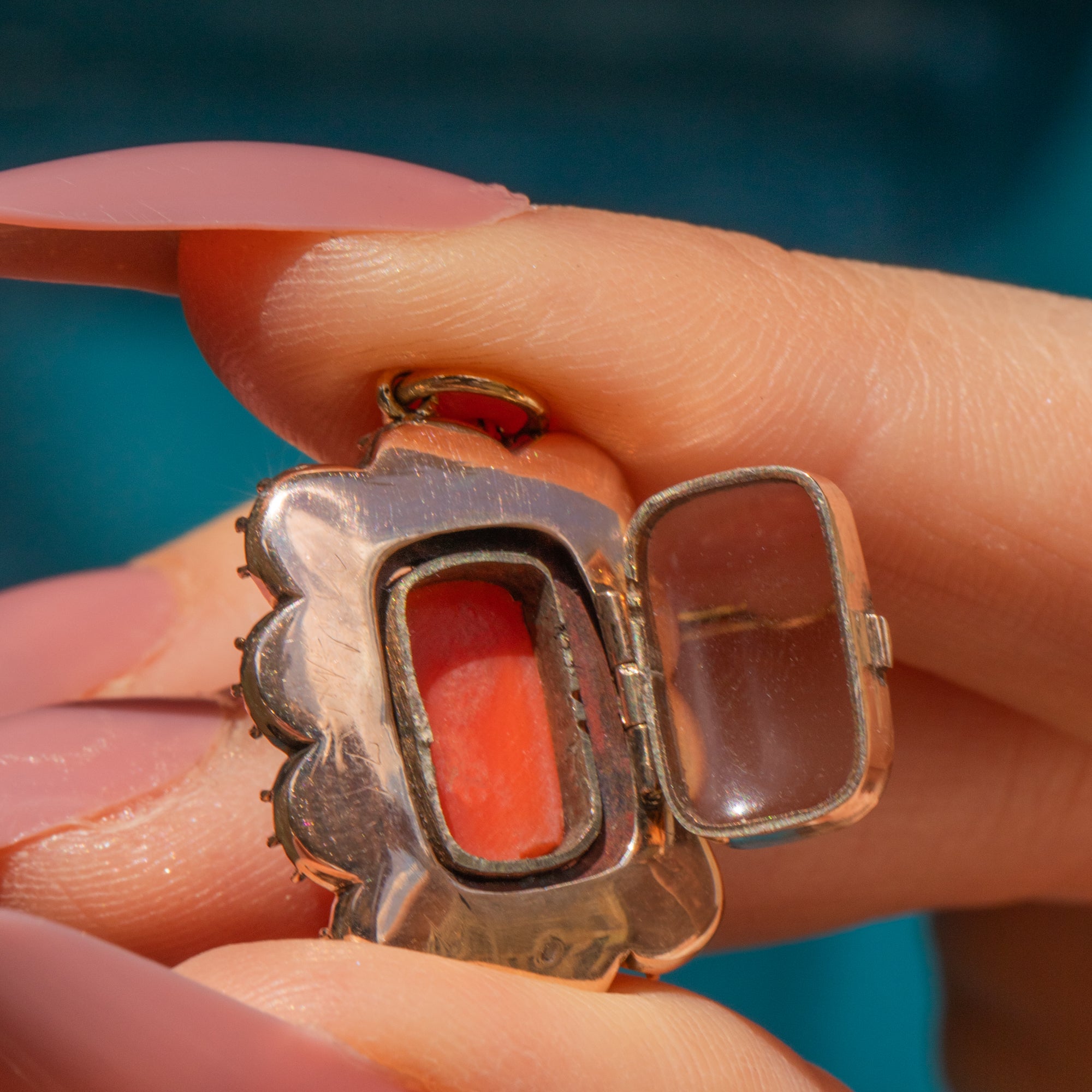 Georgian 9ct Gold Coral Locket-Back Pendant