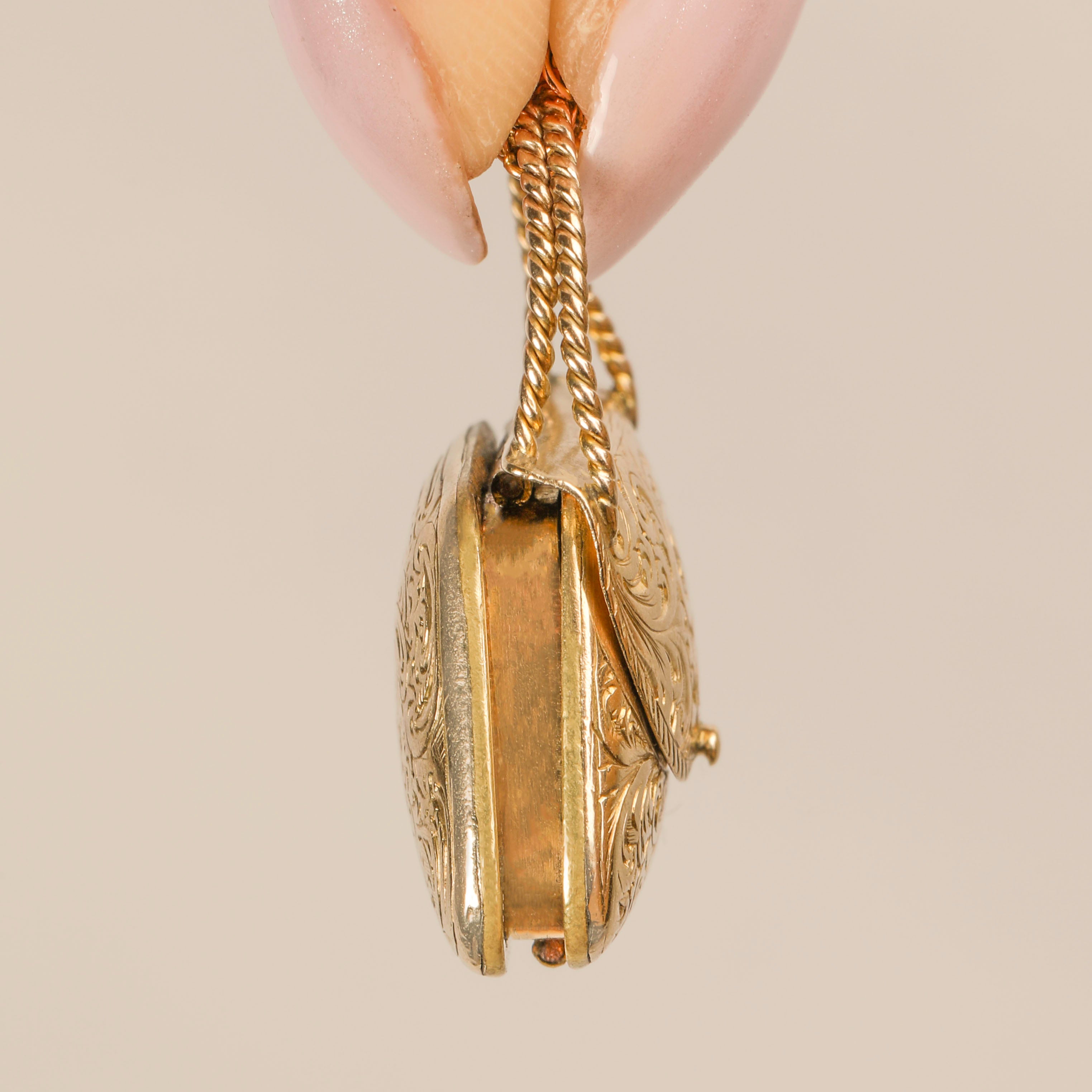 Georgian 9ct Gold Engraved Handbag Locket Pendant, c.1830