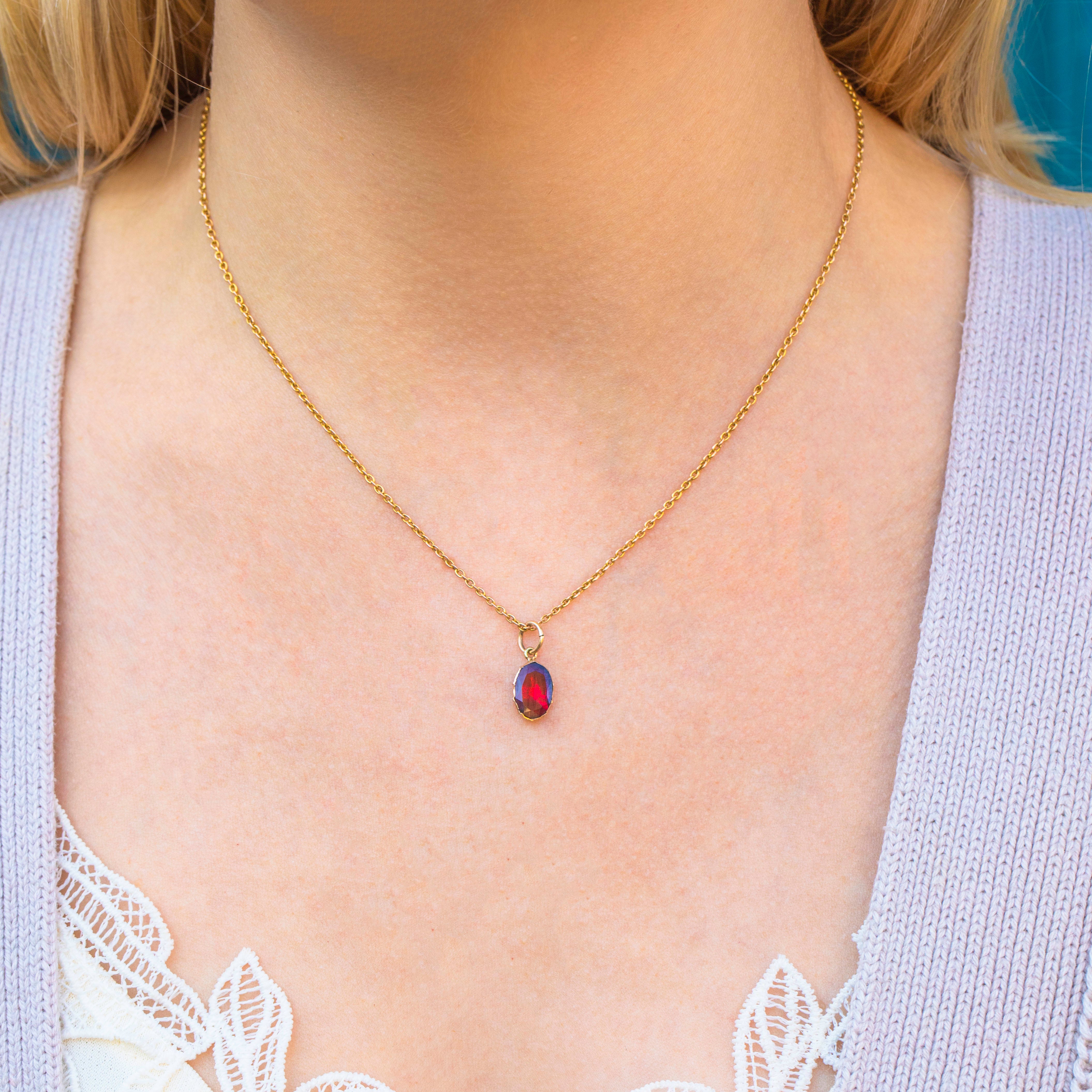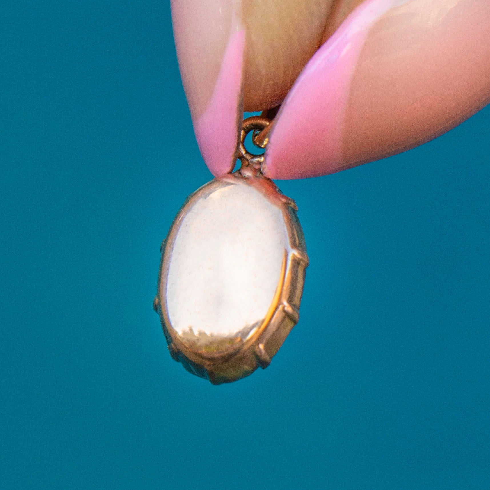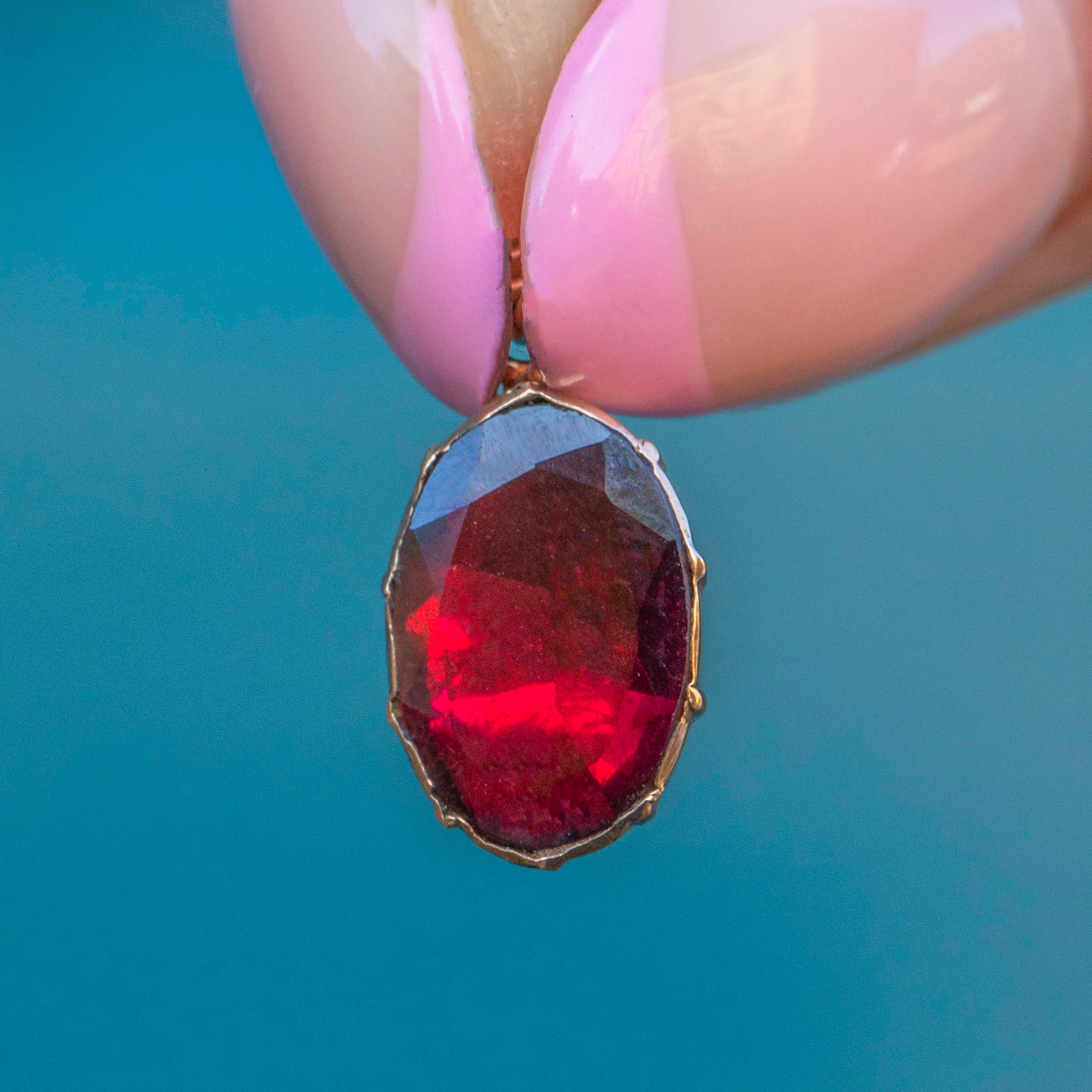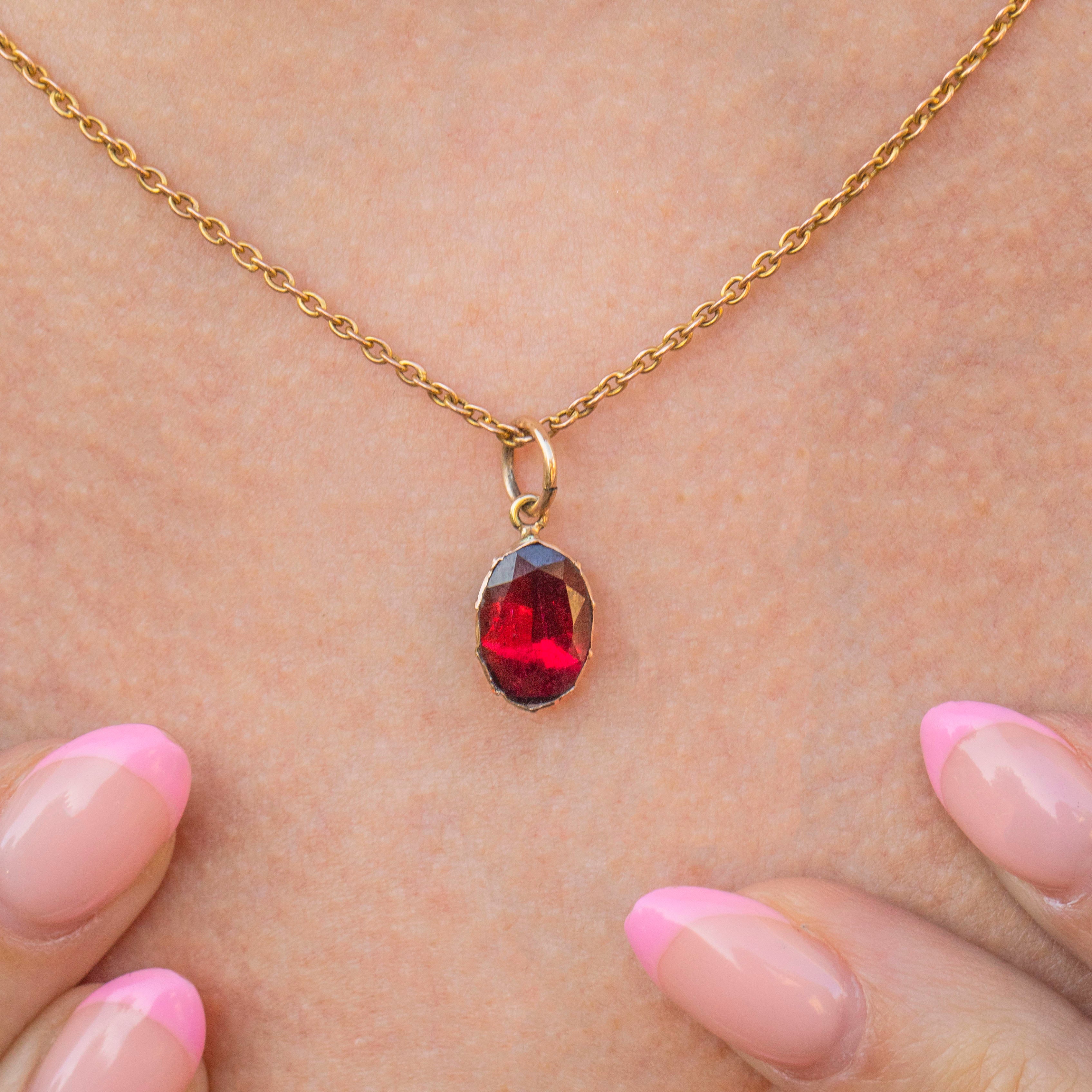 We are in love with this dainty Georgian 9ct Gold foiled flat-cut Garnet charm! This ravishing oval Garnet charm is perfect for adding a pop of colour to your décolletage, easily suspended from a skinny Gold chain or affixed to a split ring as part of a charm trio.