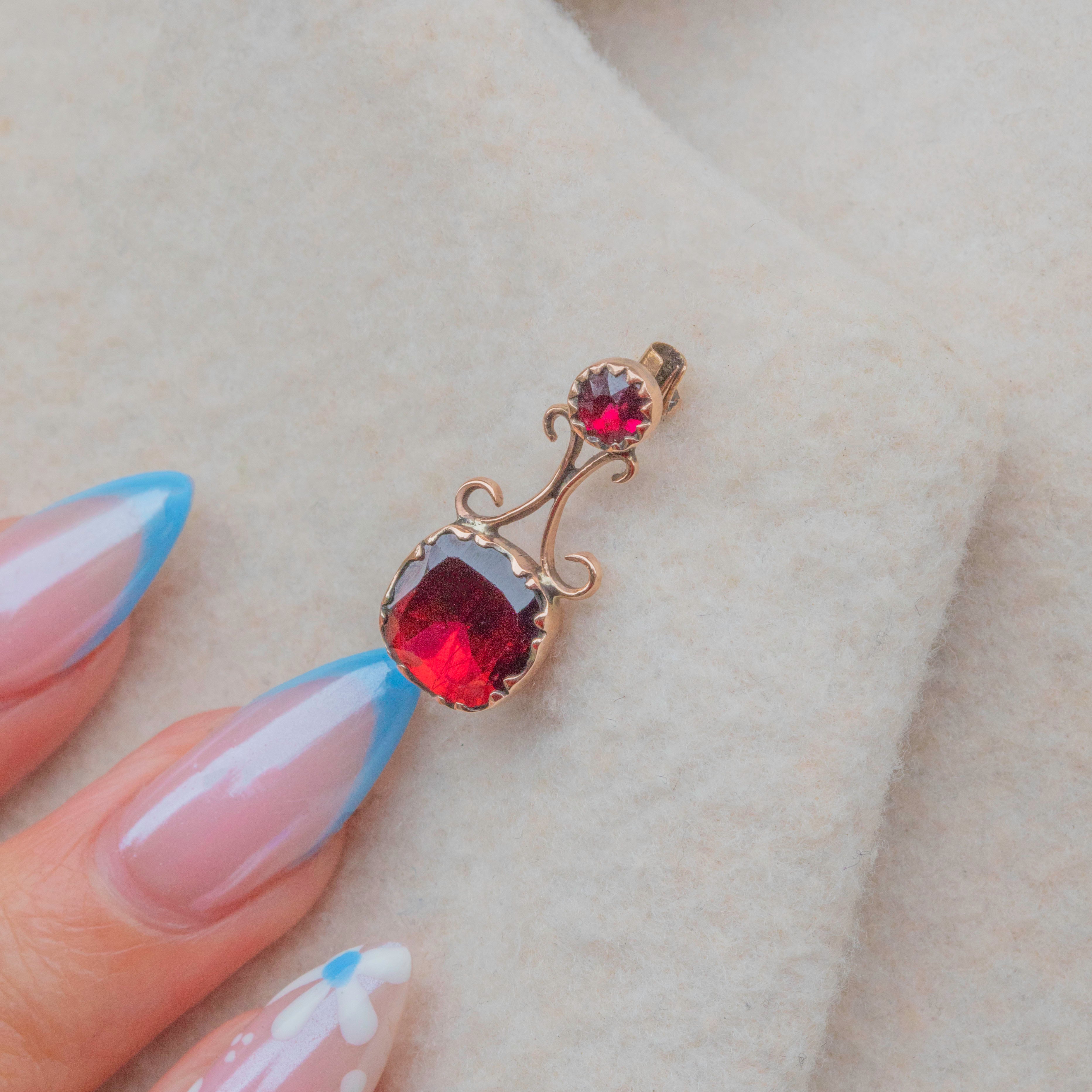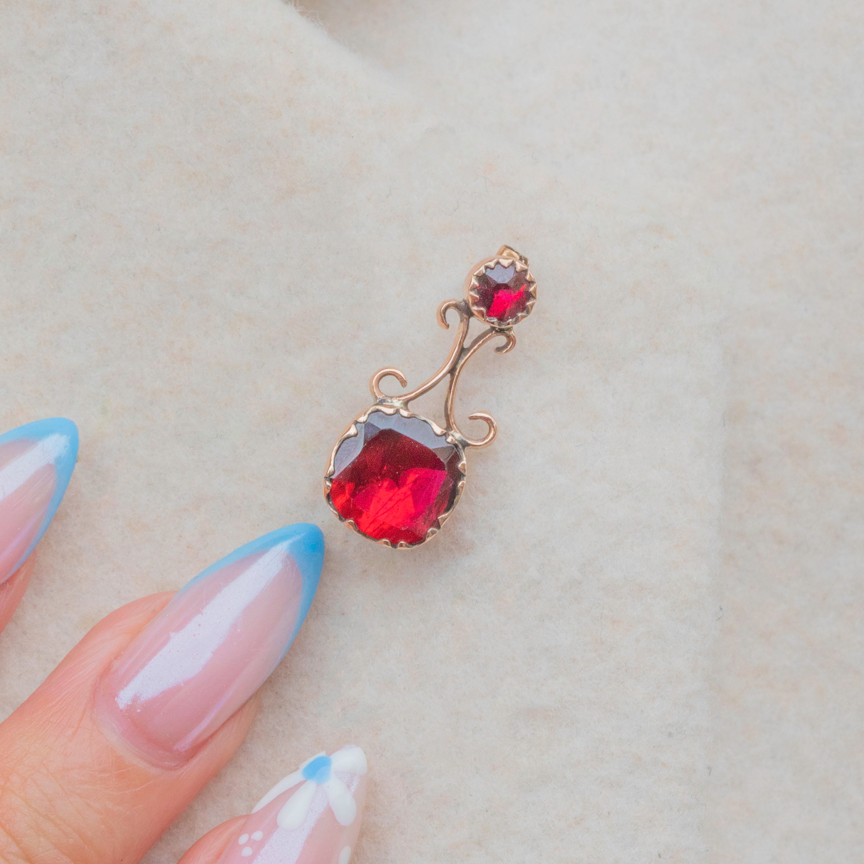 The Garnets are set within typically Georgian decorative settings, crafted from rosy 9ct Gold.