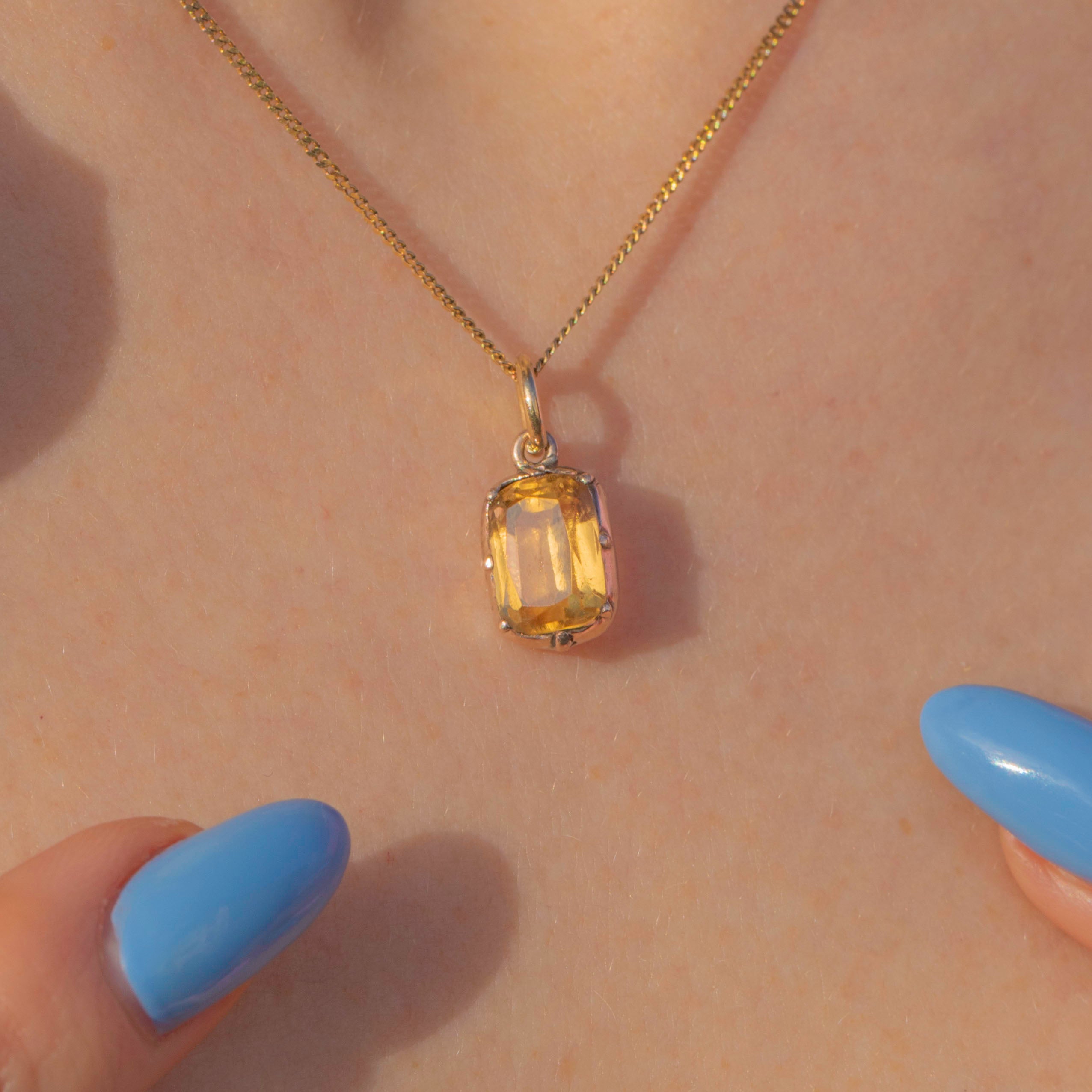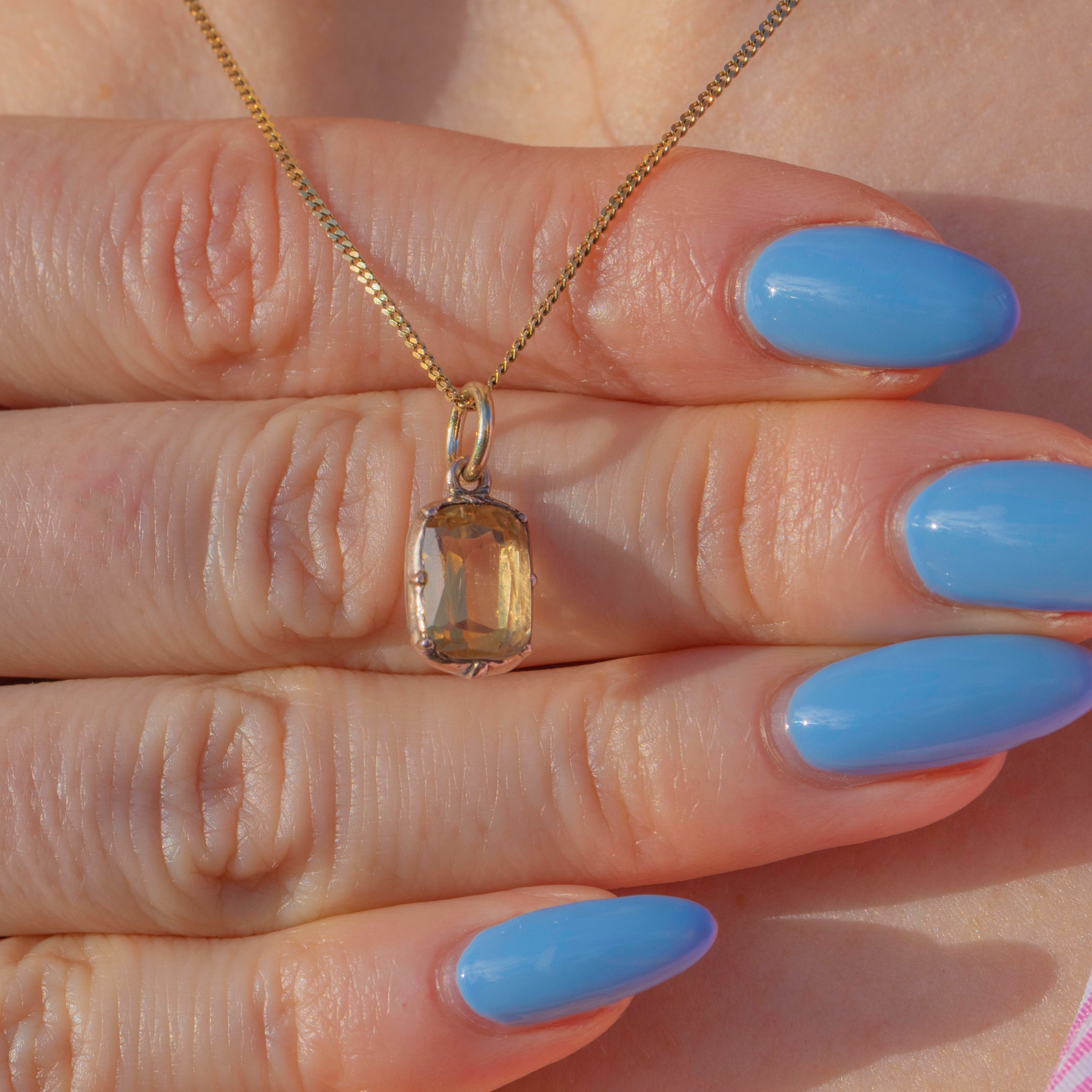 This Georgian 9ct Gold golden Topaz charm certainly is a sweet beauty to behold! Her delicate hue glistens beautifully with a touch of warmth. Enveloped in a rich, warm 9ct Gold which adds to her allure, this Topaz charm will make a fine accompaniment to a fine Gold chain. Wear her alone, or styled with other charms, her elegant beauty is suited to solitude or sharing!
