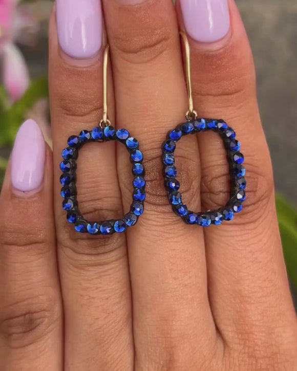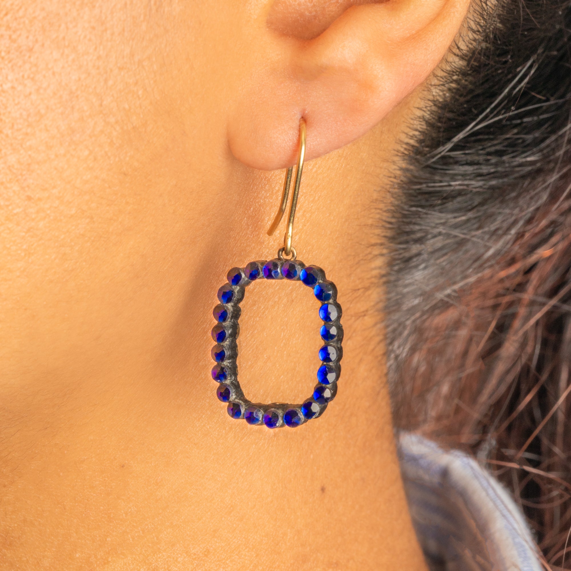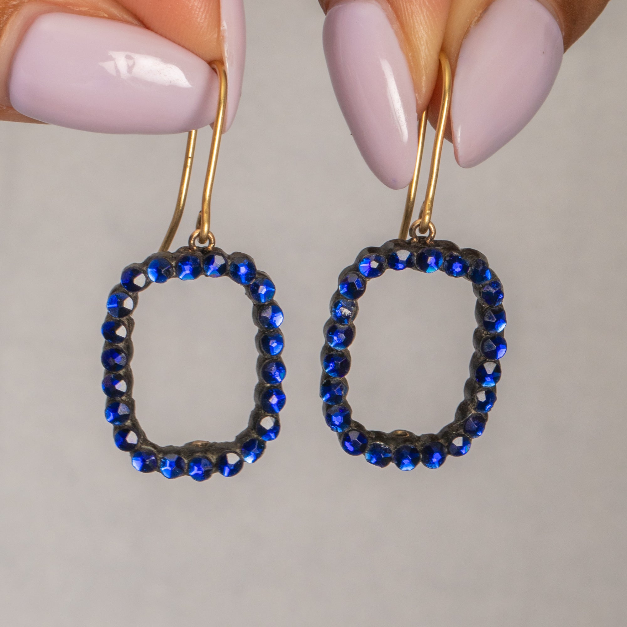 Once suspended from your lobes, everyone will glimpse these Georgian blue Vauxhall glass steel earrings as they catch beneath the light! With vivid electric blue flickers dancing between their hand-cut facets, these Georgian earrings are the perfect pick for a night out.