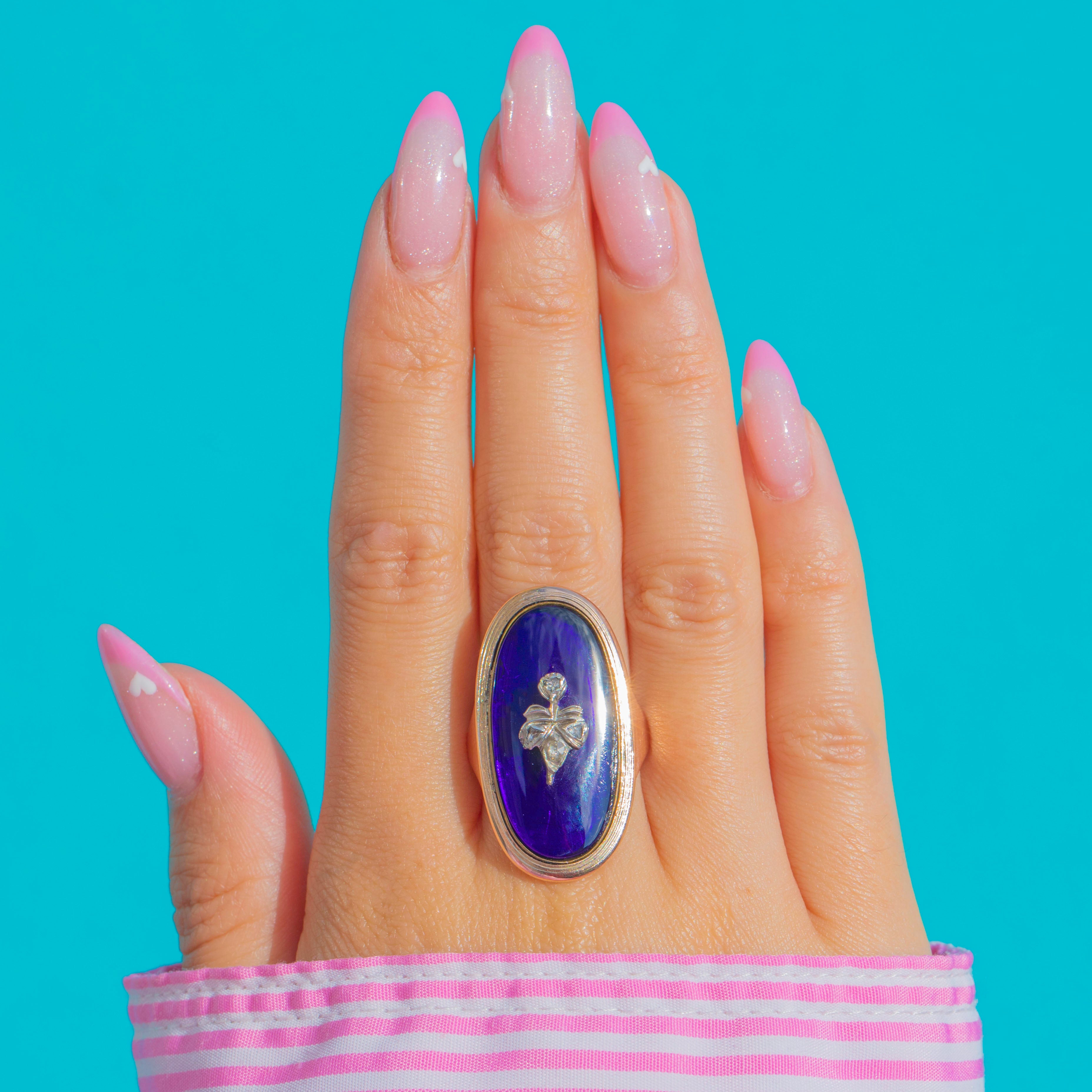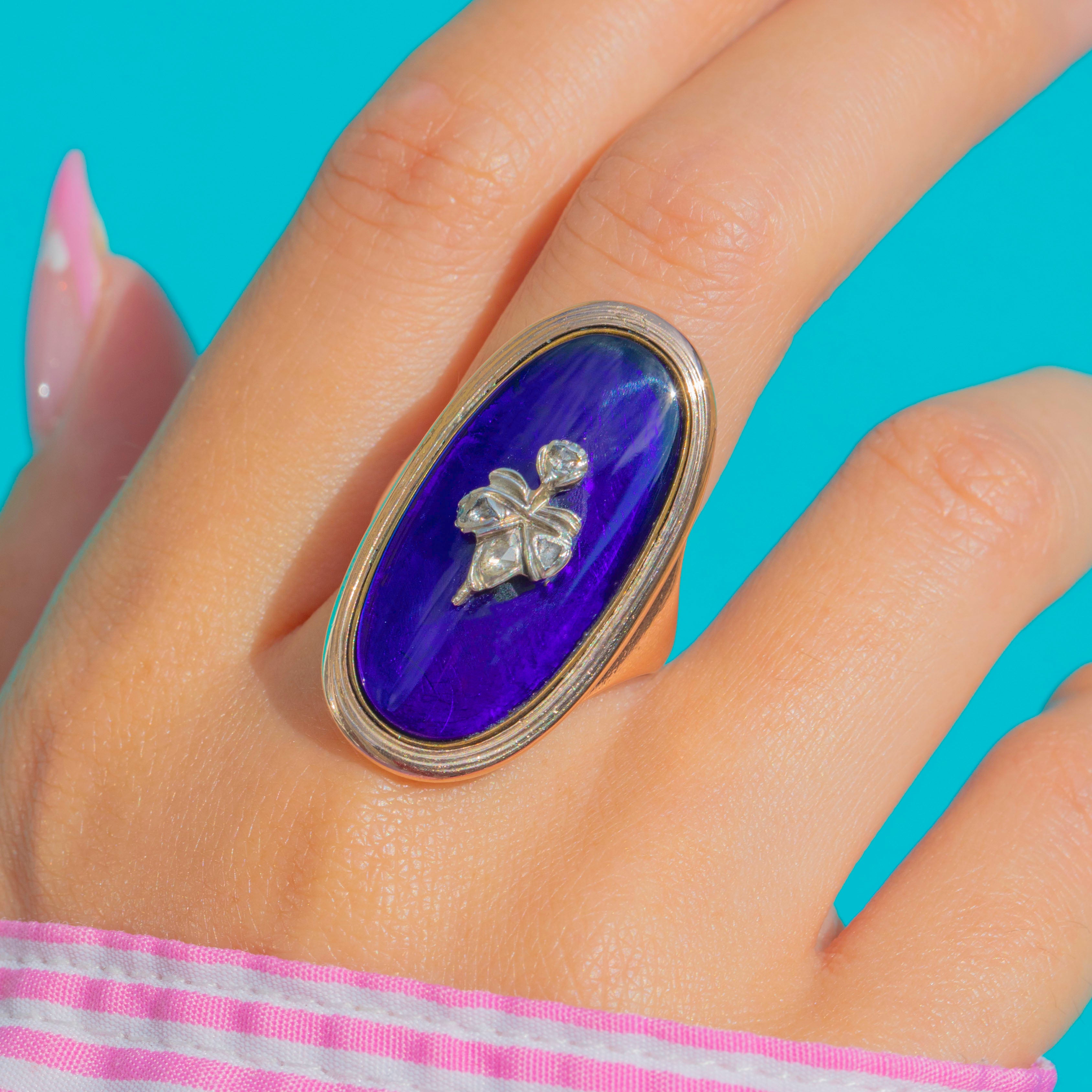 Georgian Bristol Blue Glass Ring with Diamond Flower Item added