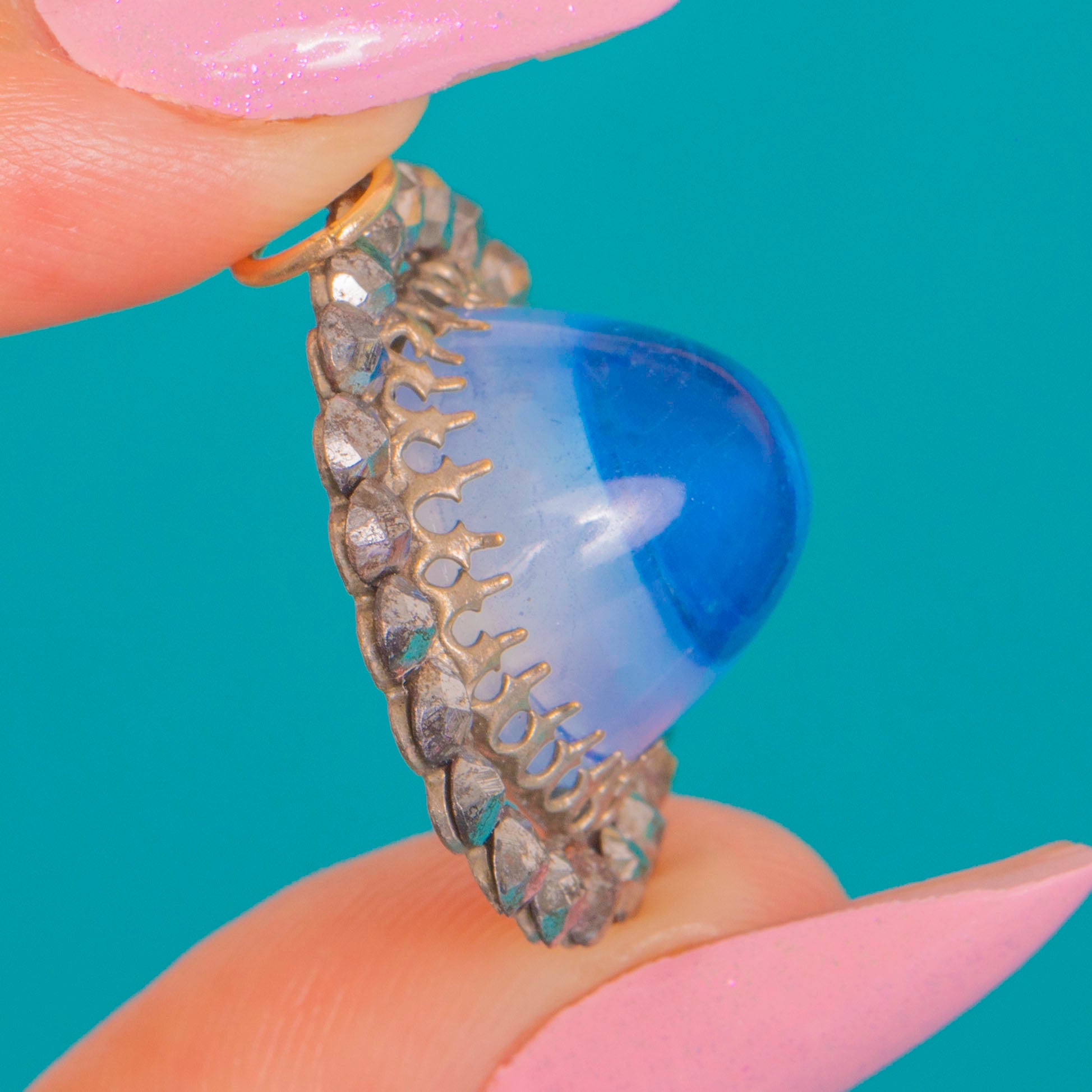 The Blue Chalcedony was added later, probably in the 1920s, bringing a soft, tranquil blue to the piece. Finished with a 9ct Gold jump ring for elegant suspension, it’s a poetic jewel with centuries of style in its silhouette.