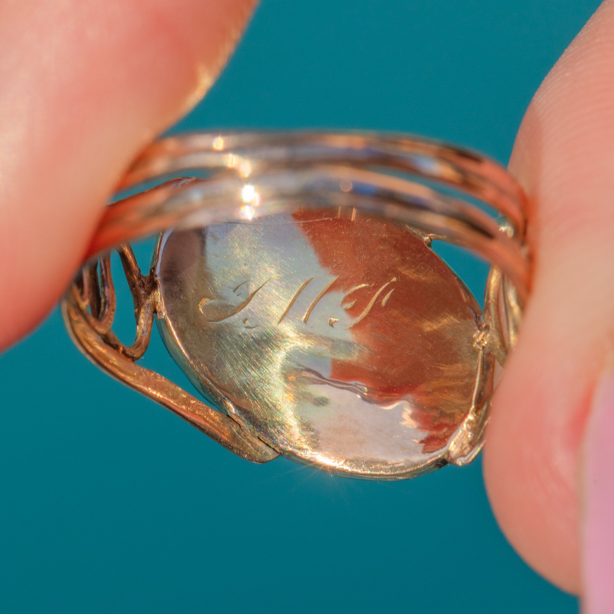 There is a worn personal engraving to the reverse (initials, now no longer fully legible), a lovely nod to the ring’s 19th-century history.
