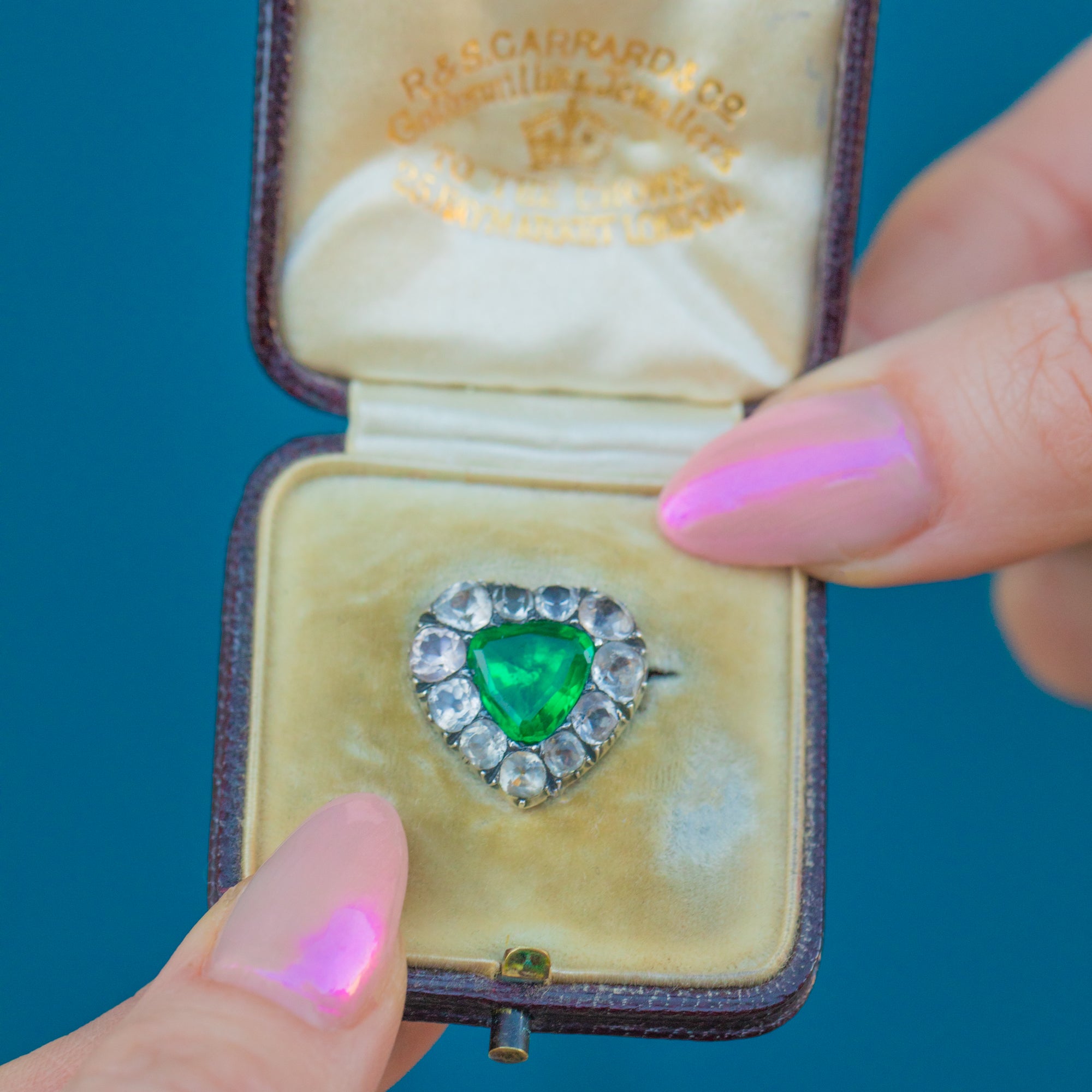 Georgian Green Paste Heart Brooch c.1780, Original Garrard's Fitted Box