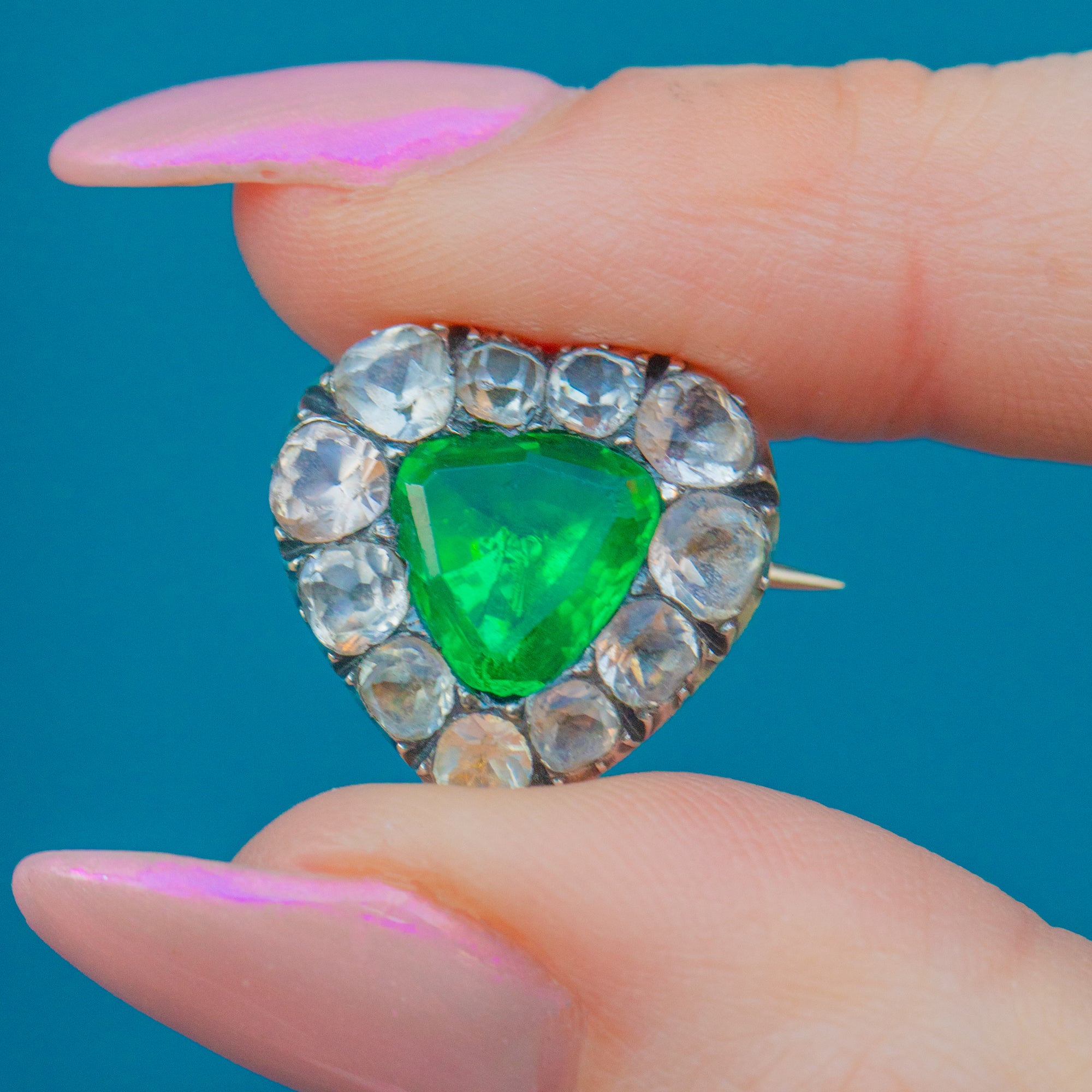 Add a touch of vibrant elegance to your collection with this Georgian green Paste heart brooch!