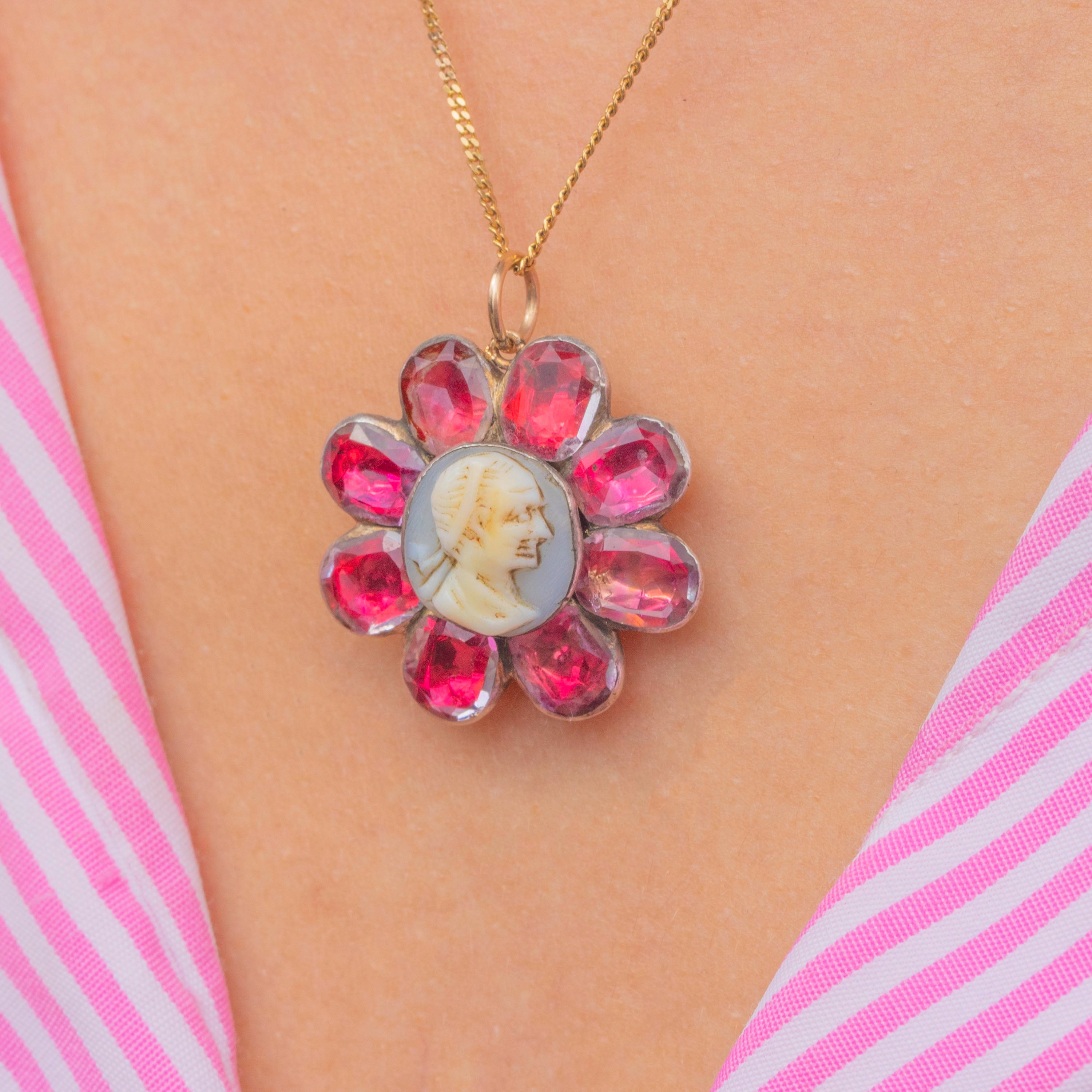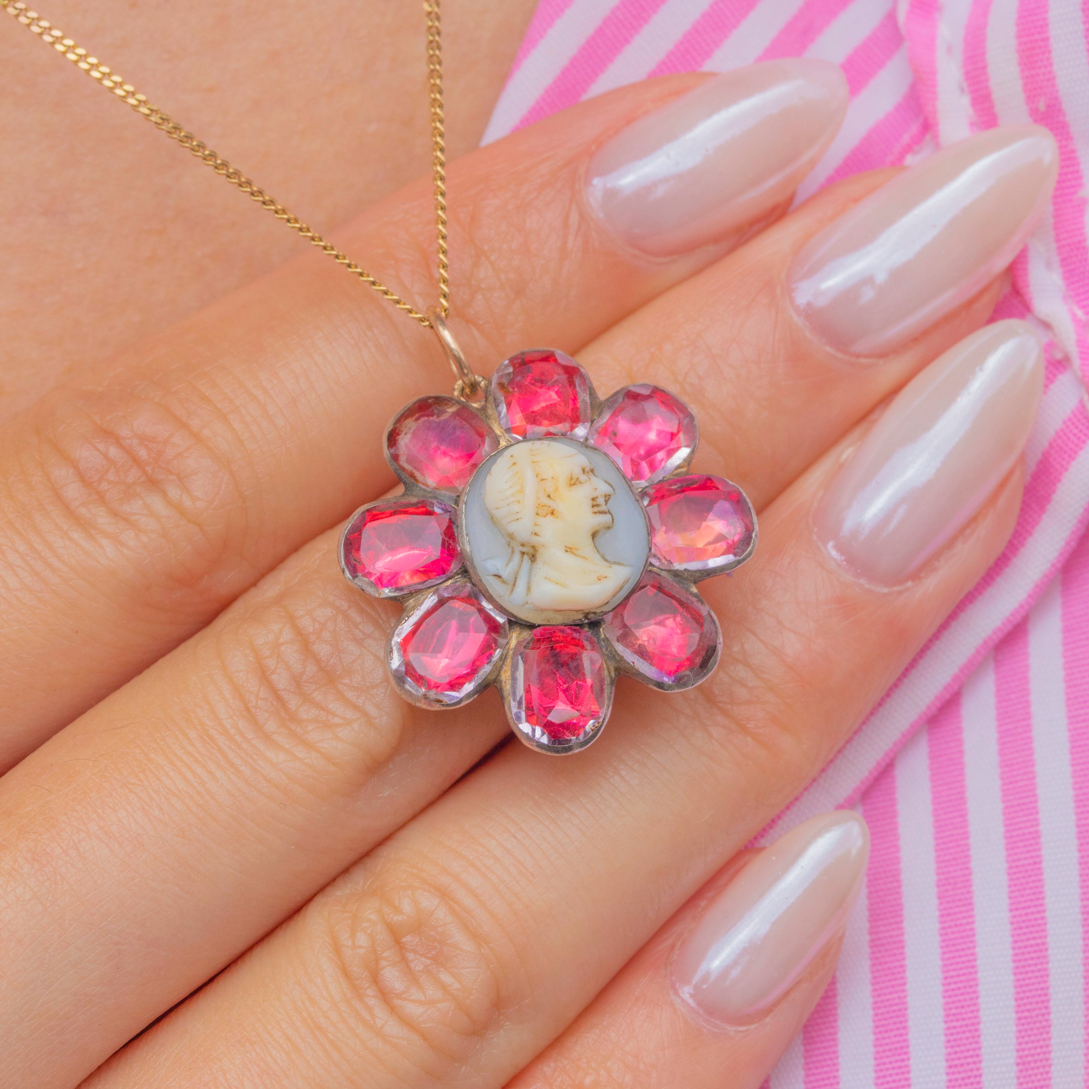 The Georgian Pink Foiled Rock Crystal Cameo Pendant features all the hallmarks of classic late 18th Century, early 19th Century design.