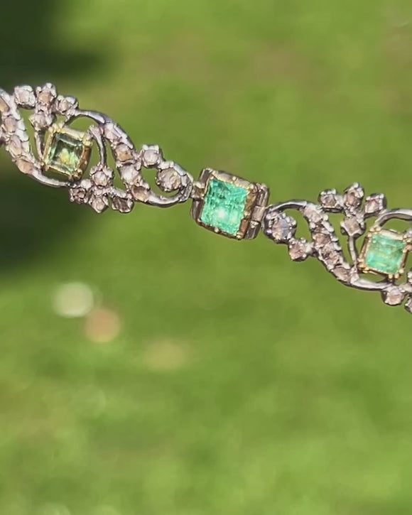 This Georgian Silver Emerald and Diamond floral bracelet is an antique treasure!