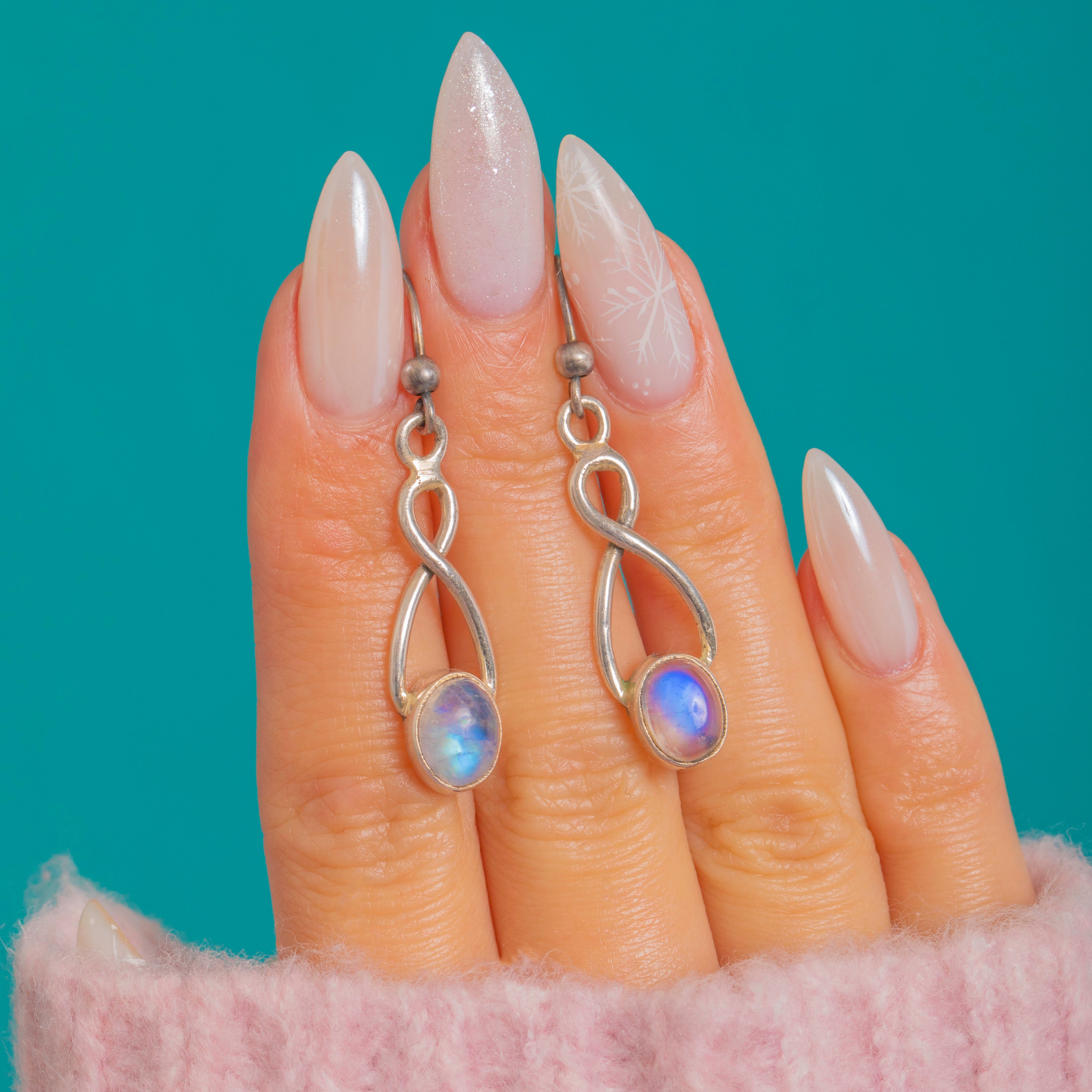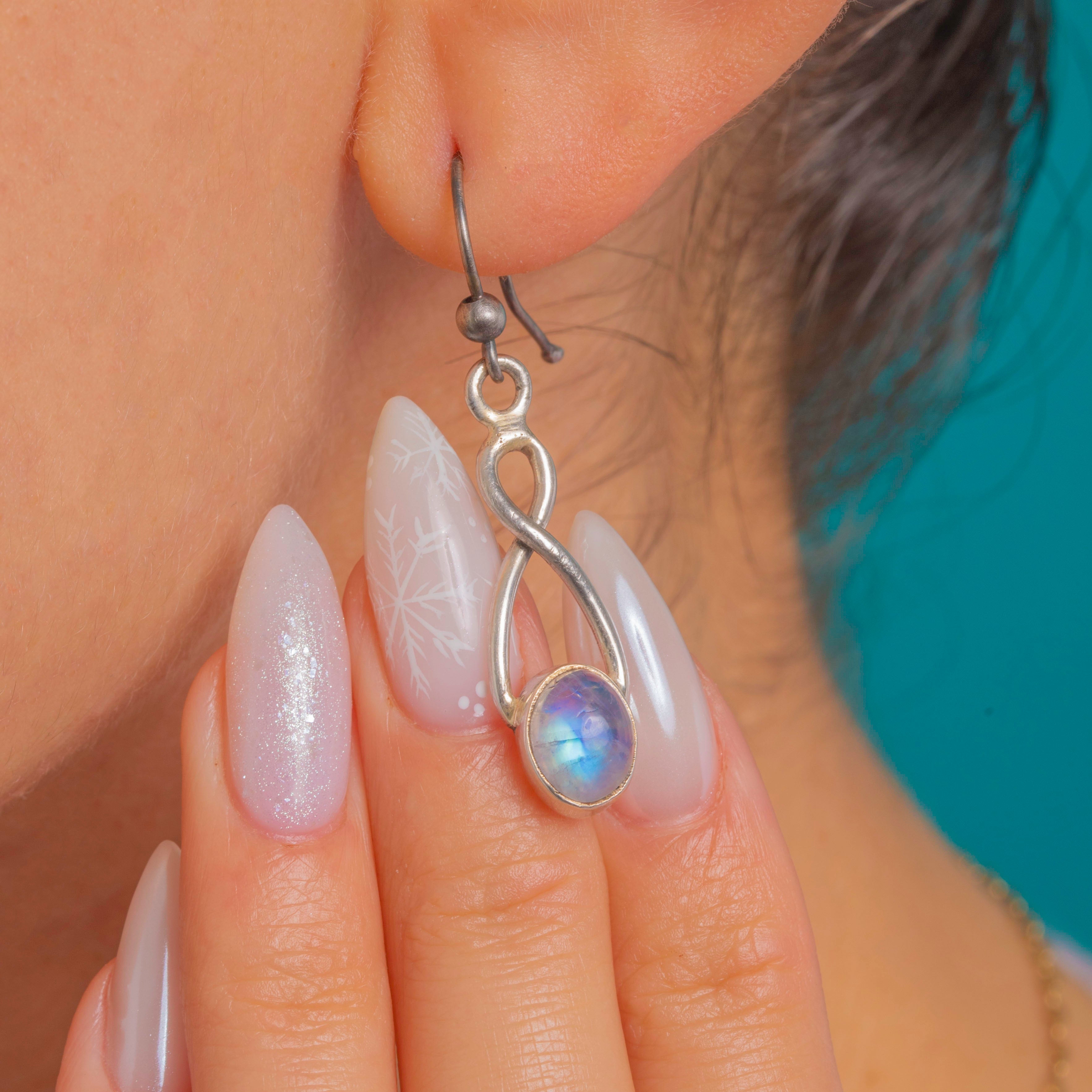 Glowy Silver Rainbow Moonstone Drop Earrings
