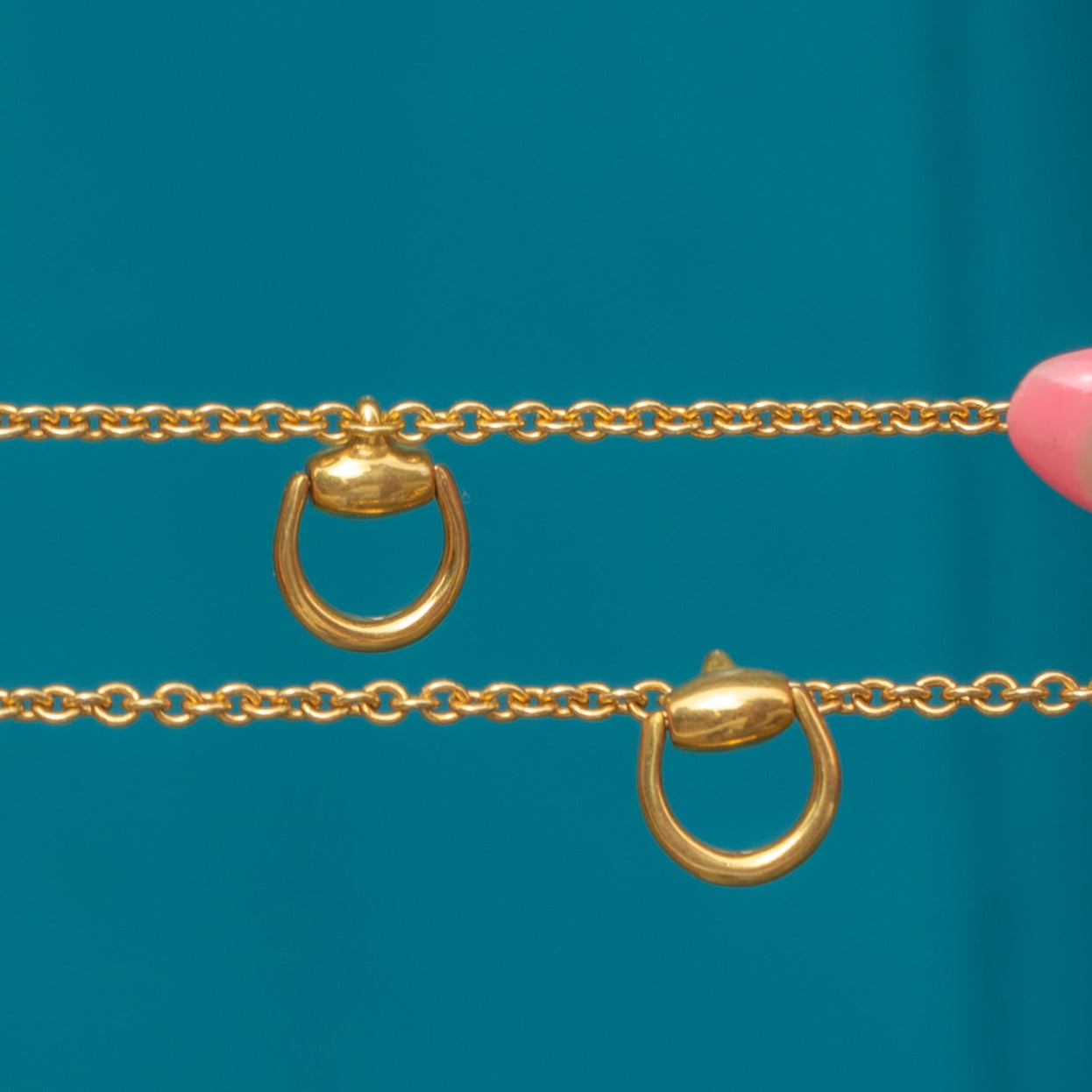 This 18ct Gold Gucci necklace is adorned throughout with horsebit details, a staple emblem of Gucci accessories.  This glossy longuard chain is an instantly recognisable vintage designer piece, and will make a highly coveted addition to your collection.