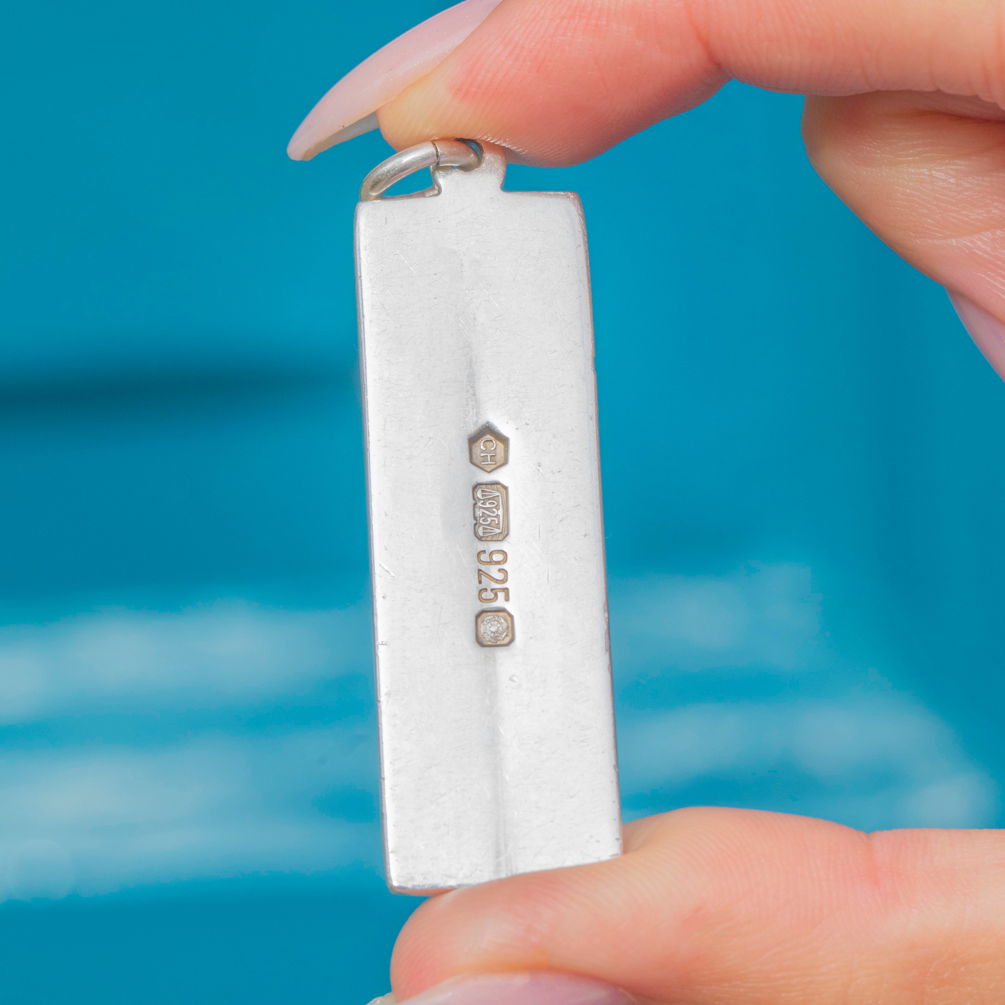 This substantial Sterling Silver ingot pendant, hallmarked 1977, is a striking example of modern Vintage design.