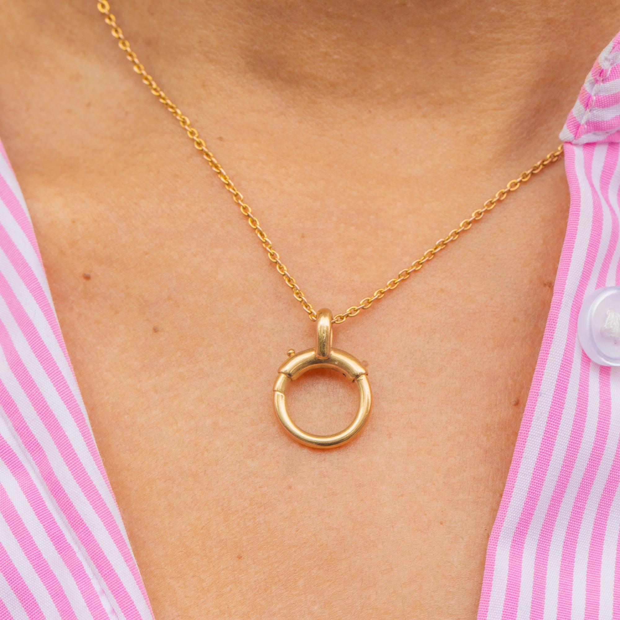 EXCELLENT. This large 18ct Gold bolt ring clasp is offered in excellent condition. The 18ct Gold has a lustrous shine and is free from any dents. The mechanism is in perfect working condition, providing a secure closure and ensuring that any charm or pendant is securely suspended. With proper care and maintenance this clasp will last for generations to come!