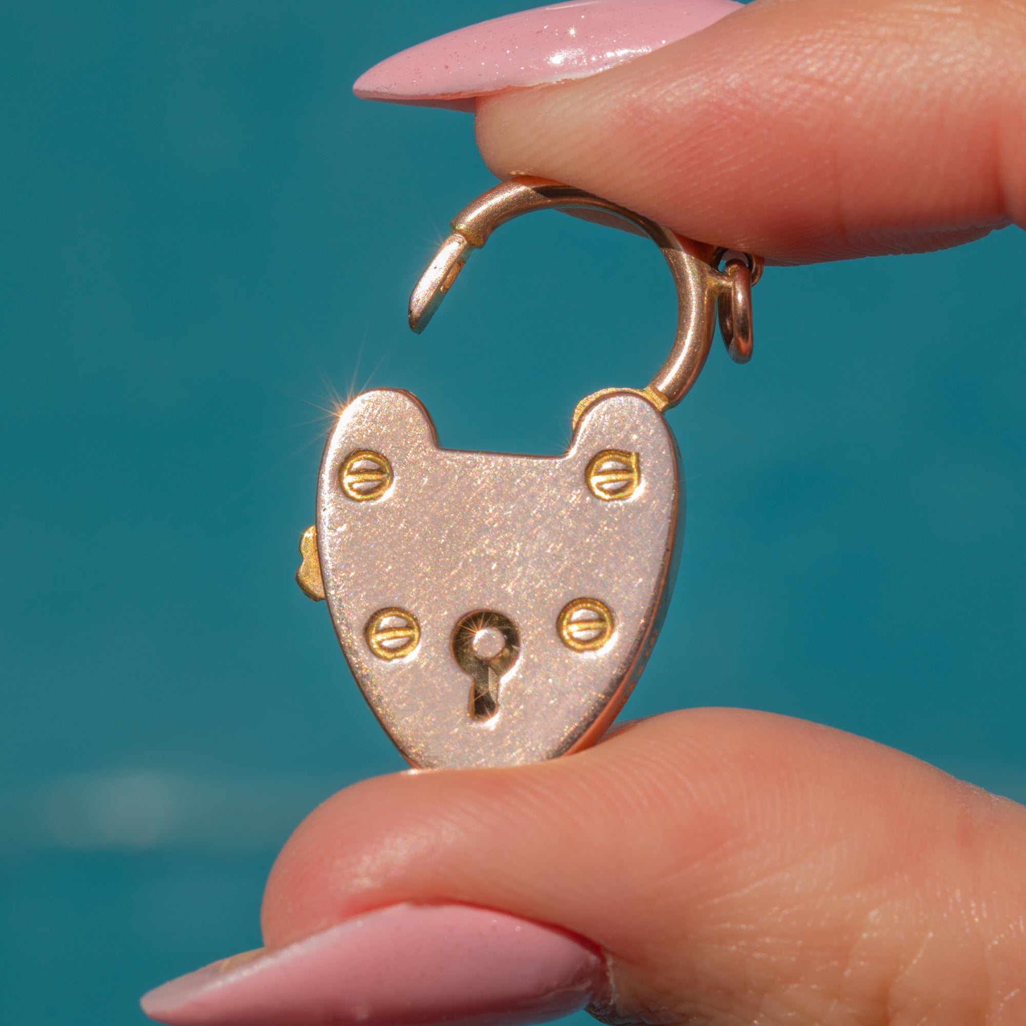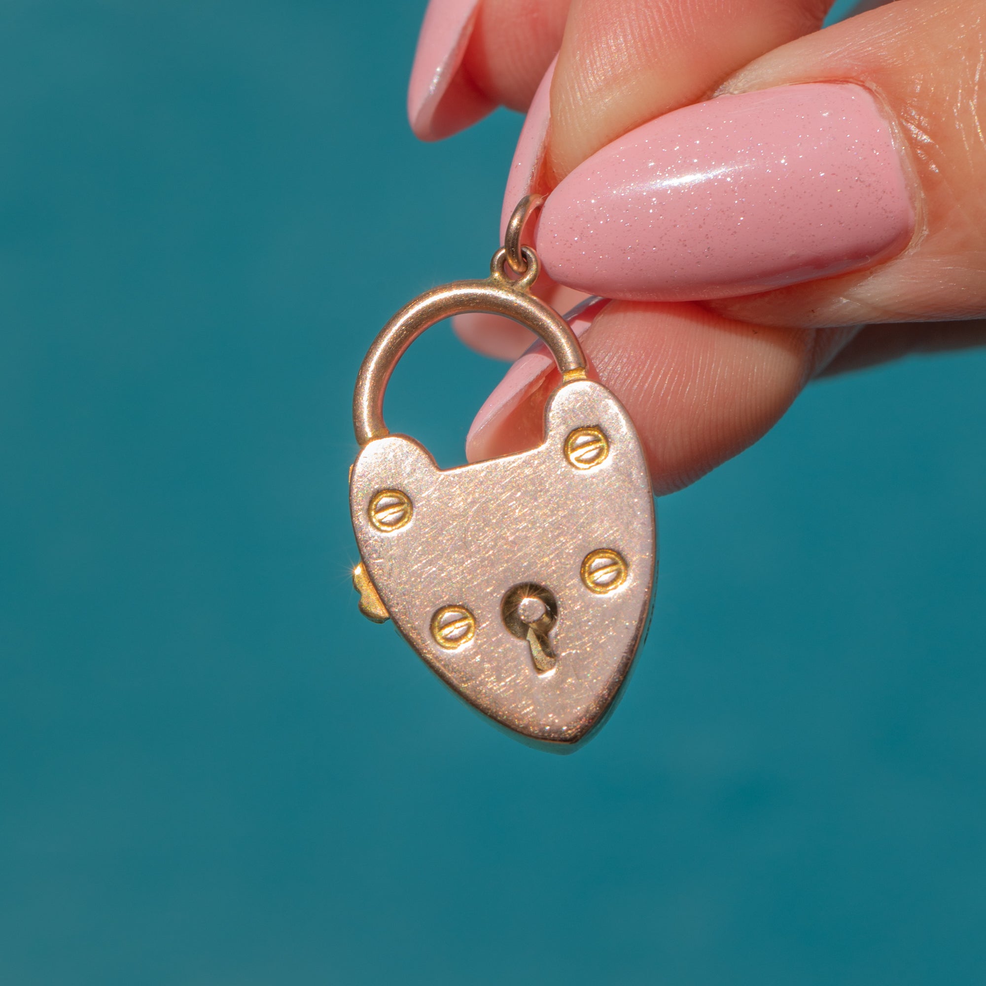 Large in size and complete with a jump-ring, she hangs at a lovely angle from a Gold chain. Hearts are a timeless symbol of love and devotion, with this sweet padlock being no exception. You are certain to emanate all things romantic with her in your possession!