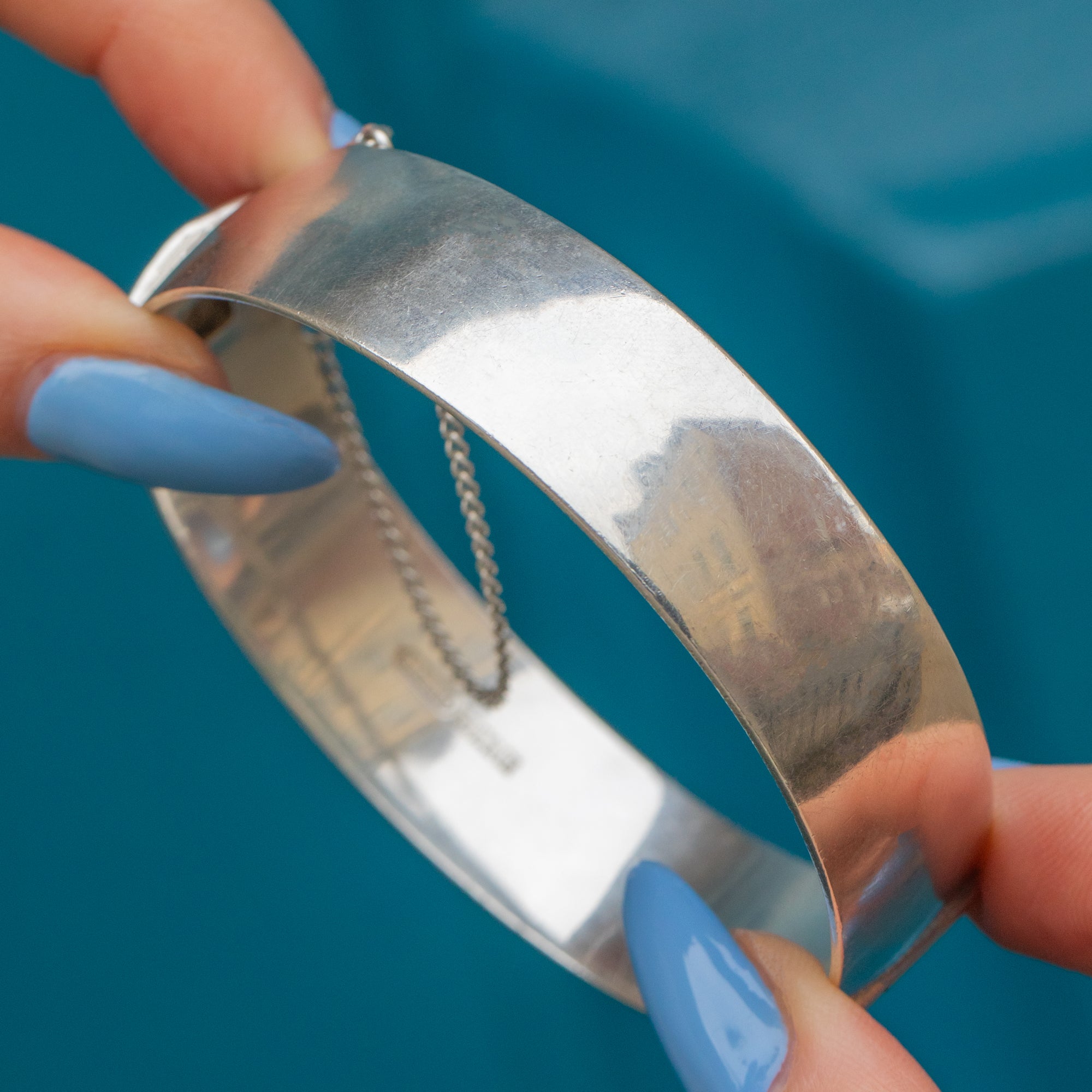 Its versatile design makes it perfect for wearing alone as a statement piece or stacked with other bracelets for a layered look. The perfect thoughtful gift or special treat for yourself, this engraved Silver bangle is a true treasure from the past.