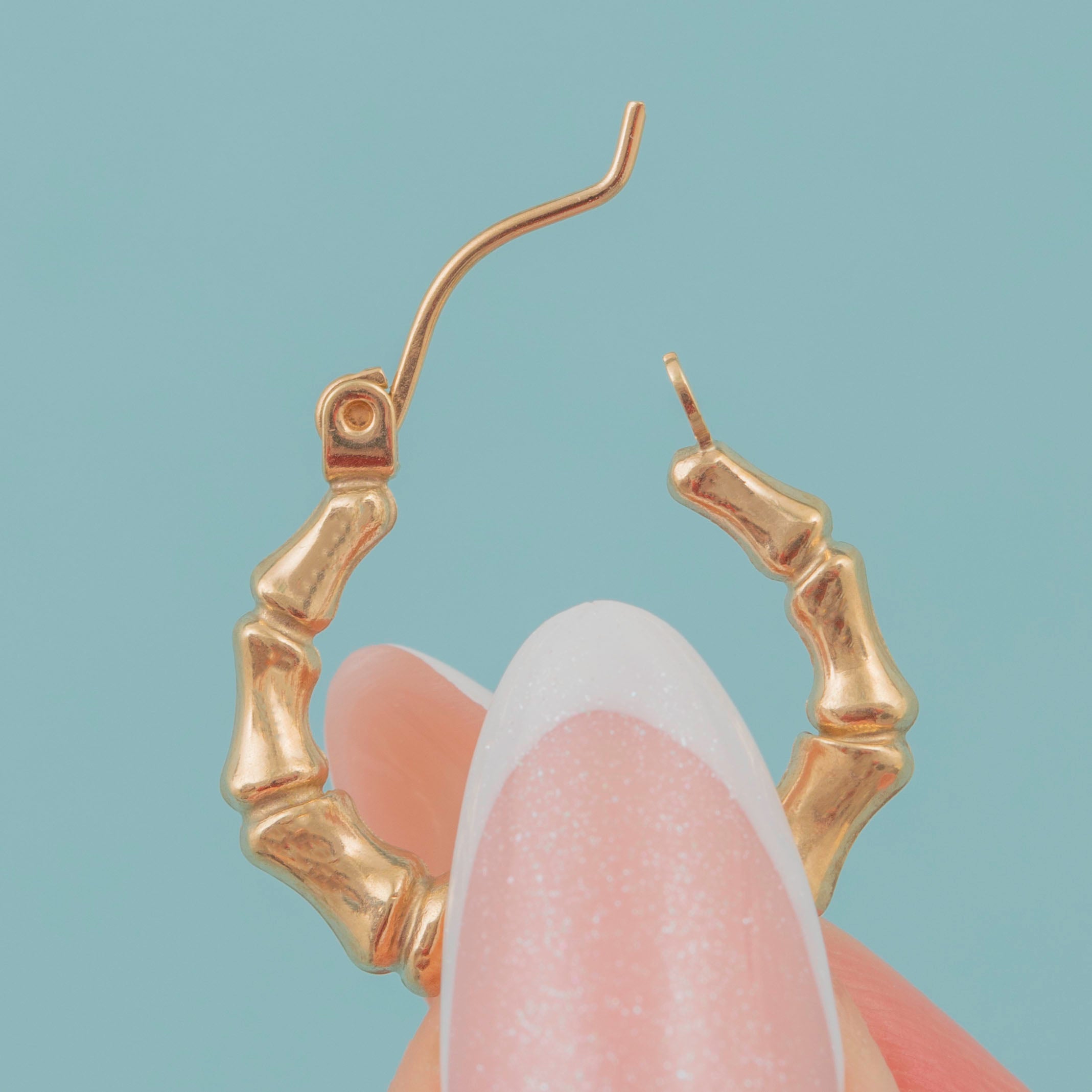 EXCELLENT: These 9ct Gold bamboo hoop earrings are in excellent condition. The Gold is glossy and buttery, with the bamboo details remaining defined. The levers function perfectly and are comfortable to wear, so you can enjoy these vintage Gold hoops all day long with absolute confidence!