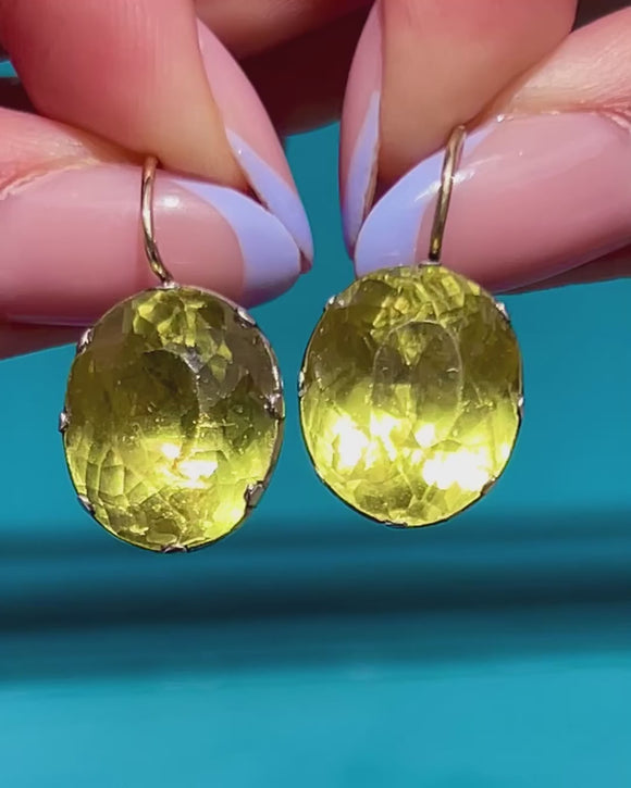 RARE Georgian Chartreuse Green Paste Button Earrings, 9ct Gold Hooks