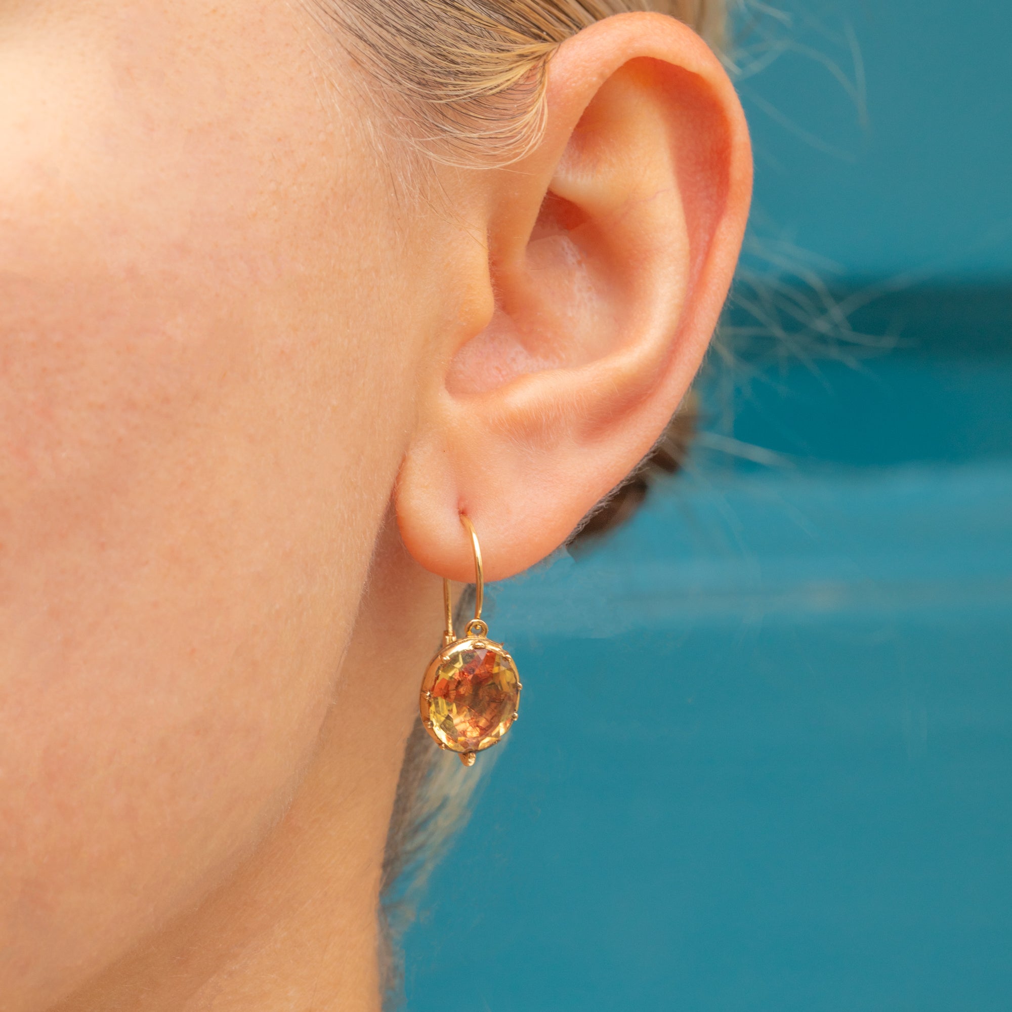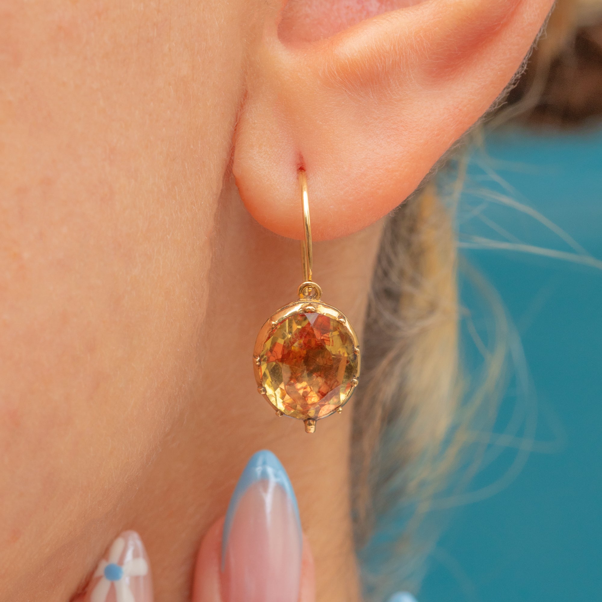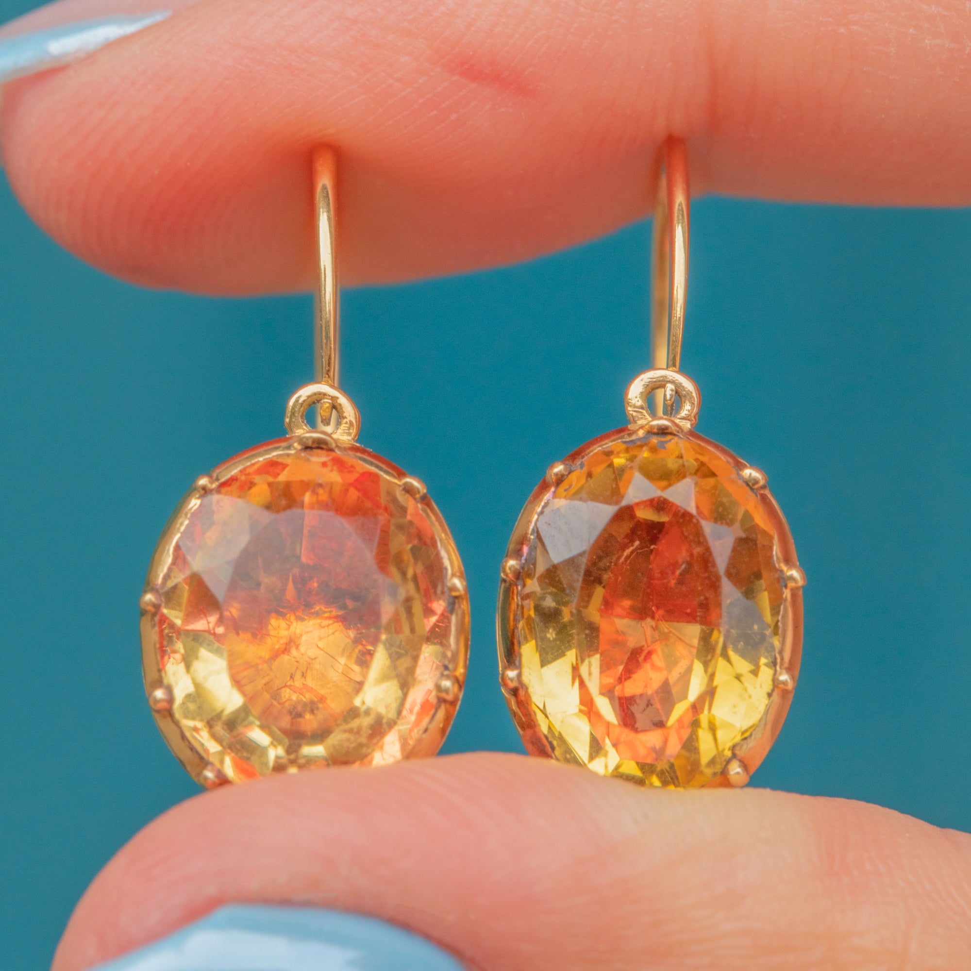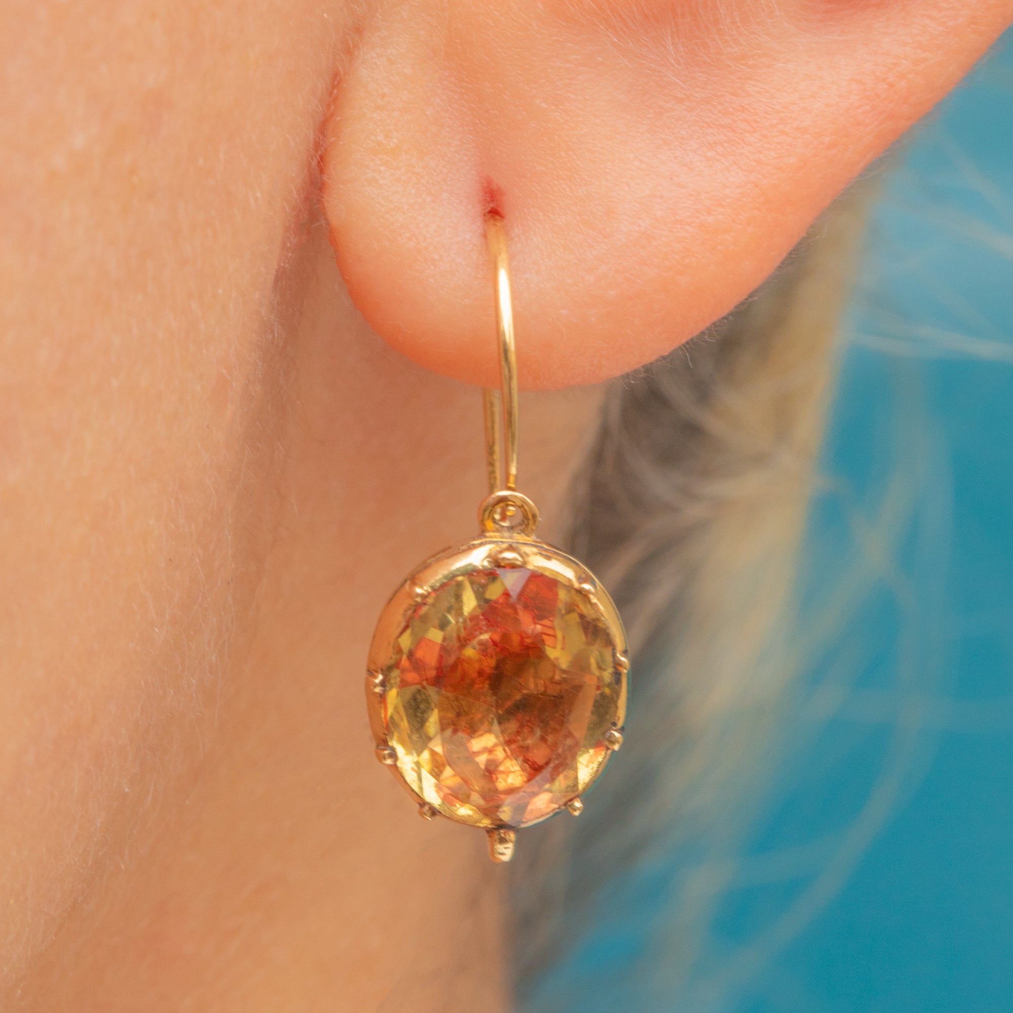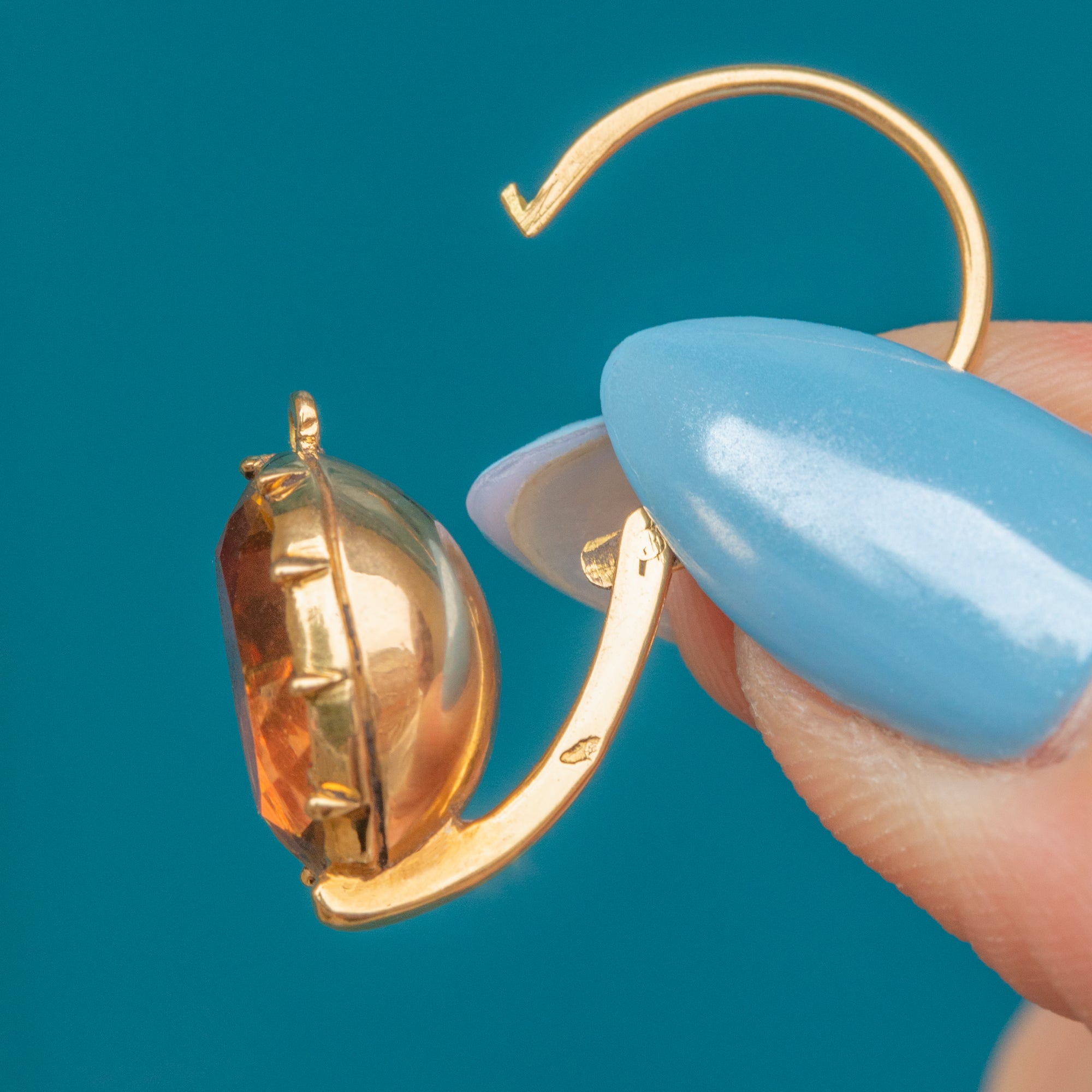 These Georgian 18ct Gold earrings are an incredibly rare find, with each earring boasting a collet-set 3.45ct yellow Citrine that has a red foiling, giving it that distinctive 'oil and vinegar' effect.