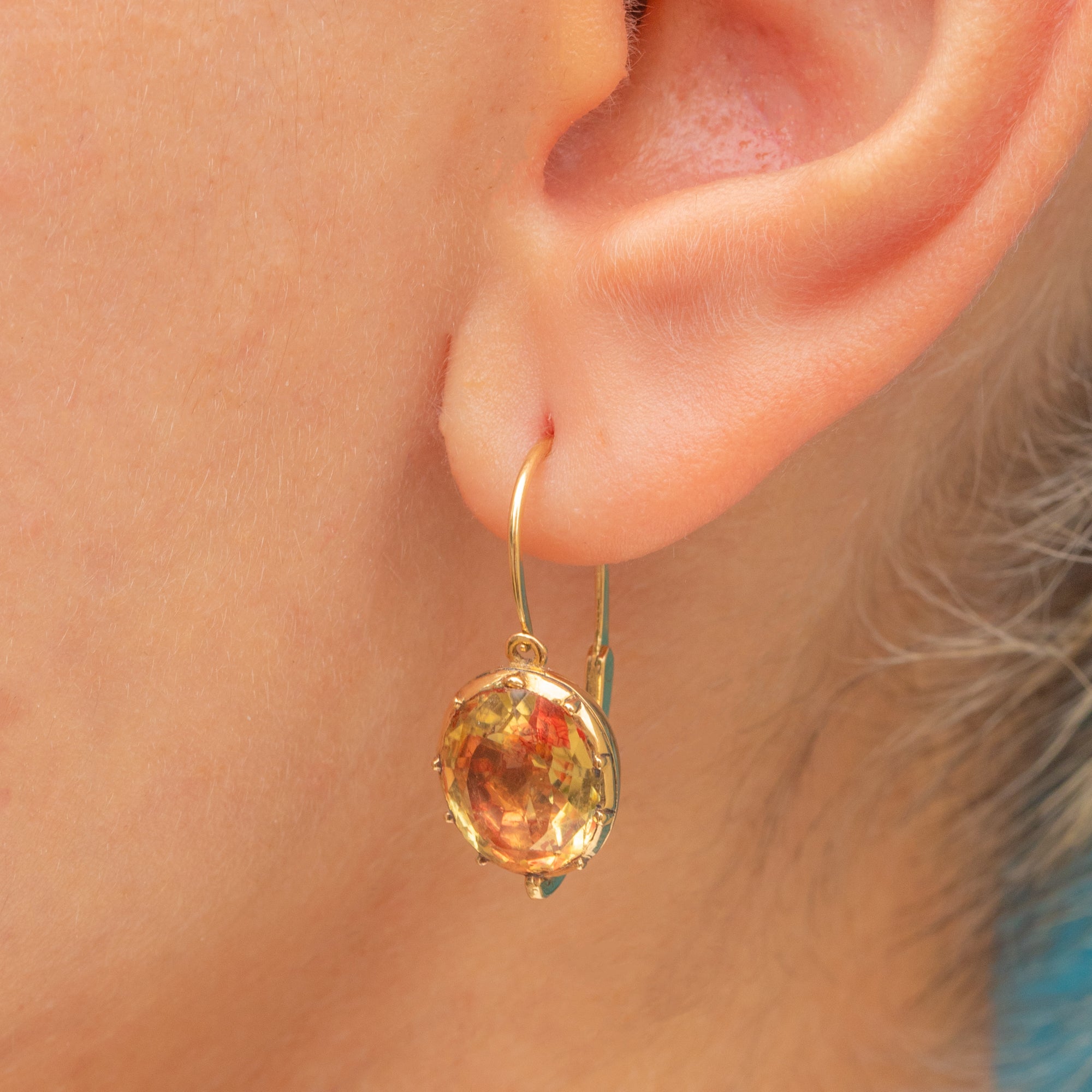 Rare Georgian French 18ct Gold Oil & Vinegar Foiled Citrine Lever Back Earrings, c.1800