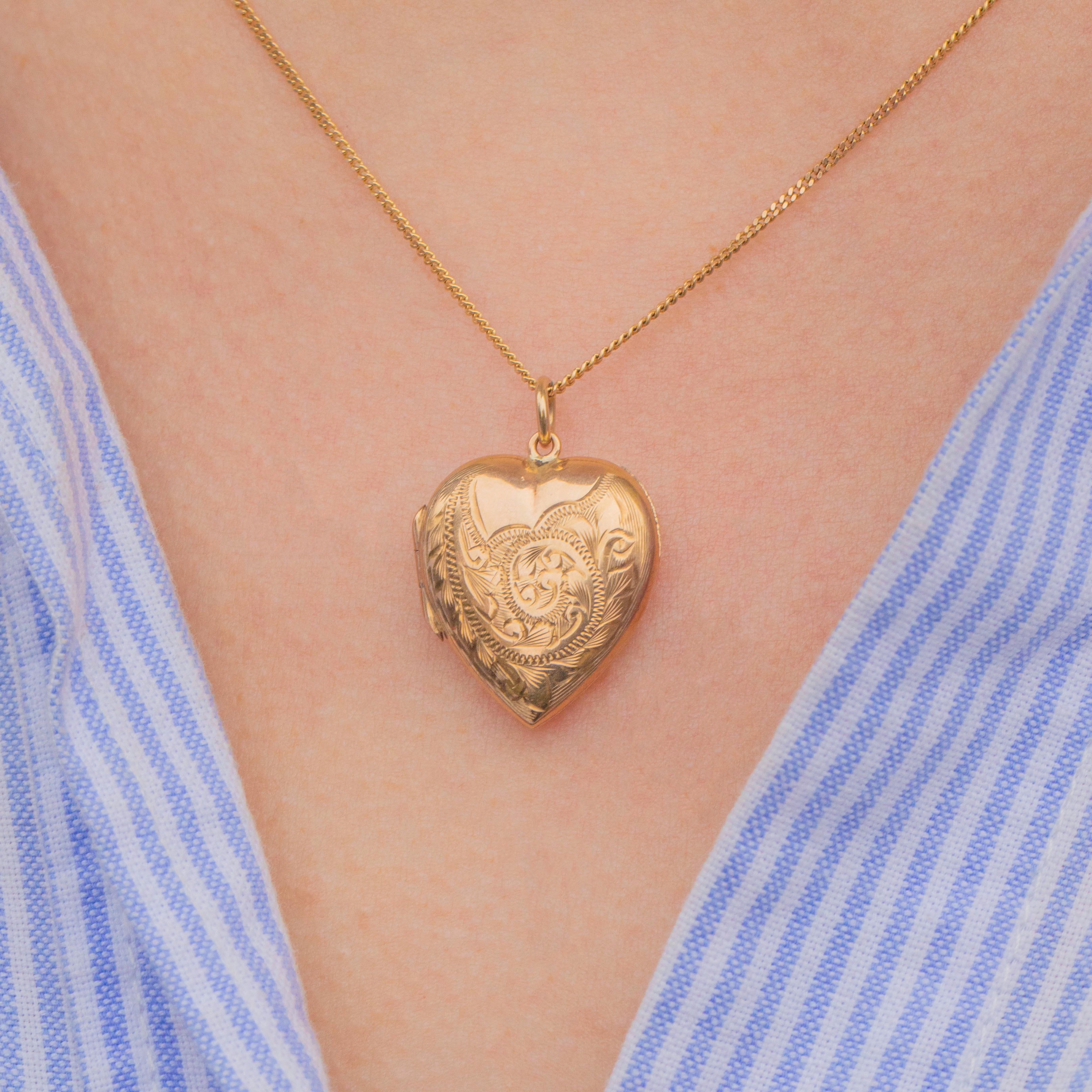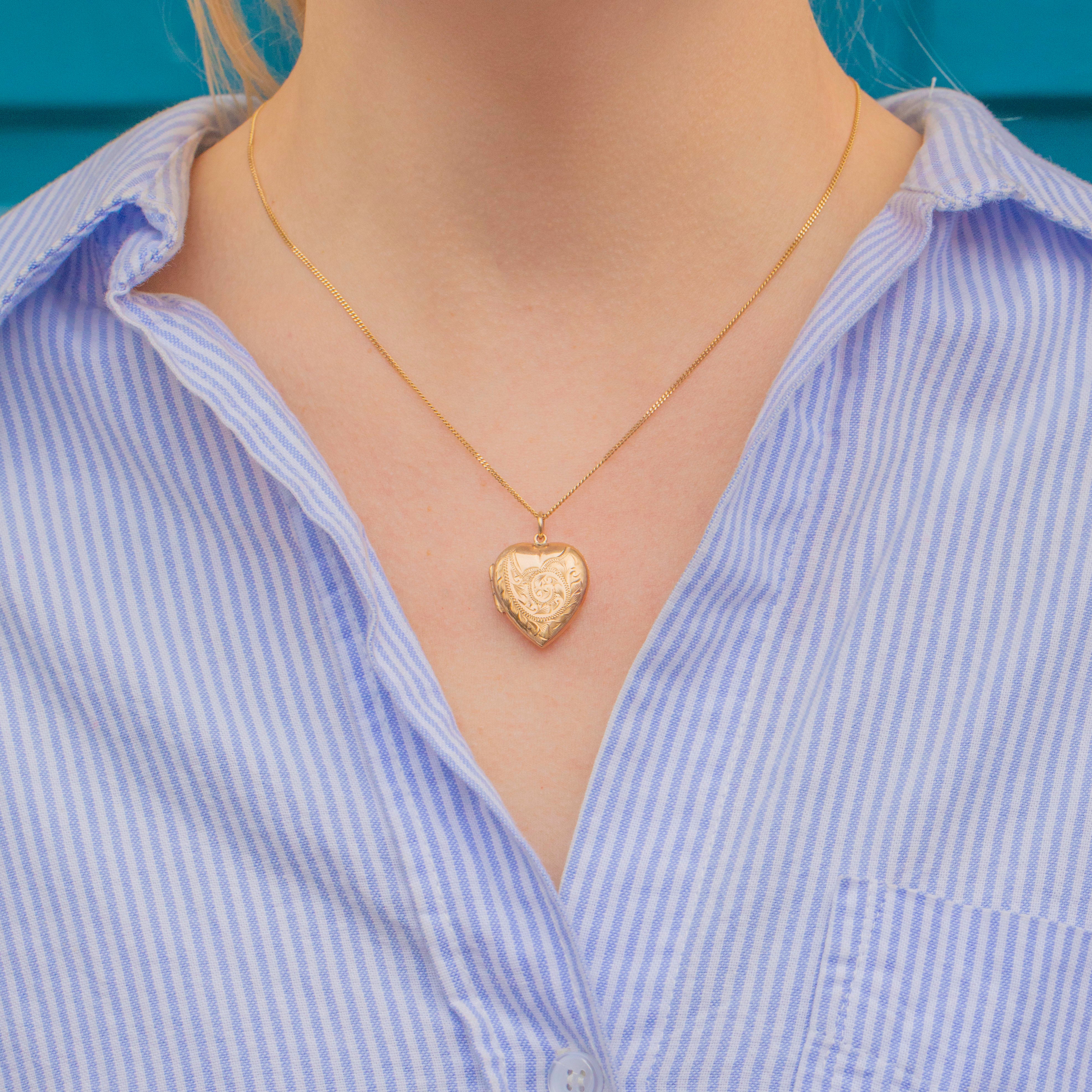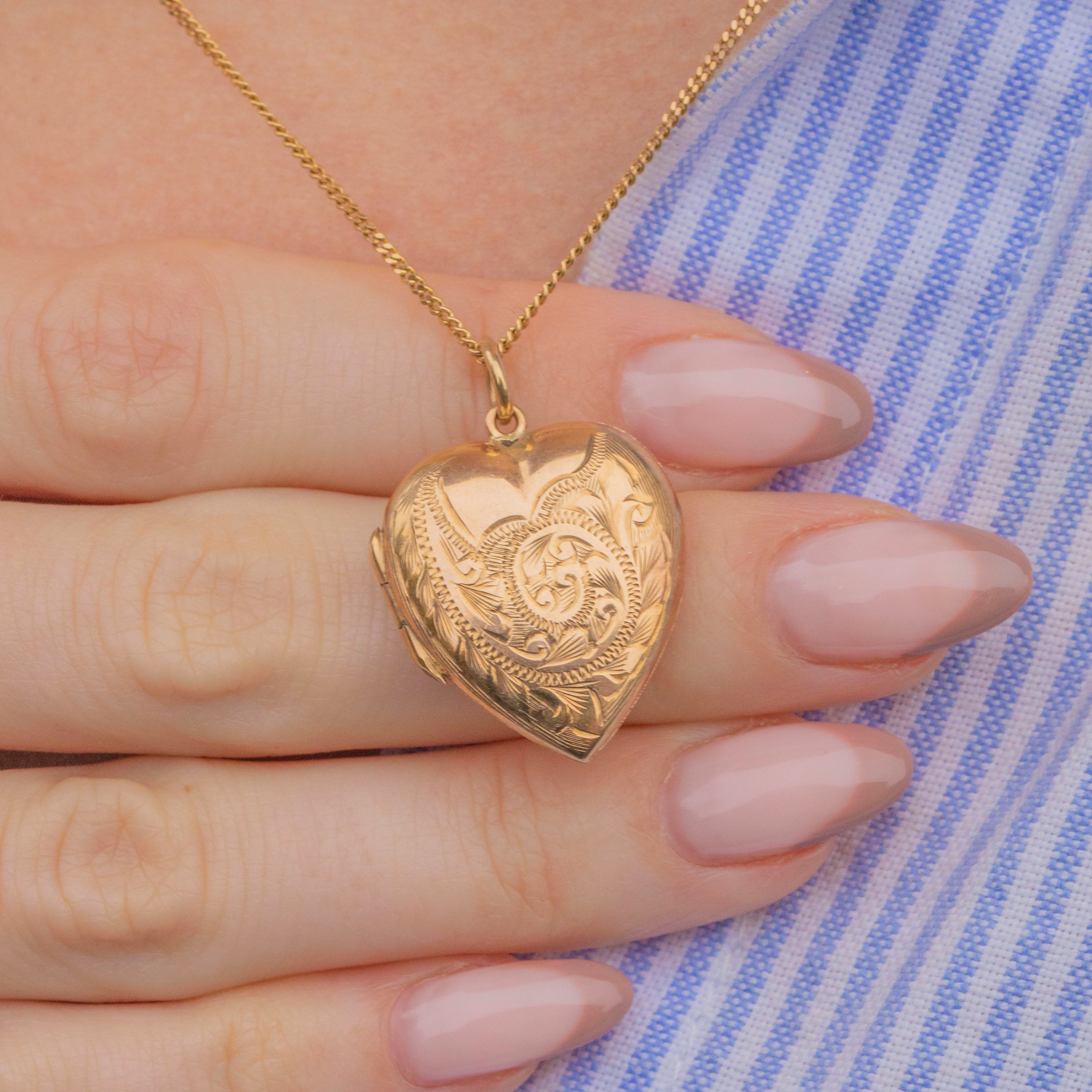 Add a touch of romantic charm to your collection with this solid 9ct Gold engraved heart locket!