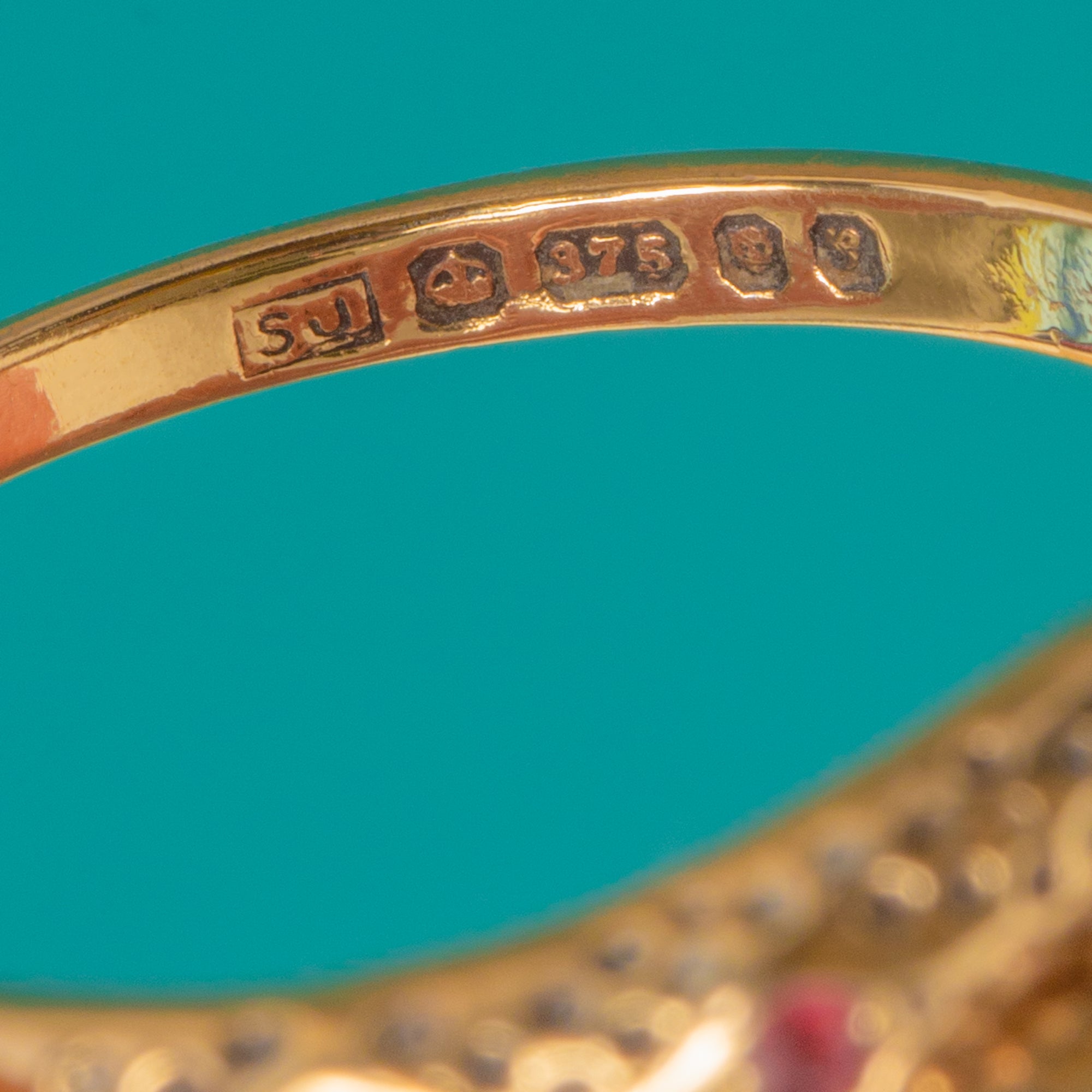 MATERIALS: Tests as 9ct Gold, Ruby,
