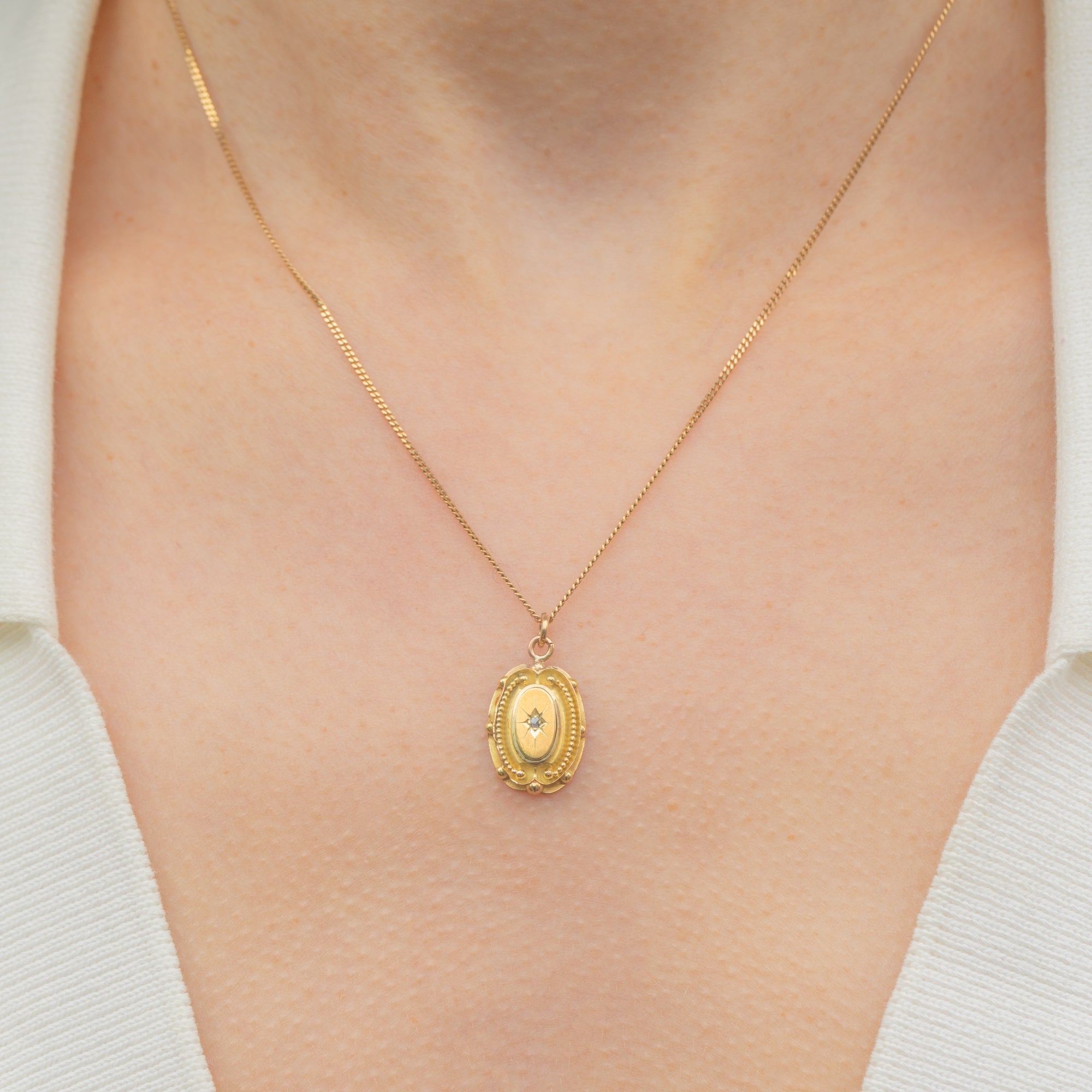 VERY GOOD: This Victorian 15ct Gold Diamond star-set charm is in very good condition. The Gold has a gorgeous saturation throughout and the Diamond is secure within its defined star setting. Under close inspection, there is some mild wear on the front of the pendant, where the raised outline has distorted slightly on one side, but this does not detract from the impact of the piece. There is evidence of a conversion on the back, but this has been carried out well, and the pendant is smooth and feels comfortable against the skin. An easy-to-wear piece, don't hesitate to add this pretty Victorian Diamond charm to your collection!