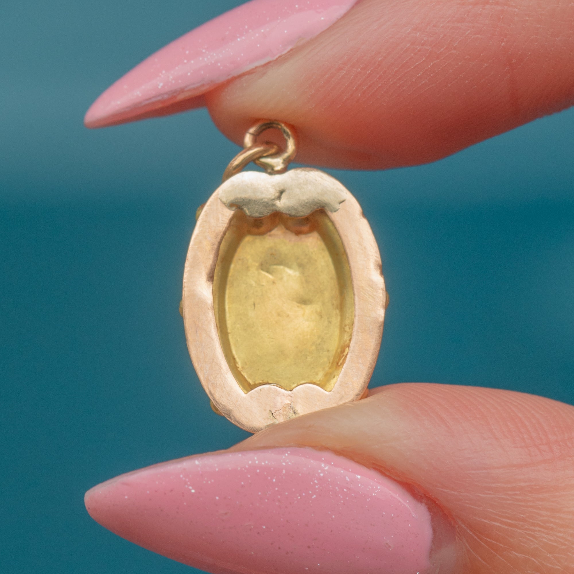 Bright and buttery, this solid Gold charm has been exquisitely formed, boasting dainty beaded details and delicate curvaceous lines. Whether worn as a standalone piece or stacked amongst your other favourite jewels, this antique Diamond pendant will make a versatile addition to your collection!