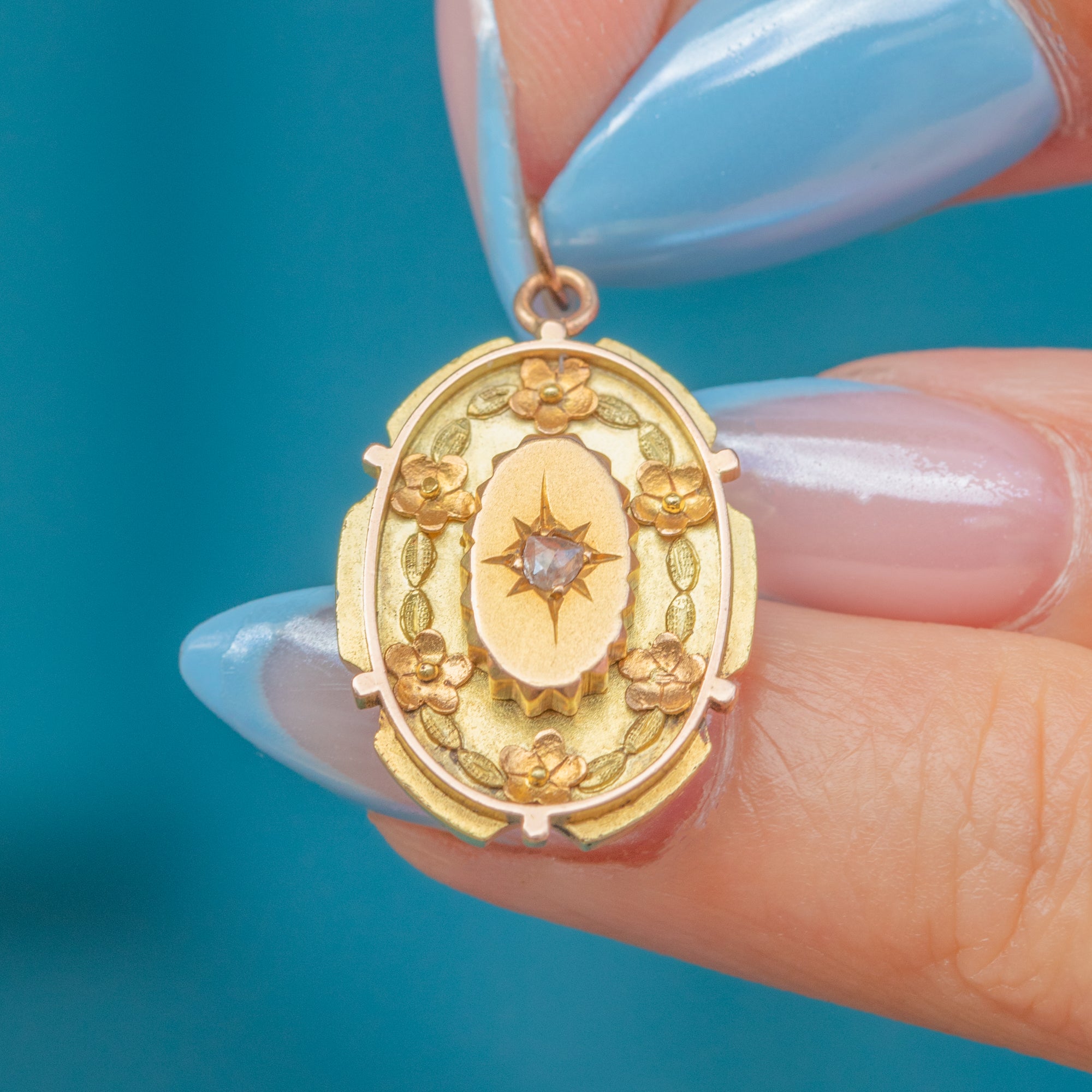 Victorian 15ct Gold Diamond Star Set Pendant with Floral Accents