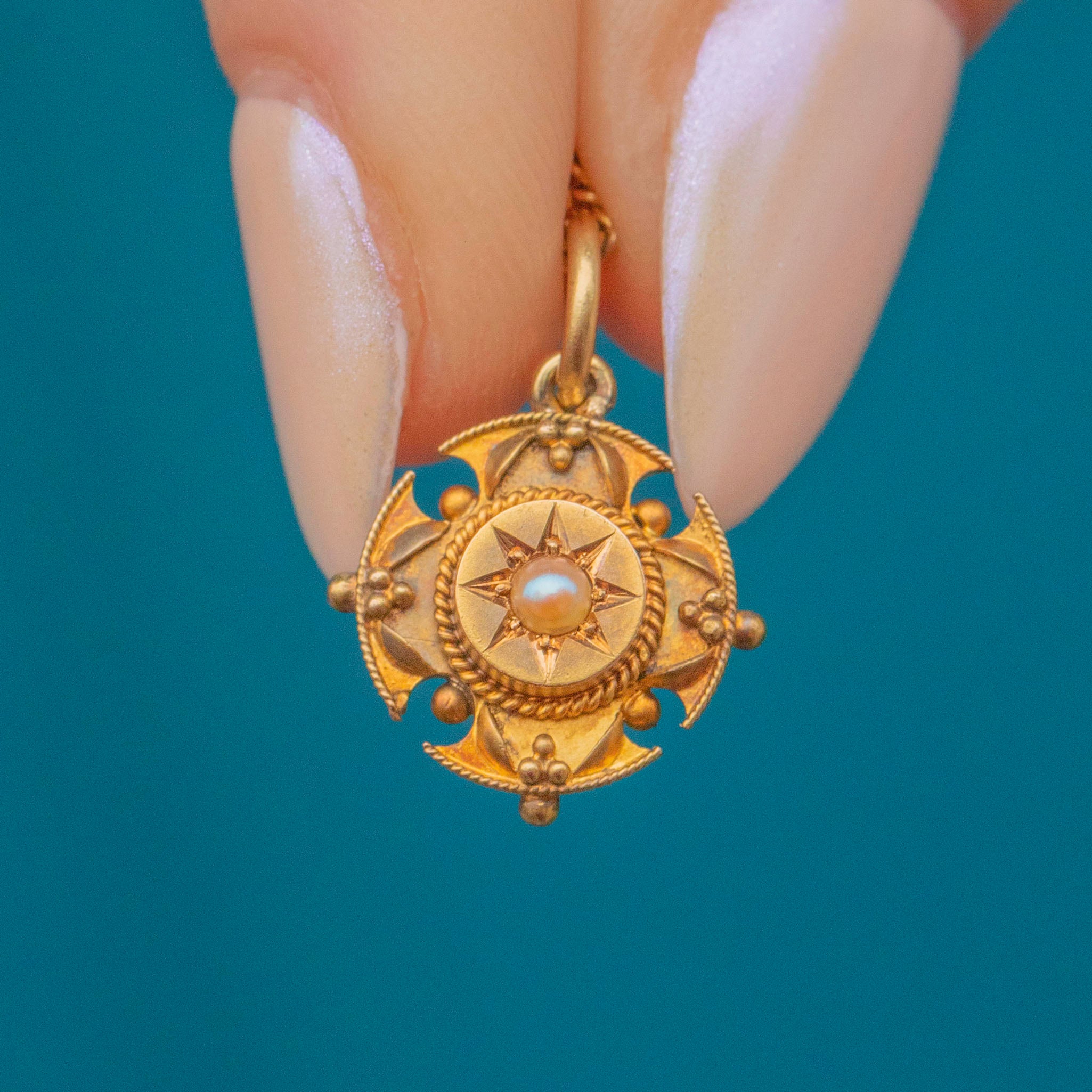 This Victorian 15ct Gold Etruscan Pearl charm is a delightful little treasure! The sumptuous 15ct Gold displays exquisite attention to detail, with fine details that perfectly capture the Etruscan revival aesthetic.