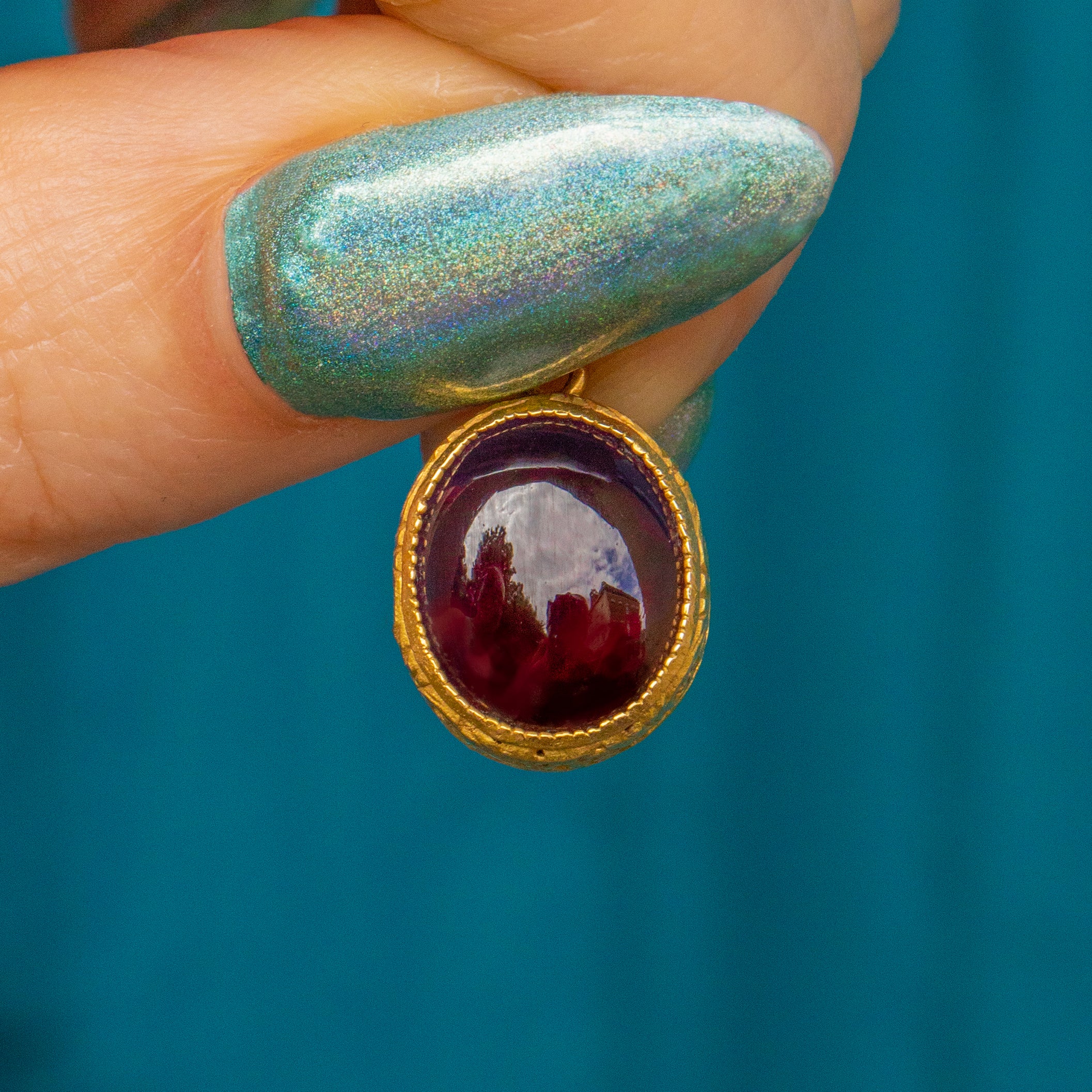 This Victorian 15ct Gold Garnet cabochon pendant is spilling with seduction! Her 2.65ct Garnet is a pool of Merlot, with a smooth glisten running along her cabochon surface.