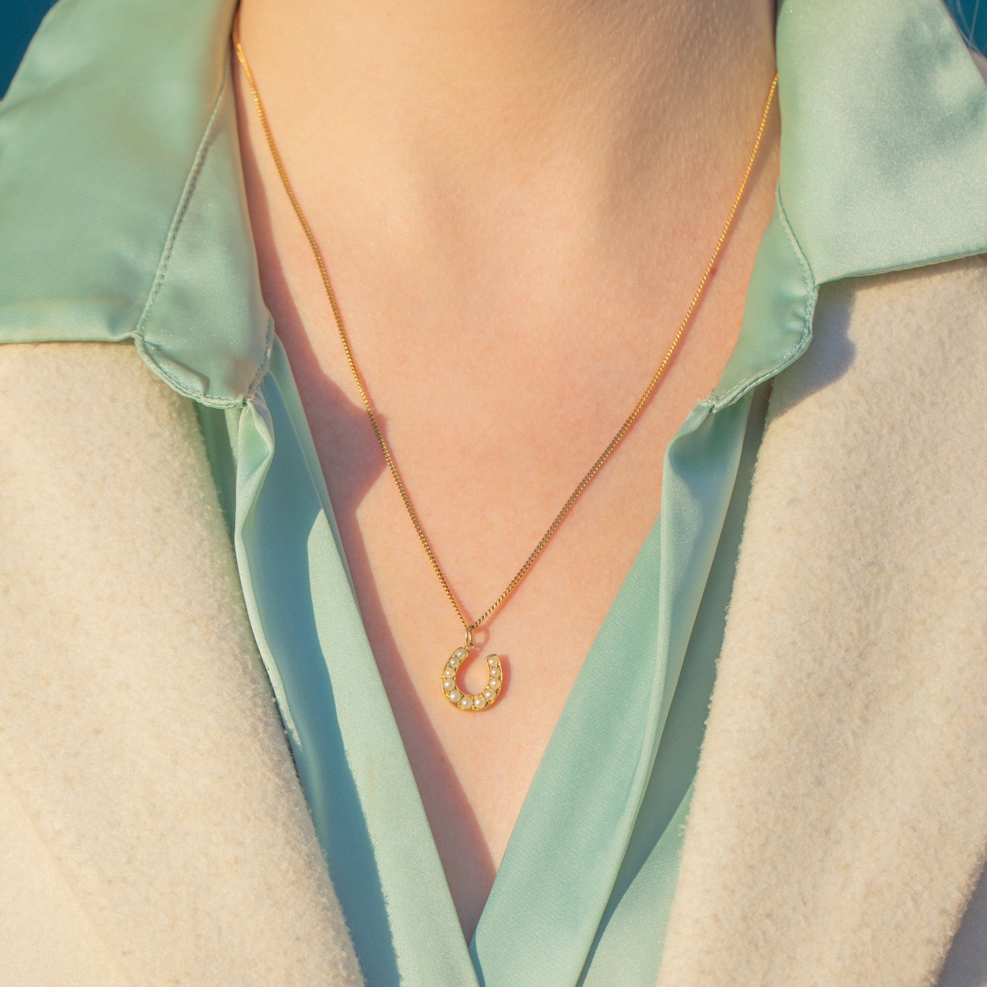 EXCELLENT. This Victorian 15ct Gold horseshoe charm is in excellent condition. Each Pearl is firmly set and her jump ring is soldered securely. There are some very minor signs of wear commensurate with age, however this can only be seen under a jeweller's loupe. In excellent condition, she is a must-have!
