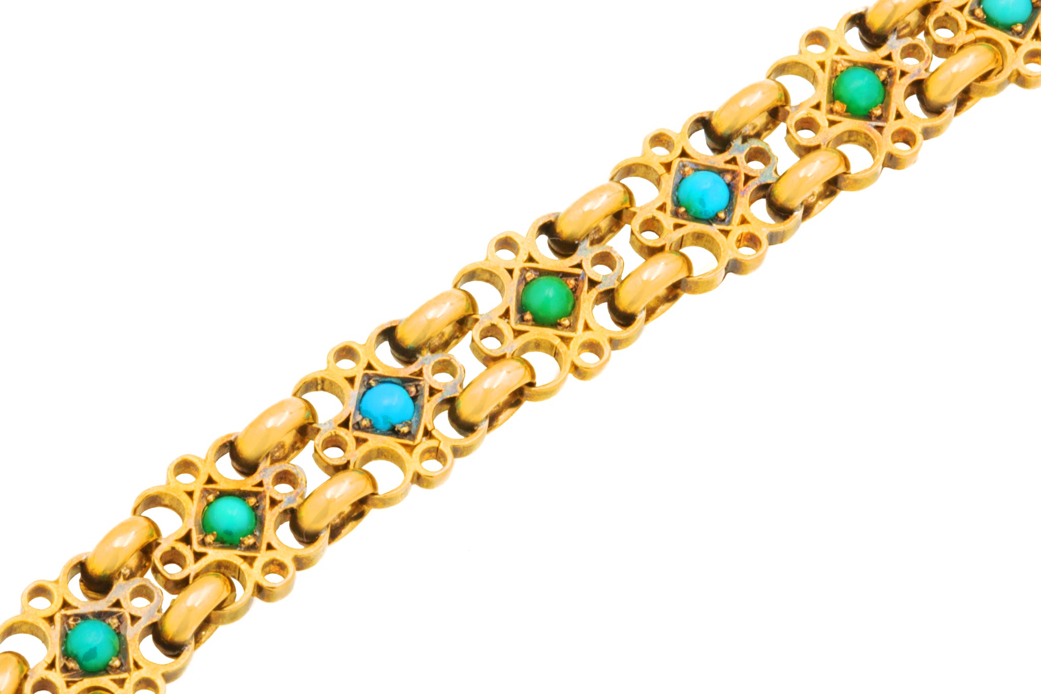 Victorian 15ct Gold Turquoise Bracelet- 19.5g