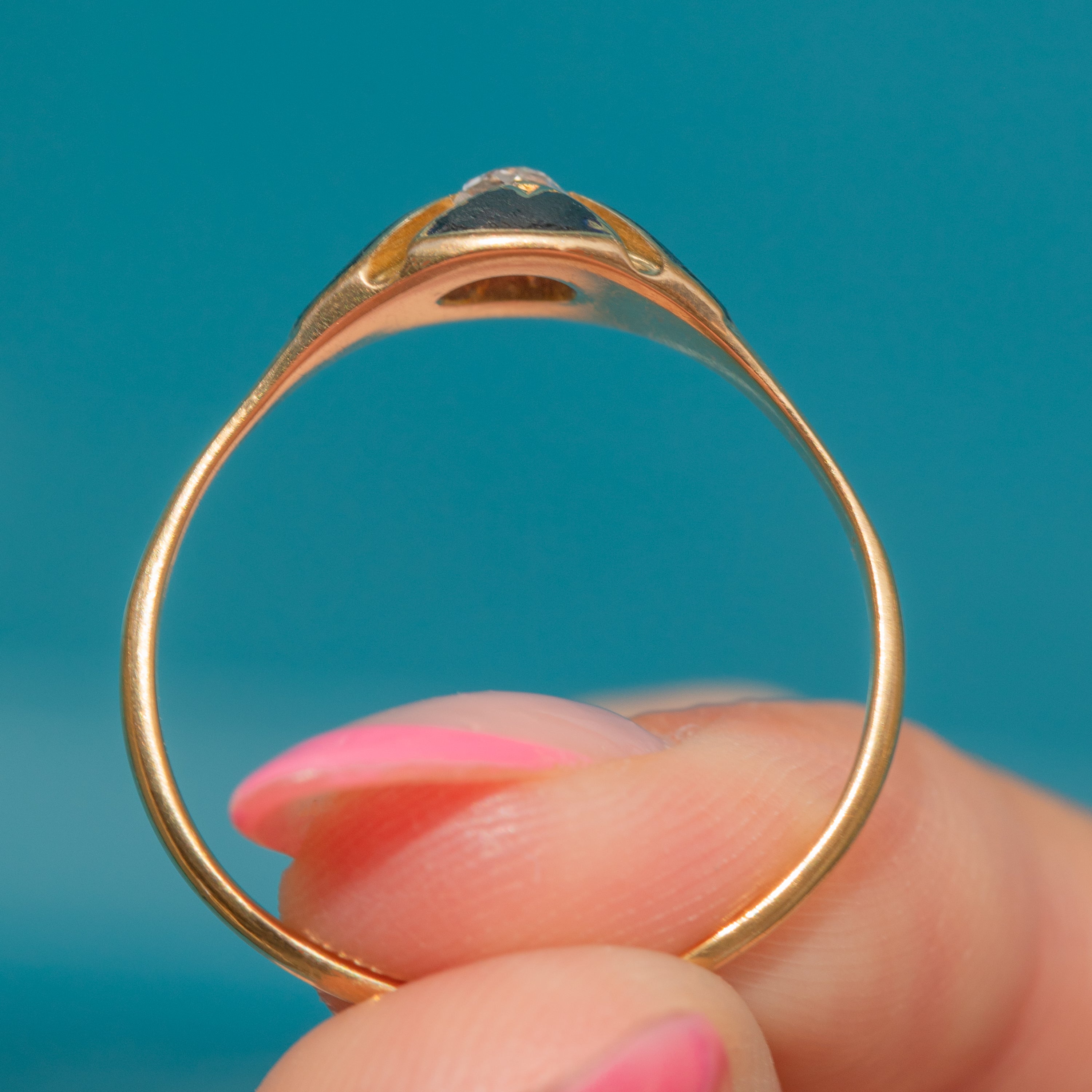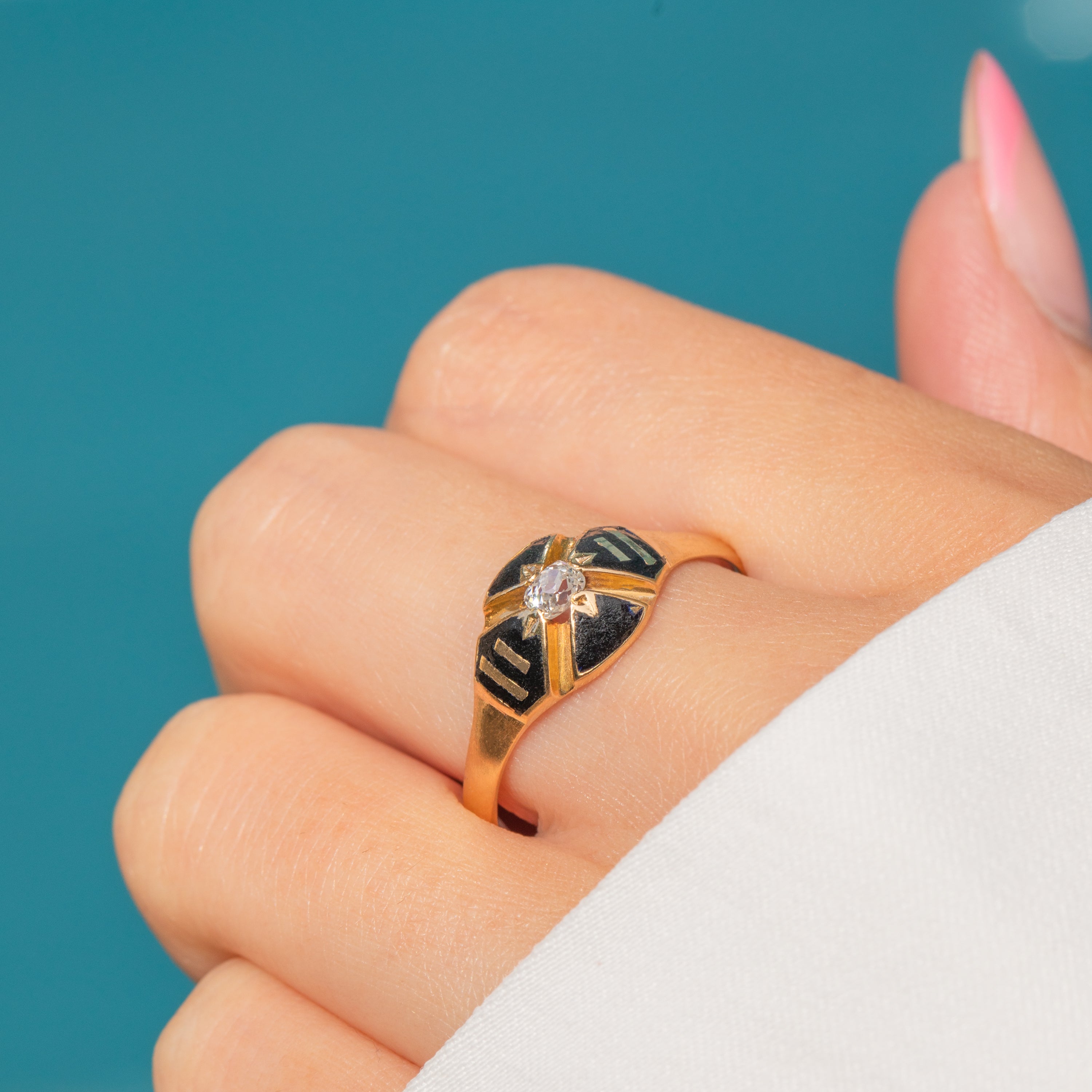 Victorian 18ct Gold Black Enamel Diamond Ring, c.1868